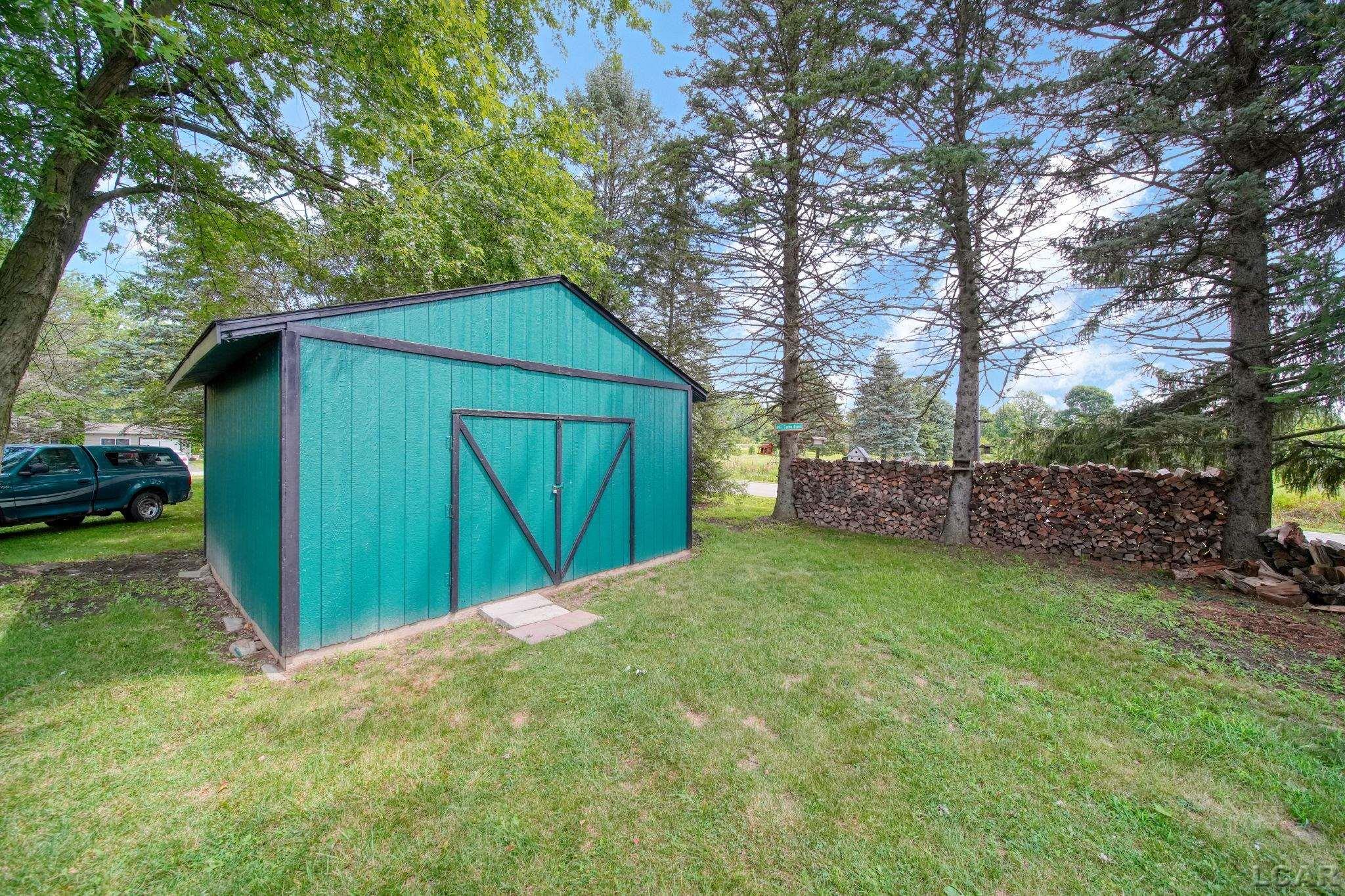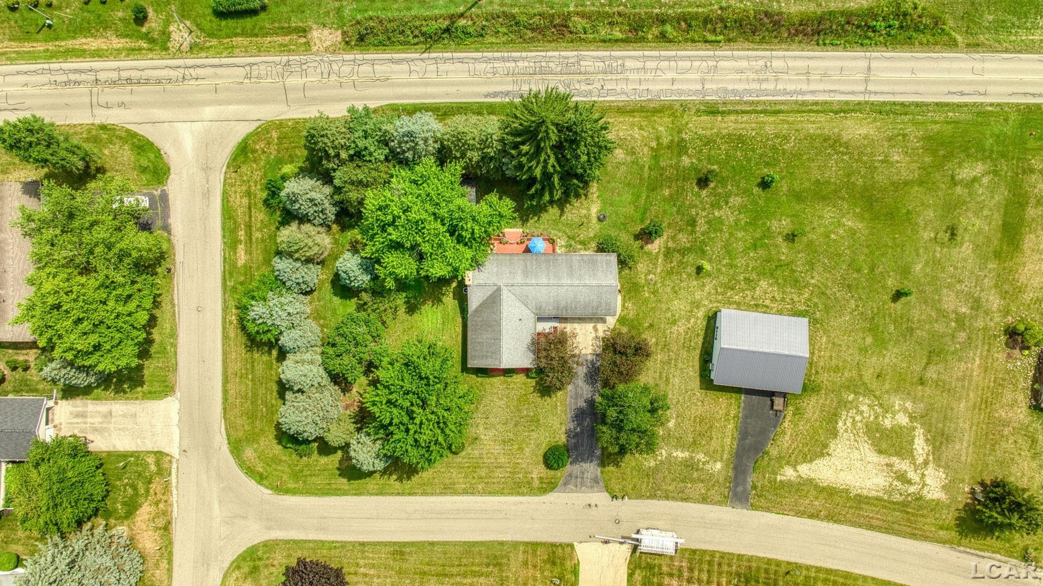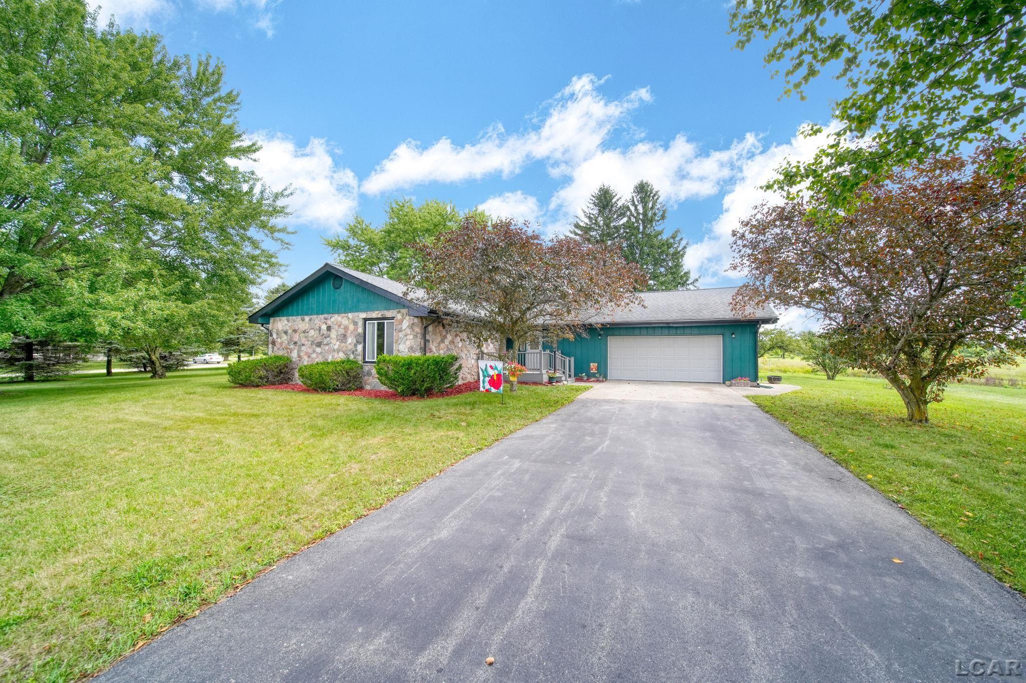 Beautifully updated ranch with inviting country ambiance! This nicely maintained and open concept 3 bedroom 3 bath ranch blends modern comfort with timeless northern country charm. Nestled in a peaceful tree-lined setting, this home features a spacious open layout, natural wood burning fireplace with stone surround, updated kitchen with newer appliances, first floor laundry, new vinyl plank flooring, newly carpeted bedrooms and freshly painted inside & out. Enjoy relaxing on the large spacious back deck overlooking the backyard oasis with large 16x16 shed, fruit trees and country views. Thoughtful updates with a unique and neutral palette throughout compliments the home’s rustic appeal. Whether you're looking for quiet country living or a place to entertain in style, this move-in-ready gem offers the best of both worlds. Basement with tall ceilings could be transformed into the perfect space for family/media room. Large corner lot offers space to drive in from Sunrise Dr. and space allows for additional parking. Close to downtown Hudson's parks and amenities, gorgeous Evergreen Golf Course and Lake Hudson Recreation Area!