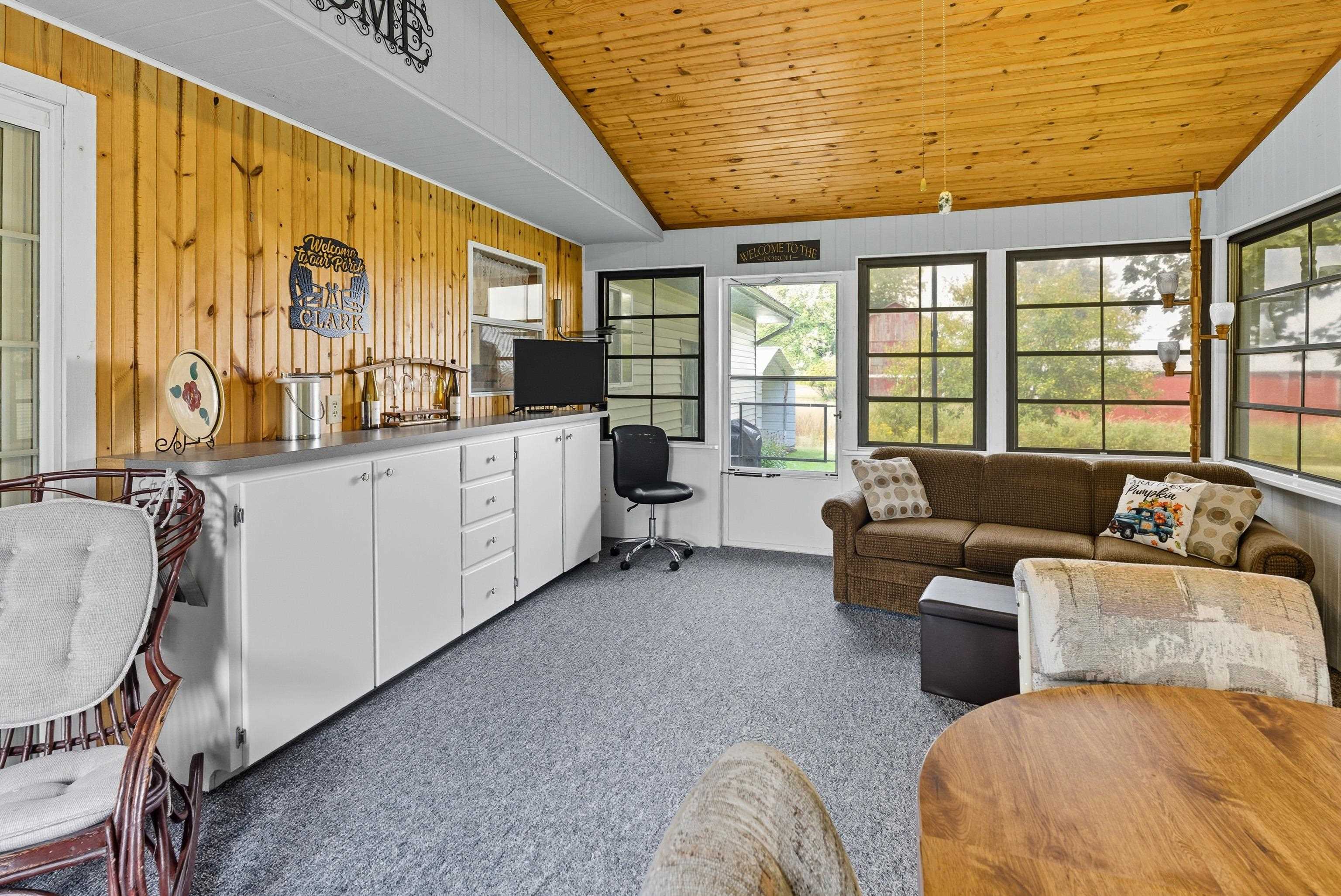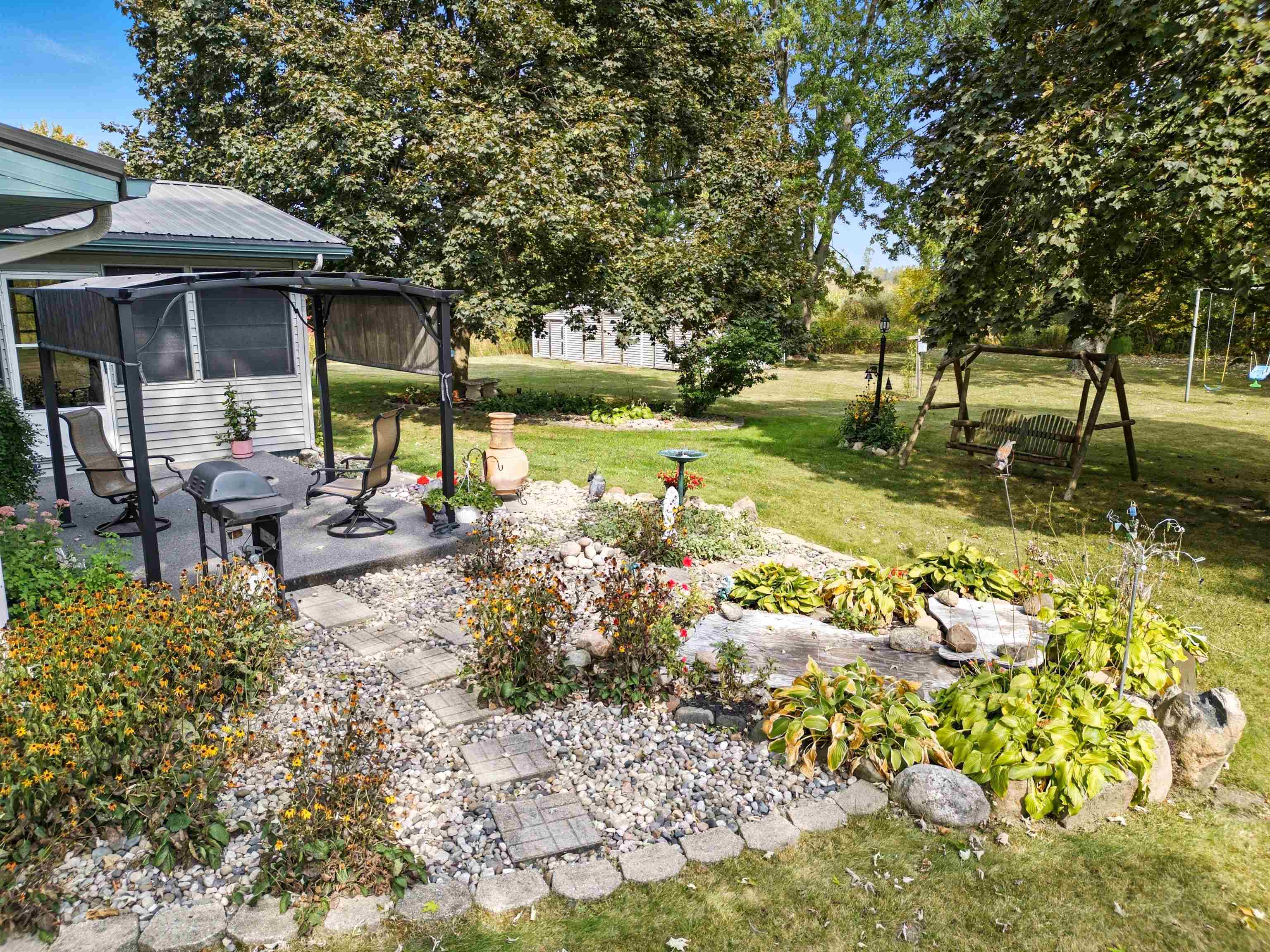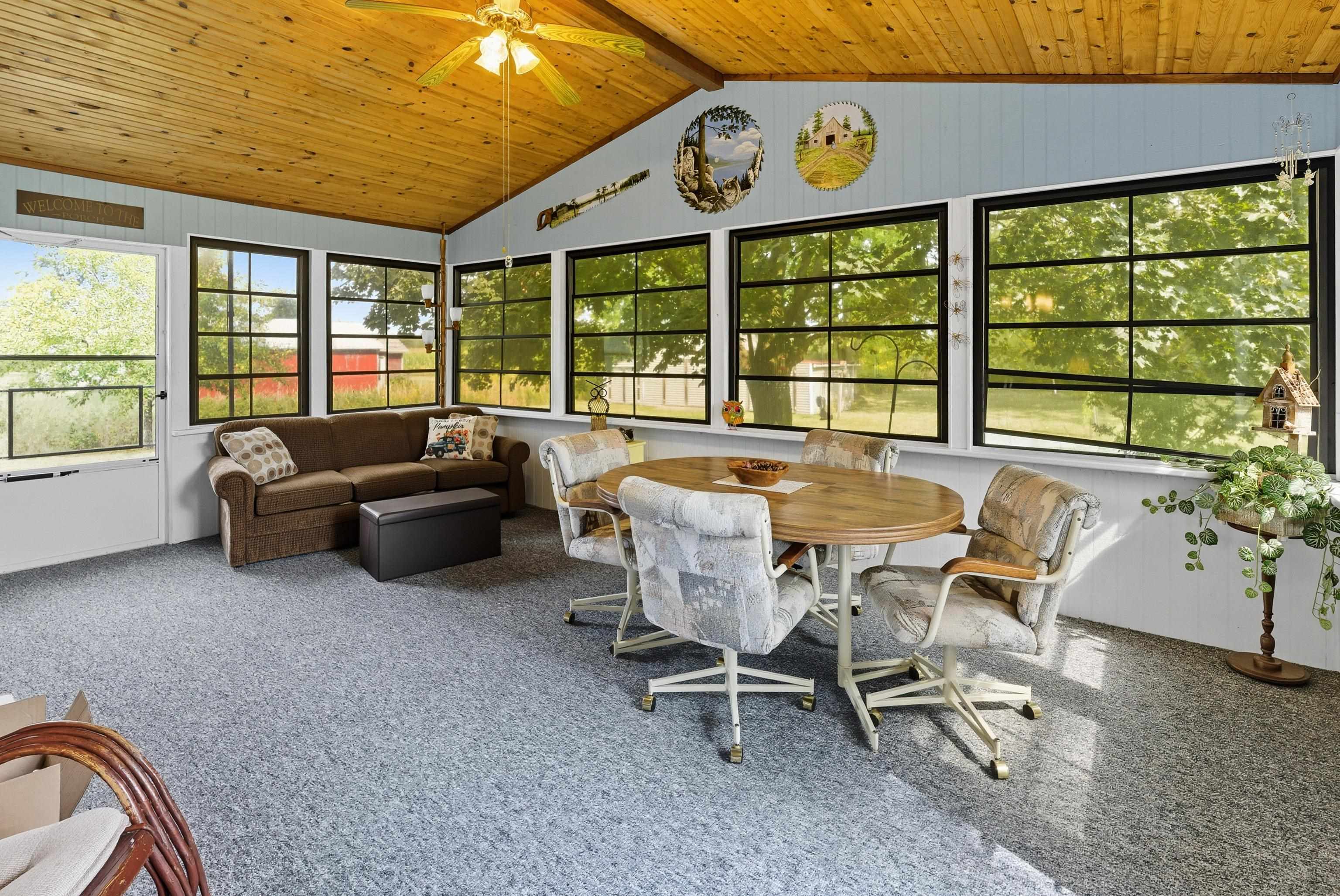 MAKE MEMORIES ON M18! Built in 1967, and loved by one family, this ranch home is ready for its next owners. Entering the front drive you will find plenty of space to park with a 1.5 car garage and large carport. Walking up the front path you will see the home features a newer metal roof that was installed 6 years ago and an adorable front porch. As you enter the front door you are greeted by a spacious living room with vinyl plank flooring. The home offers a partially open floorplan with dining room and kitchen just off the side of the living room. Down the hall you will find three nicely sized bedrooms. The main floor bathroom has recently been updated with a walk in shower. A full block basement offers additional living space and a wood burner, the home does have a new furnace from 2023 as well. There is also a large utility room. Not to be outdown, the home offers a 14x20 three season room that overlooks the back yard and an outdoor patio with wonderful gardens. Lastly, an oversized three stall shed, 38x16, offers storage for projects or toys. The home has been meticulously cared for and loved, do not wait, this one won't last long, call today for a private viewing.