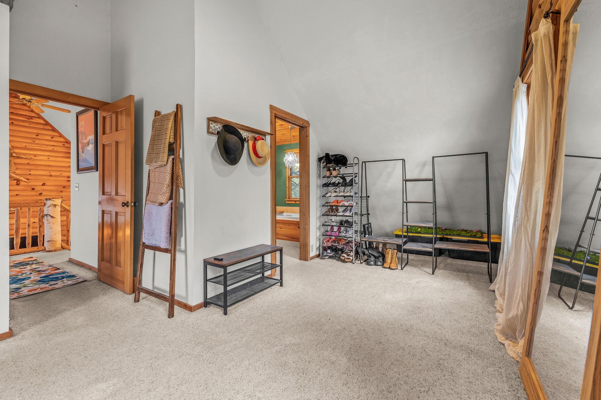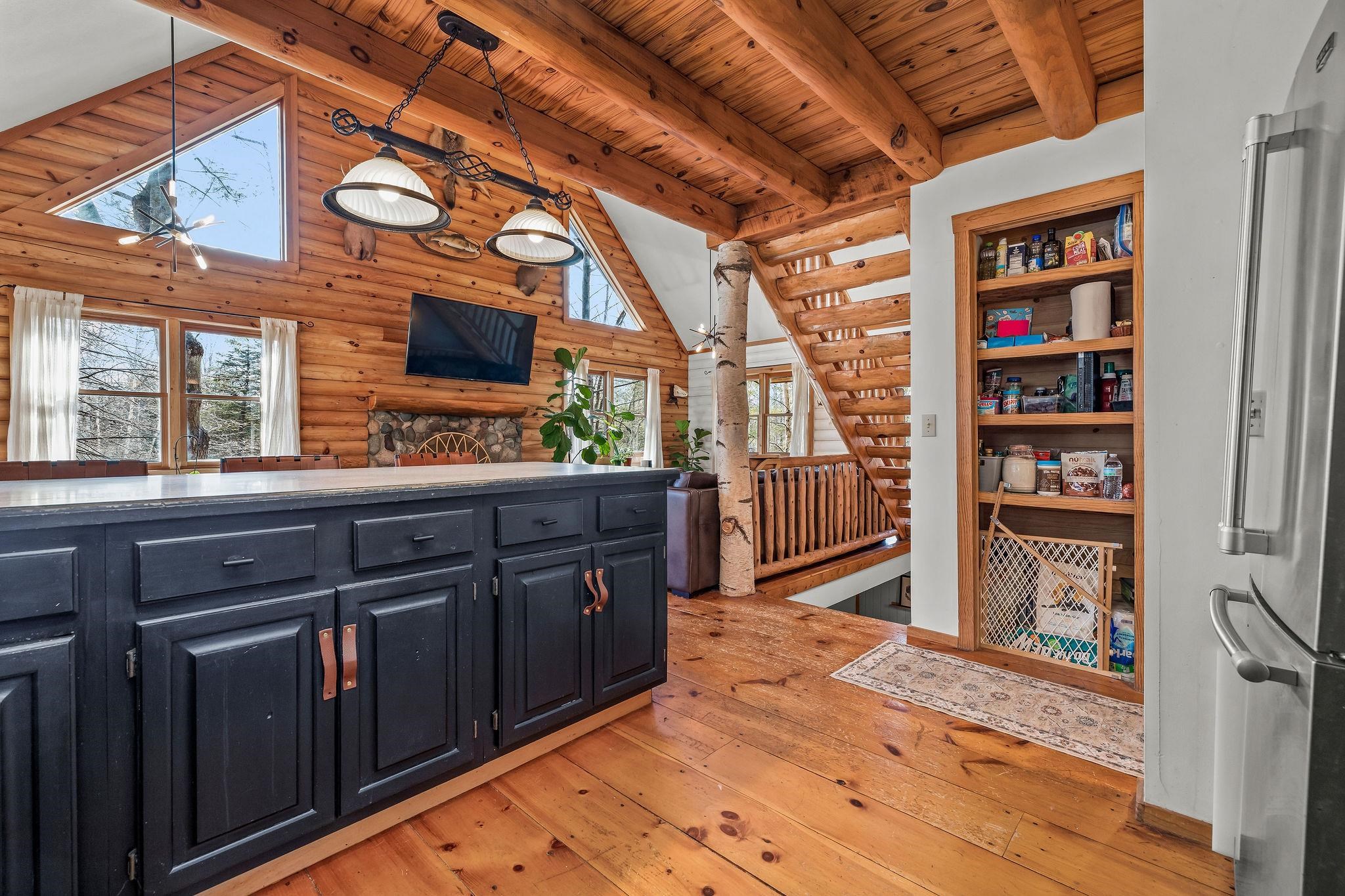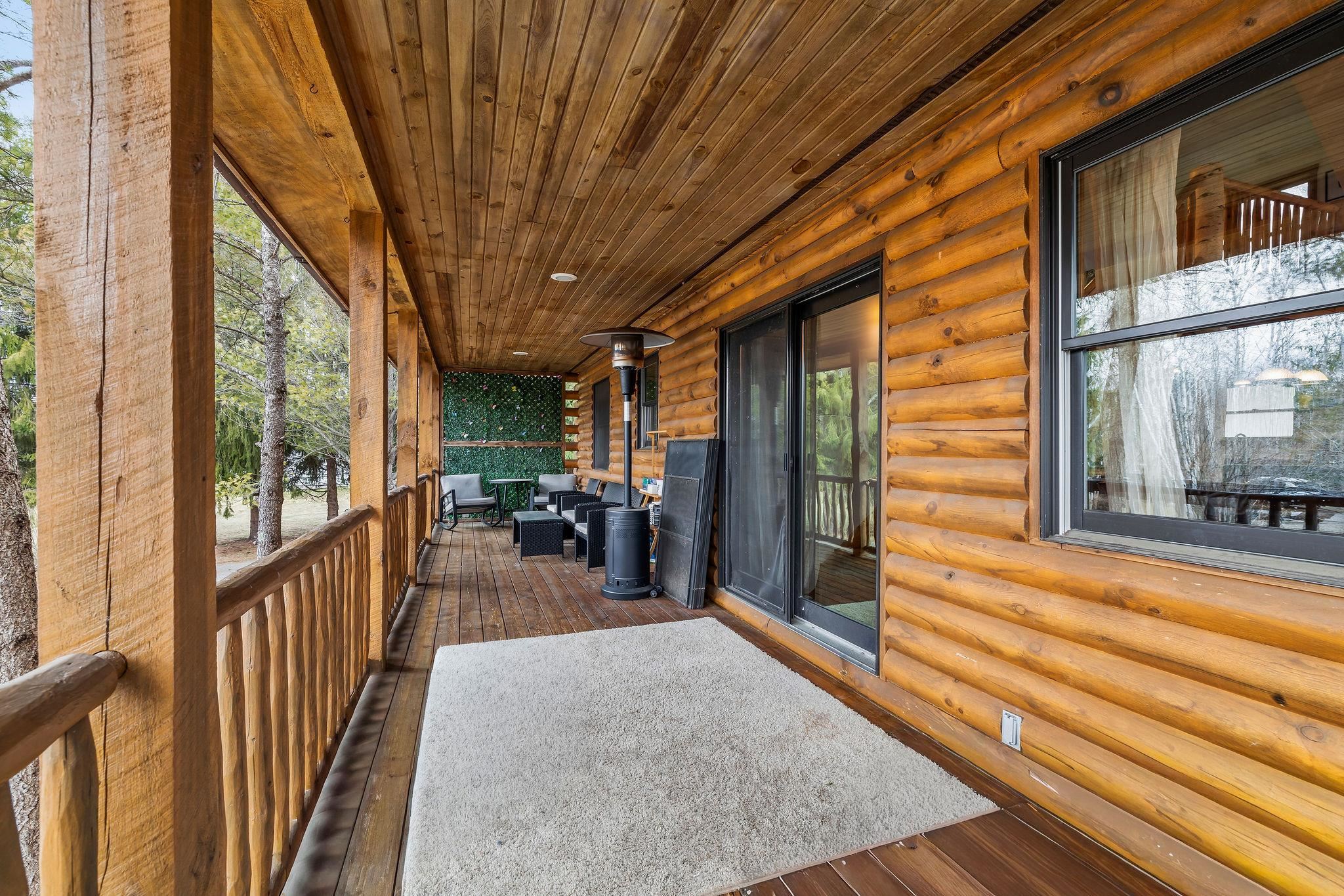Discover your own private log cabin retreat. Set on a peaceful one-acre lot with a stunning artesian well fed pond and over 900 sq ft of wrap-around porch to enjoy it all. This home blends rustic charm with modern comfort in a quiet subdivision that feels wonderfully secluded. Inside, the main floor features an open-concept kitchen and family room with a wood-burning fireplace, plus two bedrooms and a full bath. The loft offers a cozy sitting area leading to the spacious primary suite with a large private bathroom, jacuzzi tub, and separate shower. The lower level adds flexible living space with a family room and a bonus room perfect for an office, guest room, or hobby area. All of this is located less than a mile from Deerfield Nature Park and just 6 miles from Mt. Pleasant, giving you the perfect balance of nature and convenience. A rare opportunity for buyers seeking privacy, character, and a unique setting.