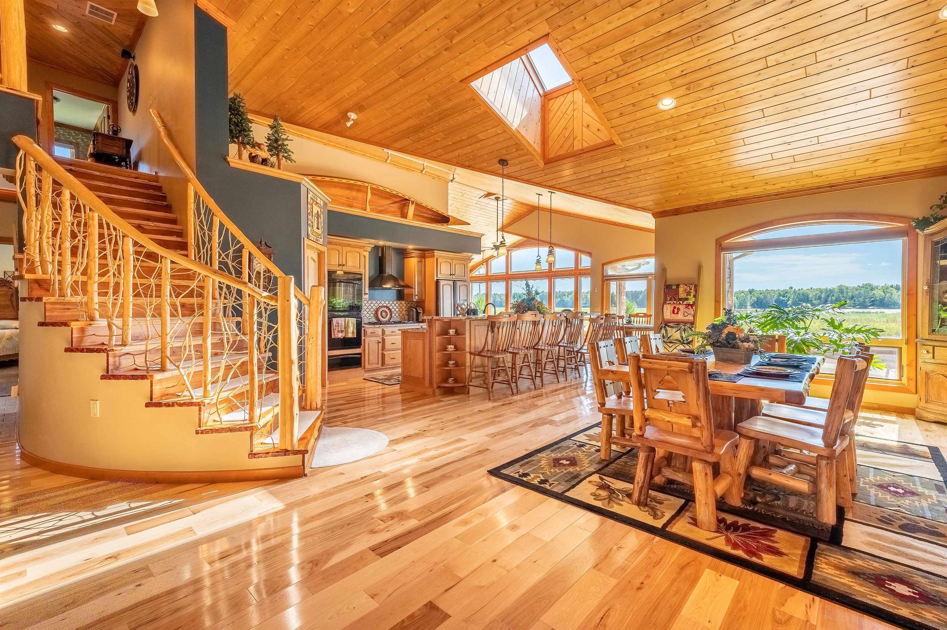 Welcome to your waterfront paradise! Custom-built in 2010, this 3-bed, 4-bath marvel spans 4210 sq ft of pure luxury. The attention to detail is evident from the moment you step inside. Indulge in the open-concept living space, boasting vaulted ceilings & an abundance of natural light pouring in from southeast-facing windows & skylights. Cedar plank ceilings & a handcrafted staircase add warmth & character. The primary en suite is a haven of comfort, featuring an attached sunroom with breathtaking panoramic lake views. Upstairs, a bonus room awaits, complete with its own fireplace, full bath, & wet bar - perfect for entertaining. The gourmet kitchen is a chef's dream, offering hickory cabinets, granite countertops, a wine cooler, & a large pantry for ample storage. Recent upgrades, including brand new hickory floors, fresh paint, 2 new furnaces, & central air units. Solar panels have been installed and insulation has been added in the attic and the concrete floor crawl space has been completly sealed and conditioned. Additional features such as a reverse osmosis system, sprinkler system, Bose speaker system with 3 separate zones, ADT security system, new hot tub & an aluminum boat dock with additional sections, elevate the lifestyle. Nestled in a serene waterfront community, this home offers the perfect blend of luxury & convenience. Don't miss your chance to experience waterfront living at its finest - schedule your private tour today! *Seperate .45 acre lot and a new, 32' x 48' pole barn with 14' doors, available for an additional price*