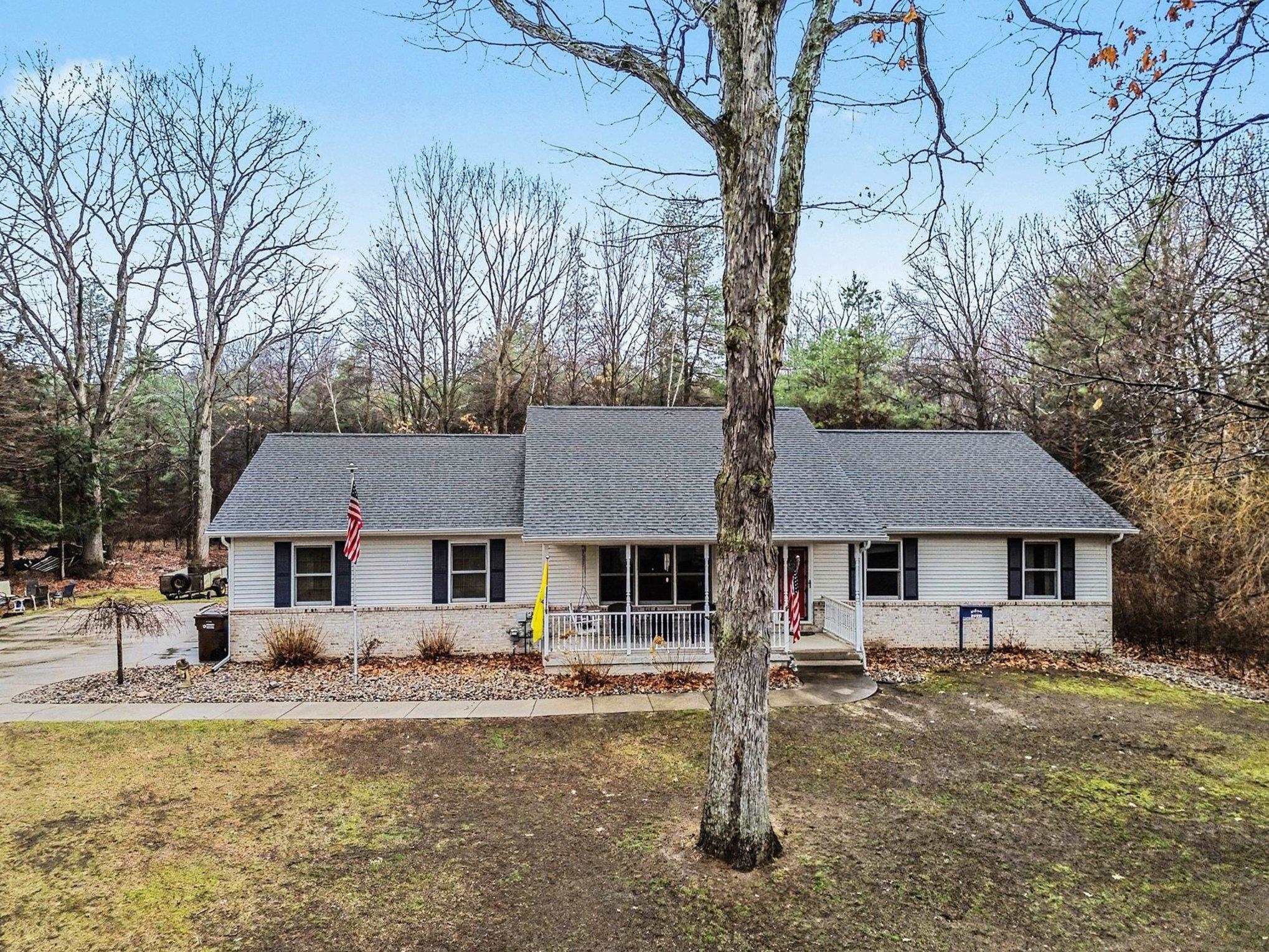 Tucked at the quiet end of a cul-de-sac on 1.38 wooded acres, this move-in-ready ranch pairs peaceful surroundings with thoughtful updates. An inviting front porch opens to sun-filled living and dining areas anchored by hardwood floors and a wall of windows framing the private backyard. The kitchen features expansive counter space, stainless appliances, and a breakfast bar that keeps everyone connected. Three generous bedrooms include a primary suite with walk-in closet and dual-sink bath, while main-floor laundry adds everyday convenience. Need more room? The daylight basement already offers framing, two egress windows, rough plumbing for a third bath, and space for a huge family room—nearly 1,000 sq ft ready to finish to your taste. Outside, enjoy morning coffee on the deck while deer wander through the pines; newer landscaping, and a fenced area make upkeep easy. The oversized 2.5-car garage boasts pull-down attic stairs for bonus storage, and there’s plenty of space to build the pole barn you’ve always wanted. With low annual HOA dues, city conveniences minutes away, and nature at your doorstep, 493 Heathers Way is the Midland retreat you’ve been waiting for—schedule your tour today!