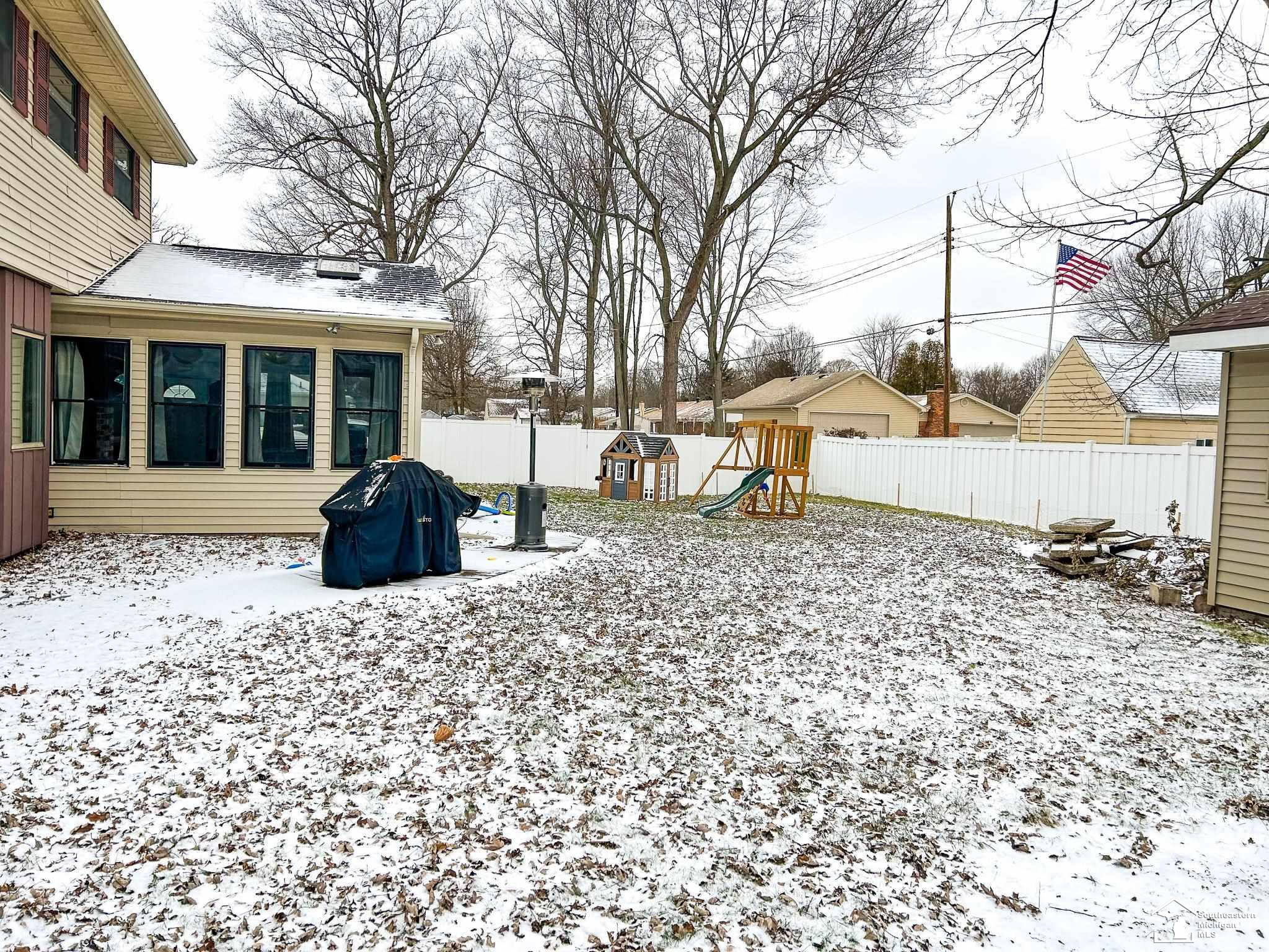 Gorgeous 2-sty home in Enchanted Forest subdivision! Extensively updated in the last 3 years! Awesome floor plan w/ seperate Family Rm, Living Rm, Living Rm, and Sun Rm with vaulted ceiling! New roof-2024, gutters-2023, privacy fence-2022, extended parking area and large shed! Electrical panel-2024 and HWT -2024! New lighting fixtures, plumbing fixtures, and door hardware-2022! Repainted interior, new carpeting, and vinyl plank floors throughout-2022! Totally new bathroom w/ double sink vanity-2024! Remodeled kitchen w/ painted cabinets, new hardware, epoxied countertops, and new appliances-2022! Large lot measuring 92 x 127 w/ great fenced rear yard equipped w/ large storage shed and attached 2+ car garage! Better hurry won't last!