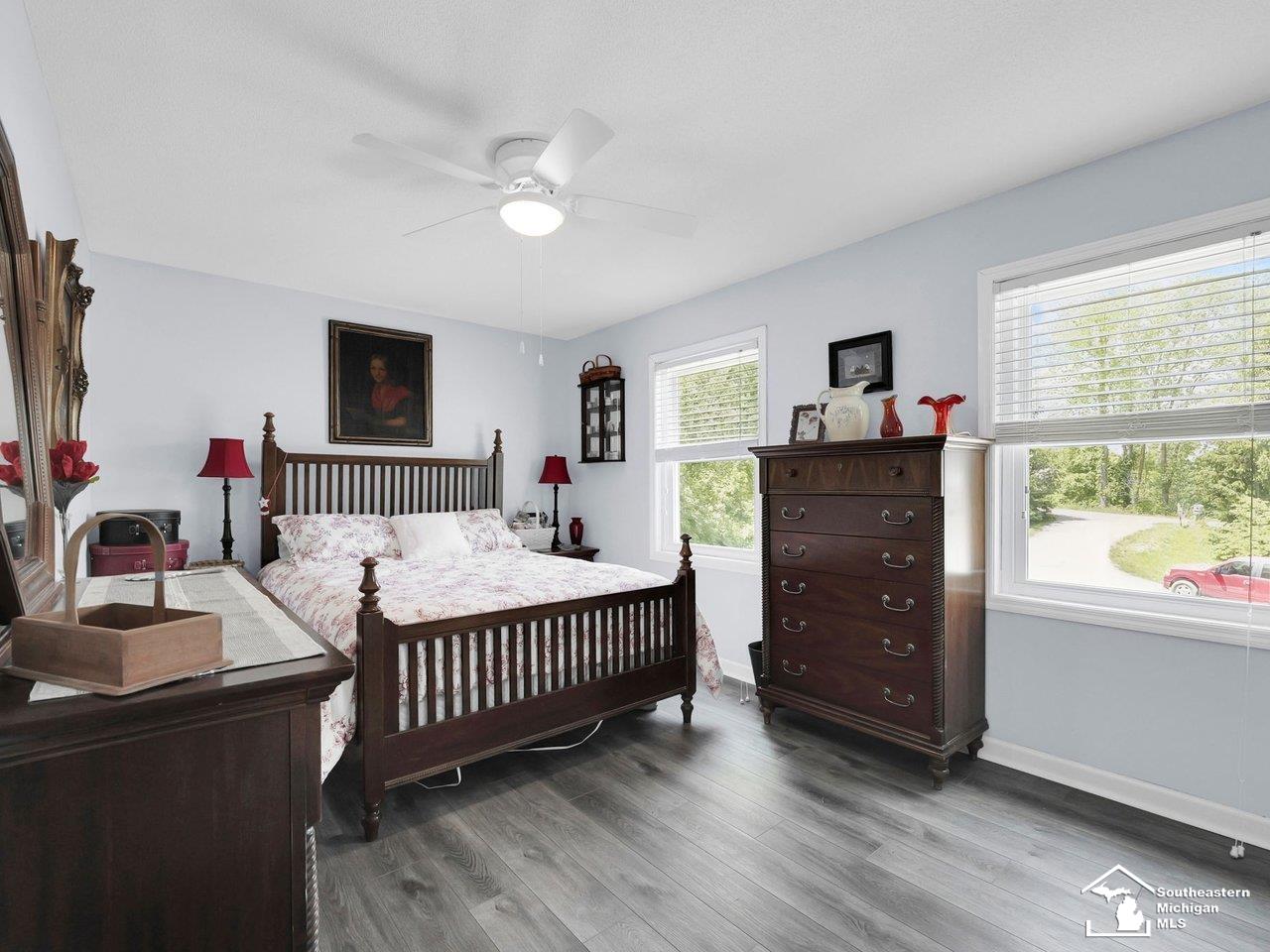 Welcome to lakefront living on the West shore of Iron Lake in the Irish Hills. Iron lake is a natural, spring fed lake with access to Wampler's lake. This home is "move-in" ready with many recent updates including newer roof, vinyl windows, furnace/AC, gas water heater, and well pump. Patio doors open to the large lake facing deck providing plenty of space for entertaining many. Plenty of room for family and friends with 5 bedrooms, 3.5 baths and finished walkout basement that opens to the beach. The modern kitchen with large island, quartz countertops, stainless steel appliances and generous cabinet space allow for convenient meal preparation and entertaining guests in comfort. The owners suite features tiled shower, large closets and second floor laundry. This property has lakefront amenities to enjoy the lake with newer boat dock including powered cover and boat lift. Plenty of room to store lake toys or vehicles in newer 24' x 30' pole barn with concrete floor and electric installed. This home is all ready for new owners to enjoy the lakefront lifestyle.
