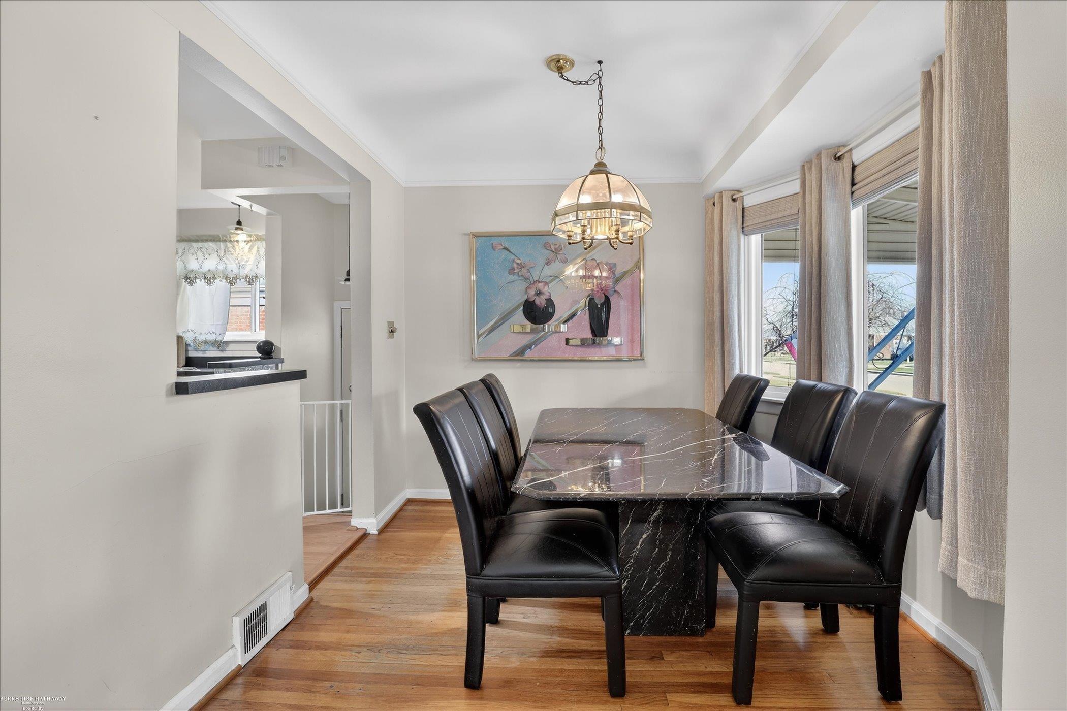 Charming brick ranch offering 2 bedrooms and 2 full bathrooms with 841 square feet of comfortable living space. This home features hardwood floors throughout much of the main level, a bright living room with coved ceilings, and an updated kitchen with all appliances included. The finished basement adds valuable additional living space, complete with a gas fireplace, full bathroom, and glass block windows. Major mechanical updates include a newer furnace and central air (2022), providing peace of mind. Outside, enjoy a fully fenced yard and a spacious 2-car garage with side entrance and garage door opener. A solid home with great potential, conveniently located and ready for its next owner.