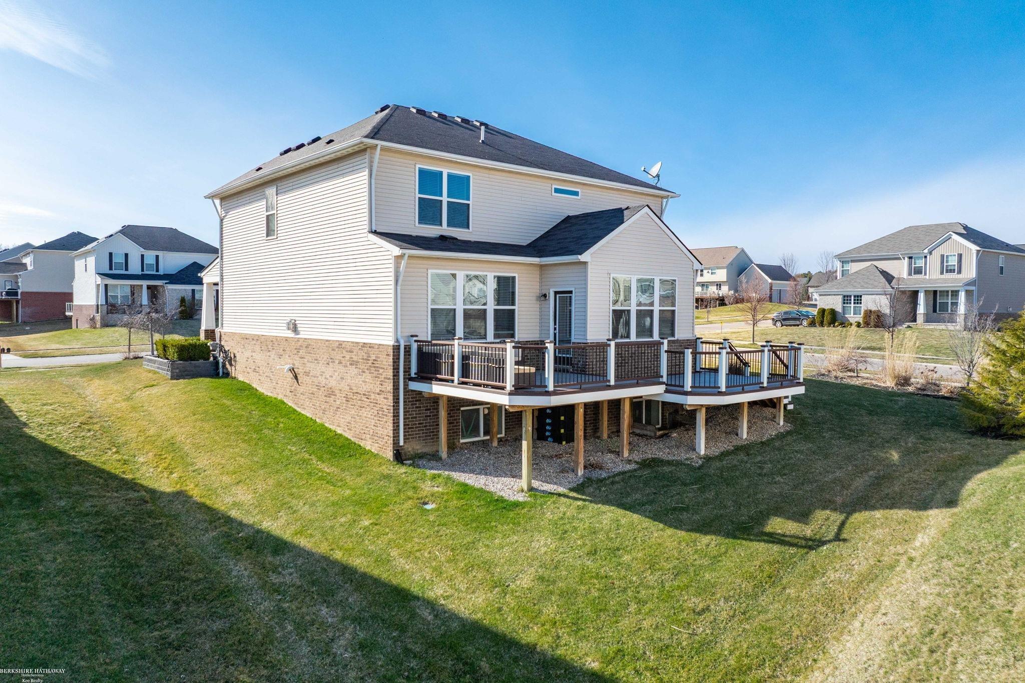 Whether you are relocating, upgrading, or looking to spread out, this home enhances your lifestyle. Located on a commanding corner lot in the prestigious Orchards of Lyon, this 2018 built masterpiece offers the crisp energy of newer construction with the soul of a beautifully designed estate. Beautifully milled hardwoods stretch across the main level, catching light from thoughtfully placed windows. Your culinary journey begins in the designer kitchen, where beautiful cabinetry meets a sleek tiled backsplash. The open concept layout ensures you are always part of the conversation. The Sun Room is a sanctuary of natural light, opening to a massive two tier deck designed for summer BBQs overlooking manicured grounds. The elegance continues upstairs. The primary suite features a stunning coffered ceiling for architectural grandeur. A spacious loft provides flexibility for a lounge, playroom, or home office. For convenience, the upper level includes a laundry suite with an integrated sink. The Ultimate Entertainment Hub The newly finished lower level is a full scale entertainment wing. With a bedroom, full bath, lounge, and second full kitchen, it is the perfect solution for hosting guests or a private home based professional. With a 3 car garage and top rated South Lyon Schools, you are perfectly centered for an easy commute to Ann Arbor, Brighton, or Metro Detroit. Welcome to the Orchards of Lyon. Your next chapter starts here.