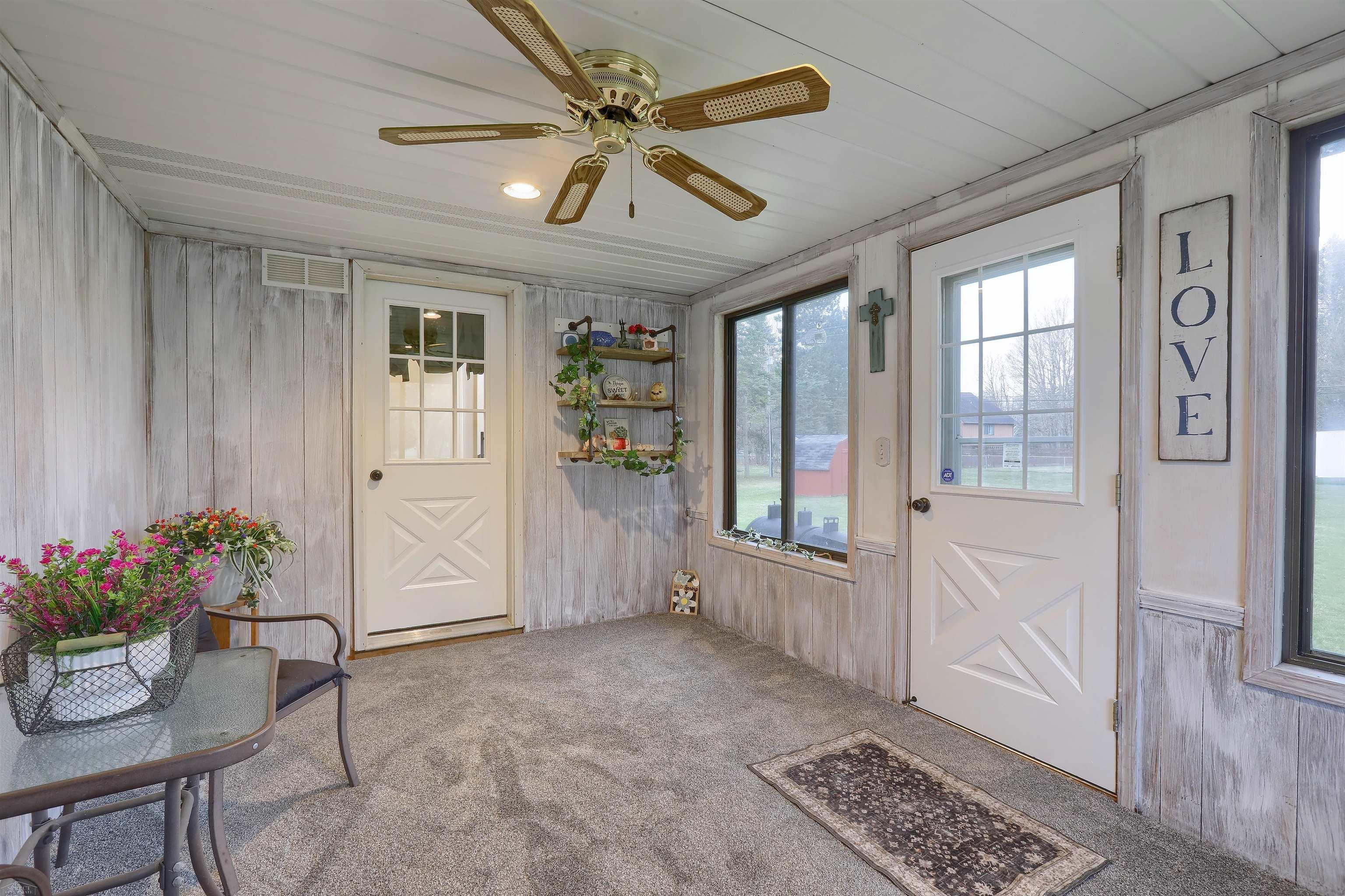 Beautifully maintained 3-bedroom, 1.5-bath ranch on a full acre of peaceful property. This home is in excellent condition & has been thoughtfully updated with in the last year. Recent improvements include flooring, fresh paint & trim, modern light fixtures, ceiling fans, renovated full & half bath, updated kitchen, & new dishwasher. Appliances stay, making this home truly move-in ready. Additional upgrades include a new carbon water filtration system w/ a 5-year transferable warranty, electrical hookup for a generator, mechanical replacements such as the furnace, A/C, and sump pump within the past 6 years. A spacious oversized 2-car attached garage w/ handicap-accessible ramp, plus a backyard shed for extra storage. A standout feature is the 4-season sunroom, perfect for enjoying quiet mornings & evenings while overlooking your yard. 1st-floor laundry adds convenience and functionality to the layout. This well-cared-for ranch combines comfort, updates, & country charm in one complete package.