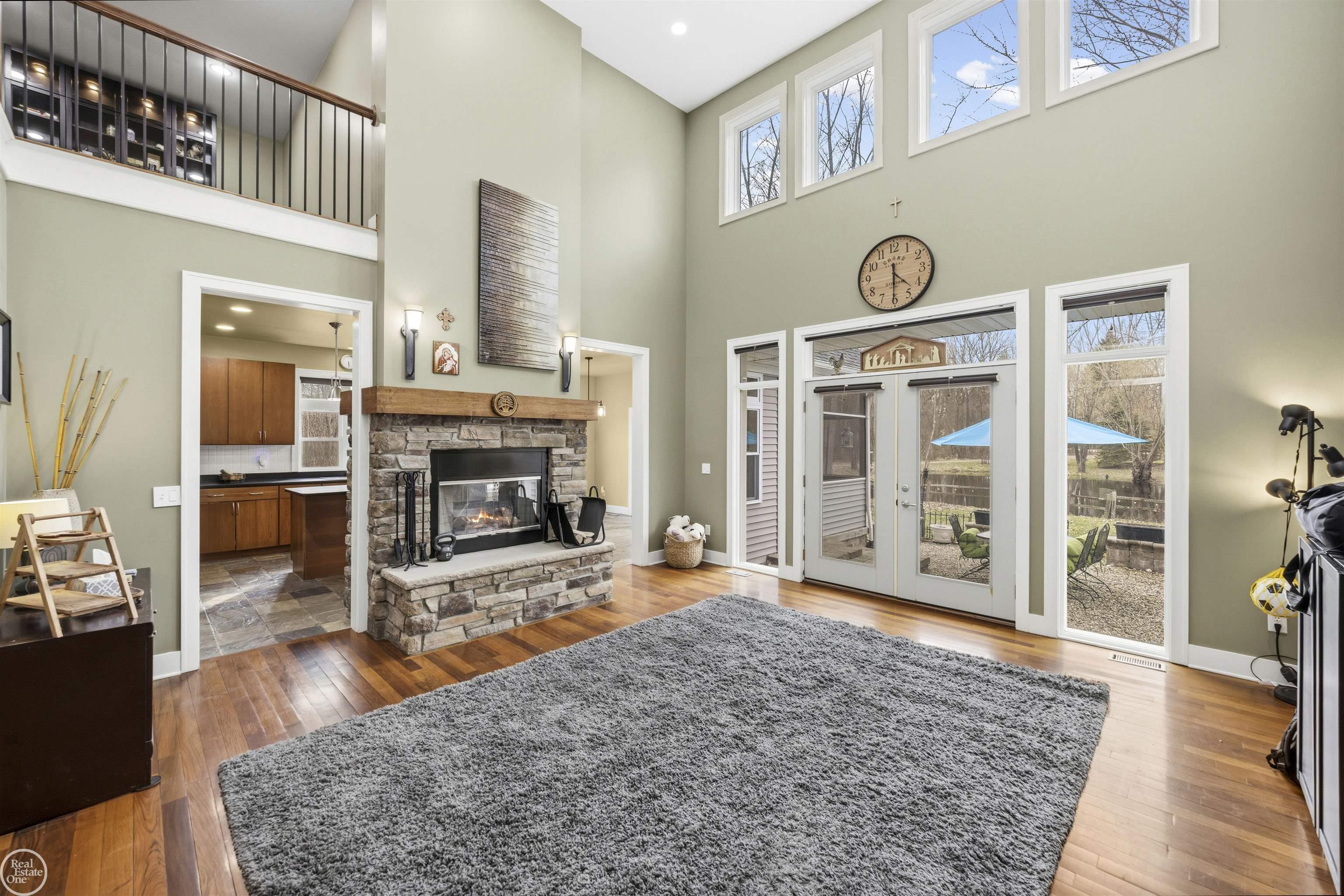The perfect blend of country living & modern convenience in this custom home on over 3 acres w/ tranquil pond views and a fenced backyard retreat. Inside, soaring ceilings and expansive windows fill the home with natural light, highlighting the spacious, open layout. The stunning two-story great room features hardwood flooring and a striking two-sided stone fireplace that flows seamlessly into the kitchen with plentiful cabinetry, oversized island, granite countertops, stainless steel appliances, walk-in pantry and a large eating area, plus a screened porch off the back—ideal for relaxing. The first-floor primary suite offers a walk-in closet & private bath, upstairs you’ll find a loft that could be an office or sitting area, two additional generous bedrooms, a full bath, & a huge bonus room that could easily serve as a fourth bedroom or additional living space. Additional features include a brand new roof, deep cement crawl space with stair access—perfect for storage—new water filtration system, and dual sump pumps. A Generac generator, Tesla Powerwall & smart switches throughout, Spectrum 1Gbps cable internet, and Starlink availability. A rare opportunity to enjoy serene surroundings without sacrificing today’s high-tech amenities! Goodrich schools and keys at the closing make this the perfect home