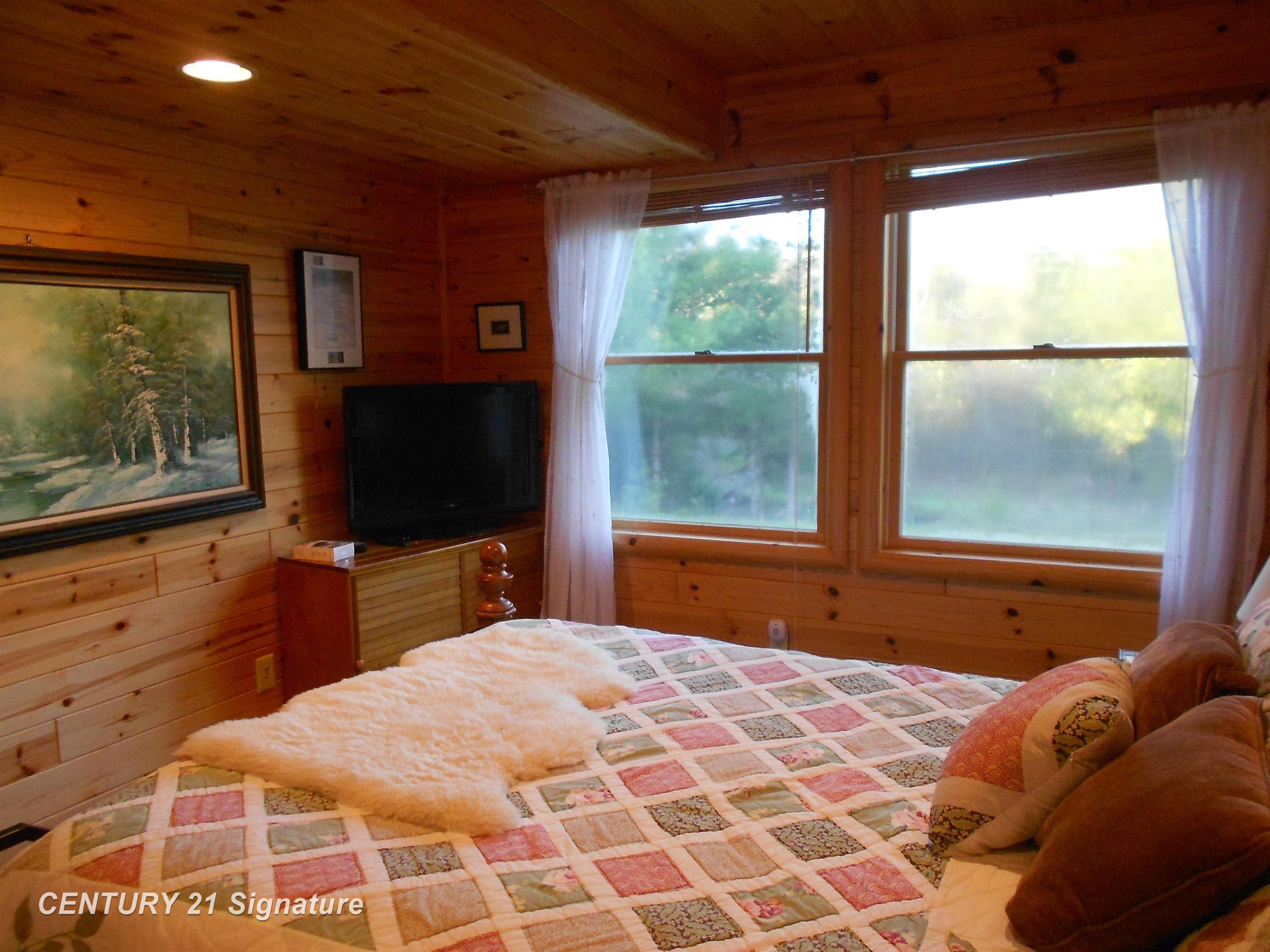 Custom Built Cabin on the Big Creek, totally remodeled in 2008. featuring knotty pine throughout, ceramic floors, stone island in the hickory kitchen, open floorplan, large living room, bright dining room, primary bedroom with WIC and private bath, 30X40 pole barn with 10X40 lean to, 20x18 carport, patio, two decks on the creek, 1/2 mile of trails. 1280 ft of frontage, excellent fishing and hunting, all on 9.5 acres. Broker Owned.
