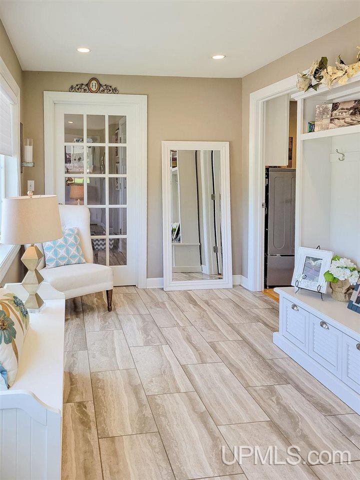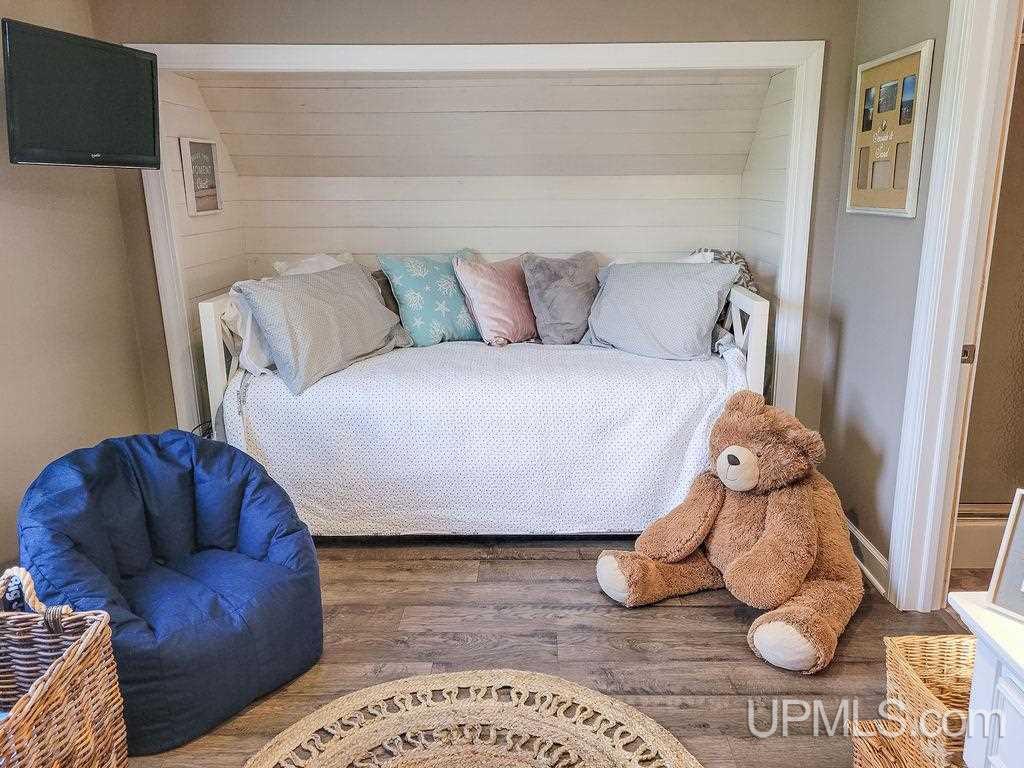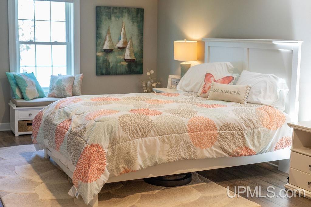 Perched on the shores of the beautiful Garden Bay, you’ll find this truly once in a lifetime home that you’ll have to see to believe. The exterior is clad in locally sourced limestone, with each stone being hand chiseled and strategically placed. The result is a stunning textural masterpiece, blurring the lines between masonry and sculpture. Curb appeal aside, there is far more to appreciate when you step off the deck and onto the massive yard leading down to the private horseshoe shaped marina. The unique design creates an ideal place to store boats, jet skis, or even a sea plane! Private marinas are a rarity amongst Lake Michigan property owners, and a real treat for the lucky few who have them. With perfect southwestern exposure, you’ll find yourself drinking in the colorful sunsets night after night; A view that truly never gets old. The interior of the home exudes a subtle sophistication, with soft neutral tones that keep the focus on the beautiful views beyond. The original antique wood floors are 1 inch hand grooved, and hand centered punched hard maple. These priceless floors were salvaged from a historic chapel built in the 1800’s, and could truly never be replaced. There has been a serious attention to detail and quality placed on every aspect of this unique home. Every square inch (with the exception of the facade and historic details) was meticulously renovated in 2017 including wiring, plumbing, roof, windows, etc. The kitchen features top of the line Wolf appliances, and custom countertops and cabinetry providing ample storage space. The layout of the home is open concept, and airy, resulting in a highly efficient plan that could work for any buyer’s needs. The primary bedroom is located on the ground floor, which is not only convenient, but provides privacy and separation from the guests and family that will be settled into the rooms upstairs. Storage will never be in issue with the attached 26x32 garage and detached 30x40 outbuilding.