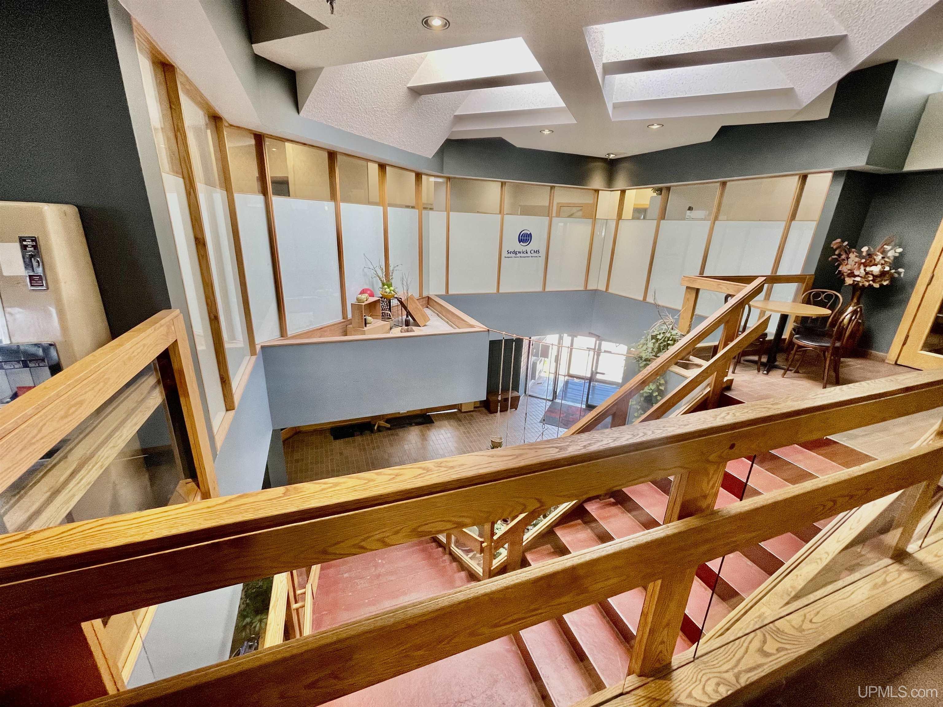 Explore this fantastic office lease opportunity in a newer built out space, designed for an insurance company in 2018. Nestled on the second floor of City Center, it includes an accessible entrance from Iron St. The entrance reveals a spacious, adaptable area featuring two private offices at the forefront. Benefit from ample parking options with a large lot of Marquette St. and off-street parking. For added lifestyle perks, seize the opportunity to bike to work or relish lunch breaks on the adjacent Heritage Trail, just steps away from the parking lot. Elevate your workspace with this turnkey solution for a seamless transition into a well-equipped and strategically located office space.