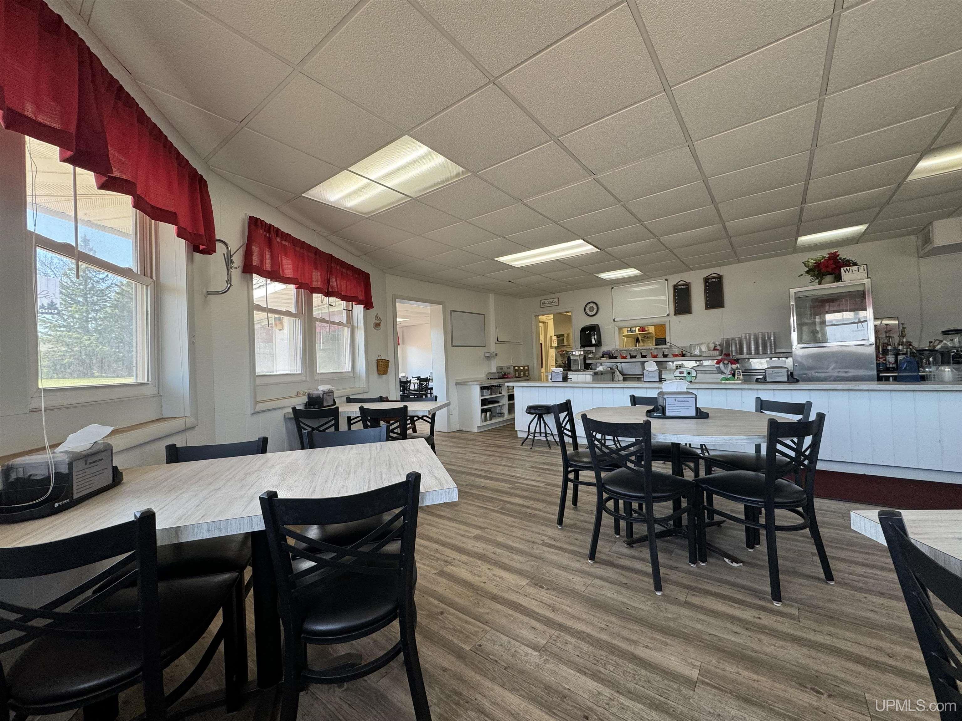 Here's your opportunity at a turnkey restaurant or choose to start from scratch on a 6 commercial lot peninsula! Outside, you'll find 300ft of frontage on busy US-2, an atv trail, and a massive parking lot for those tourists visiting the Porcupine Mountain state park. Inside, there is ample table and bar seating custom made from Sawdust Bin, plenty of storage, and many commercial grade appliances including a walk-in cooler. Owner made many updates to the flooring, lighting, and restrooms. There are new dishes and silverware, new Cake POS, new Motak fryer, and a newer water heater. Drive by and imagine the possibilities!