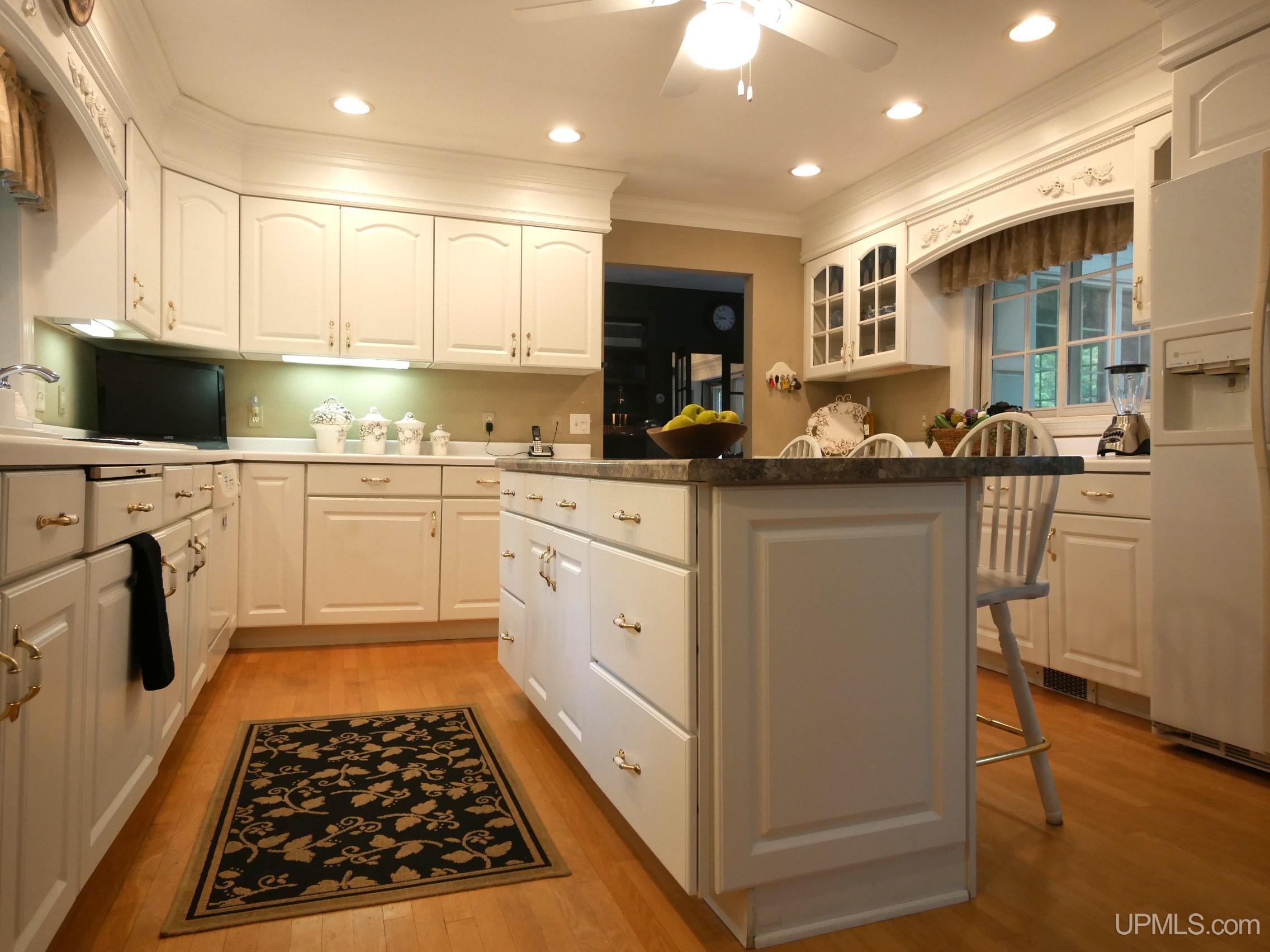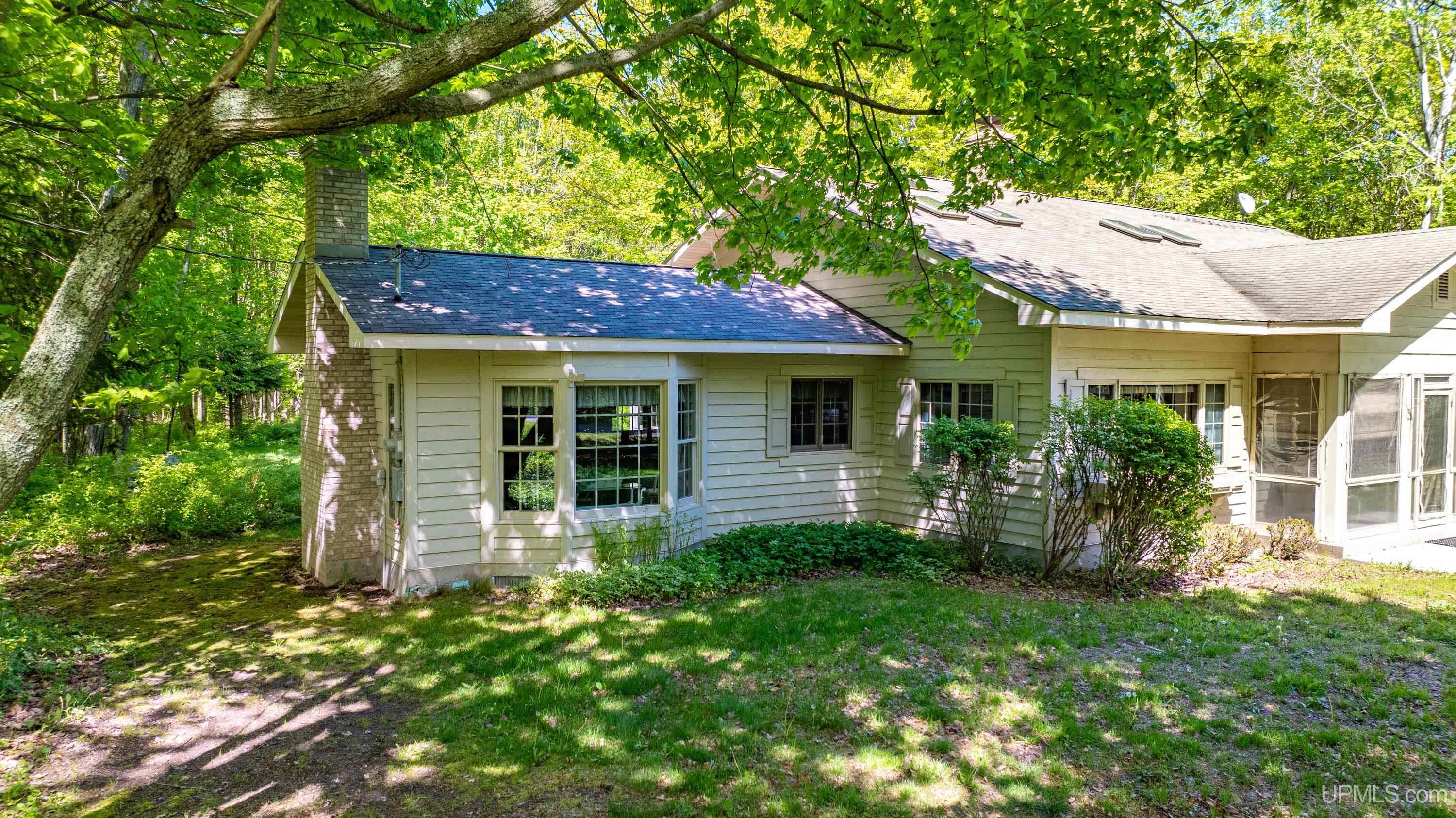 This inviting Rabbit Bay residence sits on approximately four wooded acres, offering a picturesque park-like atmosphere near Lake Superior. Originally constructed as a summer cottage around the 1950s, the home saw a complete renovation with an expansion in about 1999, adding modern upgrades and distinctive architectural elements. Features such as crown molding, built-in bookcases, a spacious kitchen with an island and wood-burning fireplace, a large primary bedroom with dual closets and direct access to a bathroom equipped with both a shower and tub, all come together to create a welcoming ambiance. The spacious floor plan includes excellent cooking and prep areas in the kitchen, a dining nook beside the fireplace, a family room or den with a second wood-burning fireplace, a formal living room with a wet bar, the primary and secondary bedrooms (the latter lacking a closet), a laundry and mudroom, ample storage space, and a screened-in porch. Notable details include glass French doors, hardwood floors, elegant stone fireplaces, built-in shelving, and detailed mantles. The detached two-car garage also features plenty of storage with built-in shelves. Blending a hint of formality with a relaxing cottage retreat vibe, this home is nestled amid the tranquil North Woods. Relax on the back deck, breathe in fresh evergreen air, and watch local wildlife among the beautiful trees. Enjoy this wooded wonderland with glimpses of Lake Superior in the area and close proximity to the infamous Dreamland restaurant. Experience Michigan’s prime year-round recreation, from fishing and boating in summer to snowmobiling and cross-country skiing in winter. This property is situated roughly eight miles from White City, about forty-five minutes from Michigan Tech, and just an hour's drive from historic Copper Harbor, renowned for its mountain biking trails. The tastefully furnished home features many designer accents and may be sold with or without furnishings, as negotiated. The roof was replaced around 2011, and a new boiler in April 2025. ---- NOTICE: All info believed accurate but not warranted. Buyer recommended to inspect all aspects of the property & bears all risks for any inaccuracies. Buyer to verify all info including but not limited to the acreage, lot size, square feet, utilities (availability & costs associated). Buyer should not assume the buyer’s taxes will be the same as seller’s present tax bills. Taxes are subject to change (possibly significant) & property will be reassessed by the municipality after sale. Sellers may have audio/video recording devices present on property & buyers & agents consent to being recorded by entering property. Seller, at seller's sole discretion, with or without notice, reserves the right to set &/or modify offer deadlines.