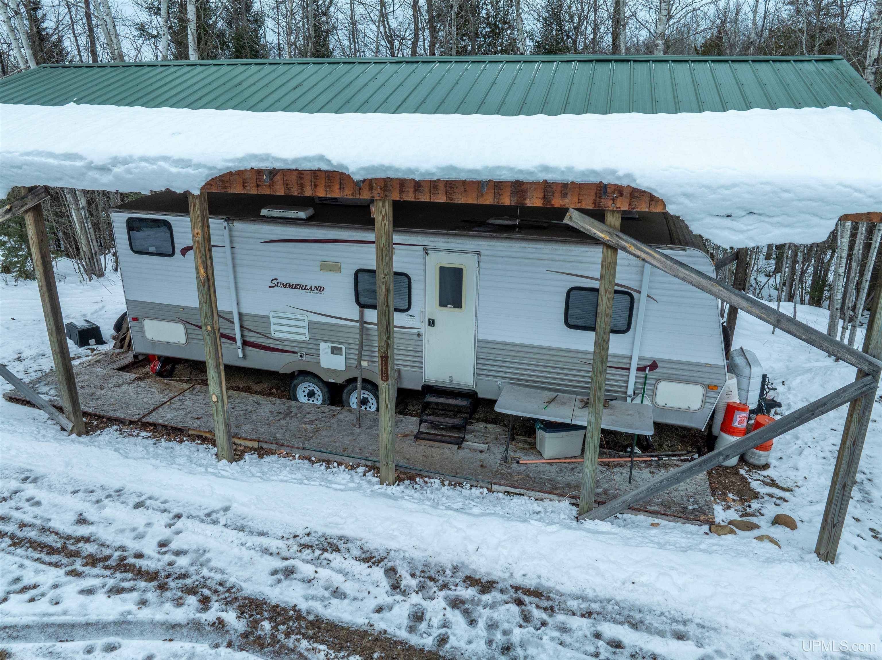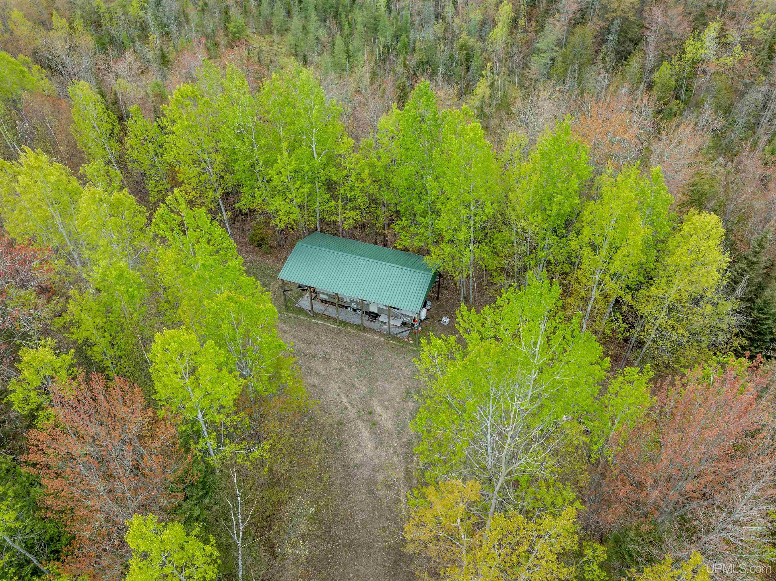 Looking for ideal hunting land that has easy access and additional conveniences already included? This 120 acre piece of property captures the mood for any hunter that doesn't like traveling extensive miles down rugged and washboard roads to get to their destination. A portion of the land runs 1320' down M67 highway and has an accessible road to the recessed 80 acres that are attached to the roadside 40 acres. There are abundant deer trails that make their way to several well structure deer blinds that are elevated. A couple hundred feet to the back 80 acre area on the north side is a well constructed framed trailer port that has a metal roof. Underneath the framework is a large mobile camper that can be included with the sale of the land. This is very inviting property that's well located and has a general store approximately 1 mile away. Take advantage of this opportunity to own real estate with fine partridge, rabbit and deer hunting and options for year round dwelling as well.