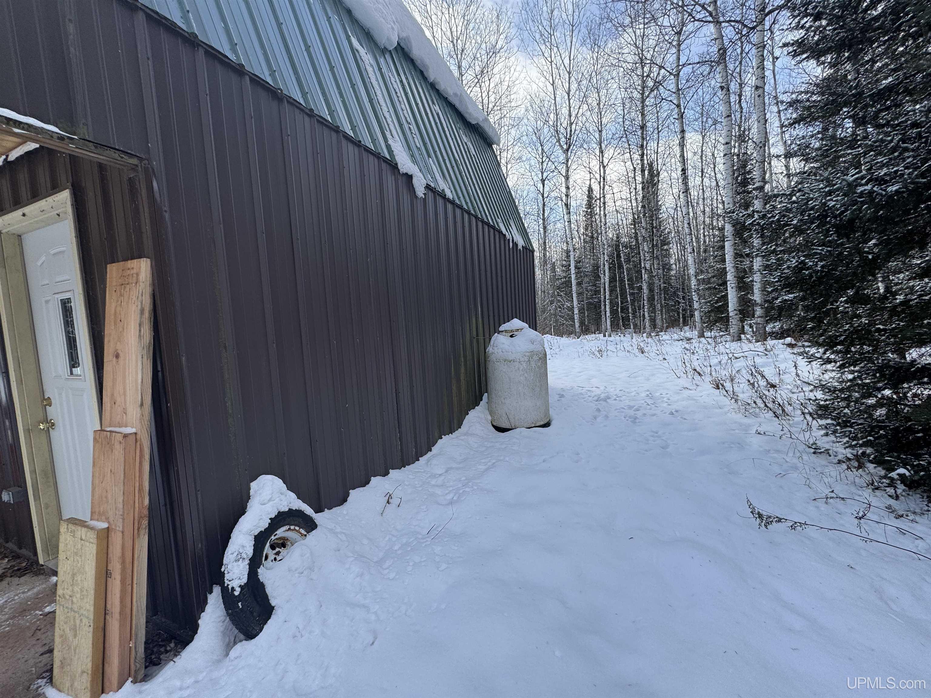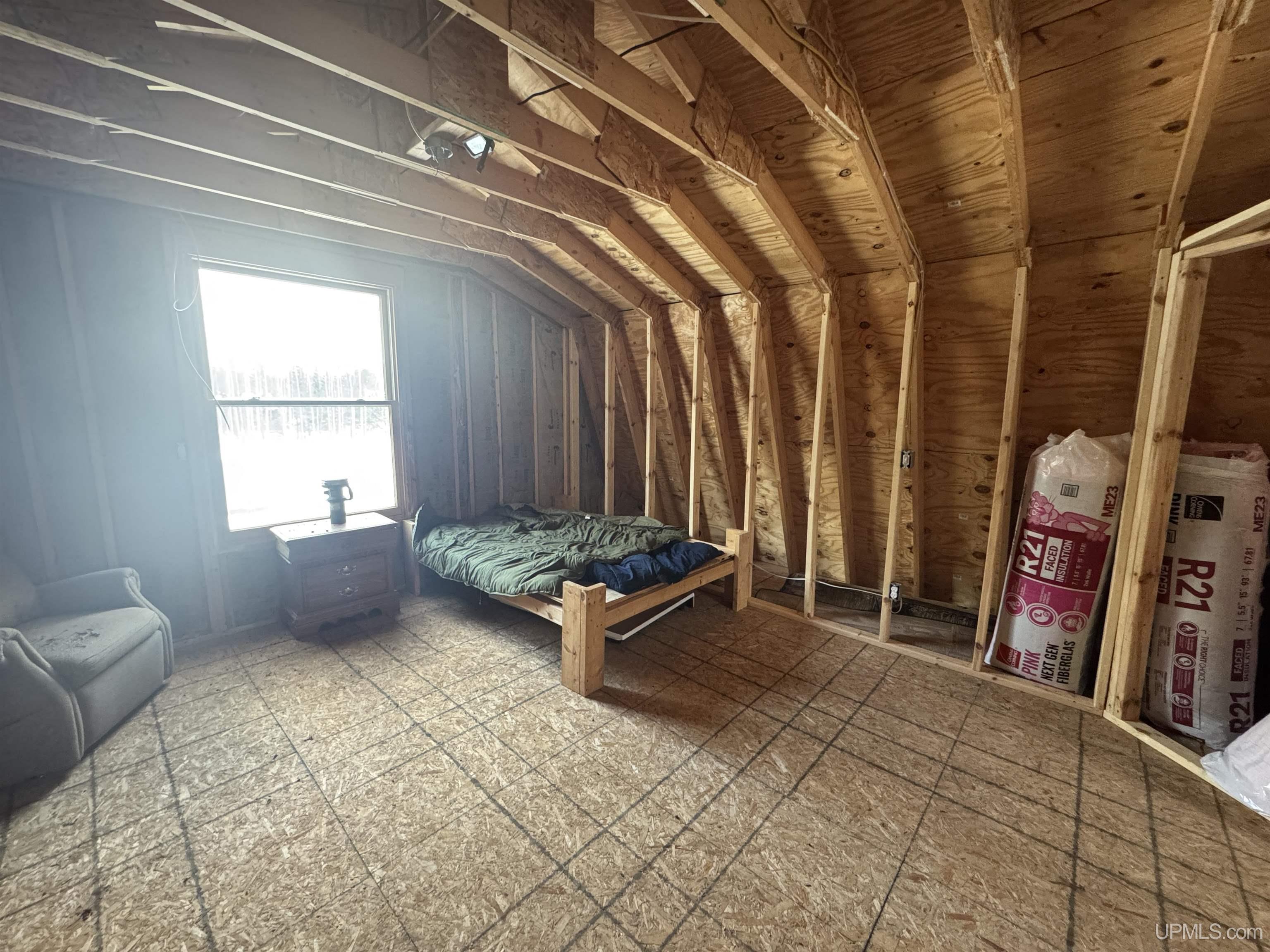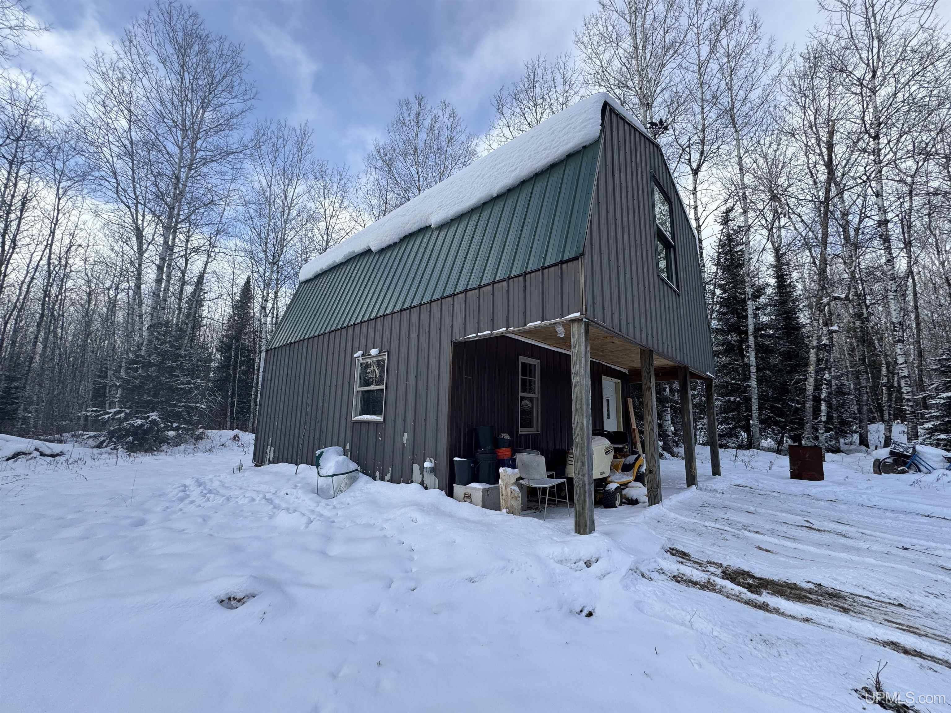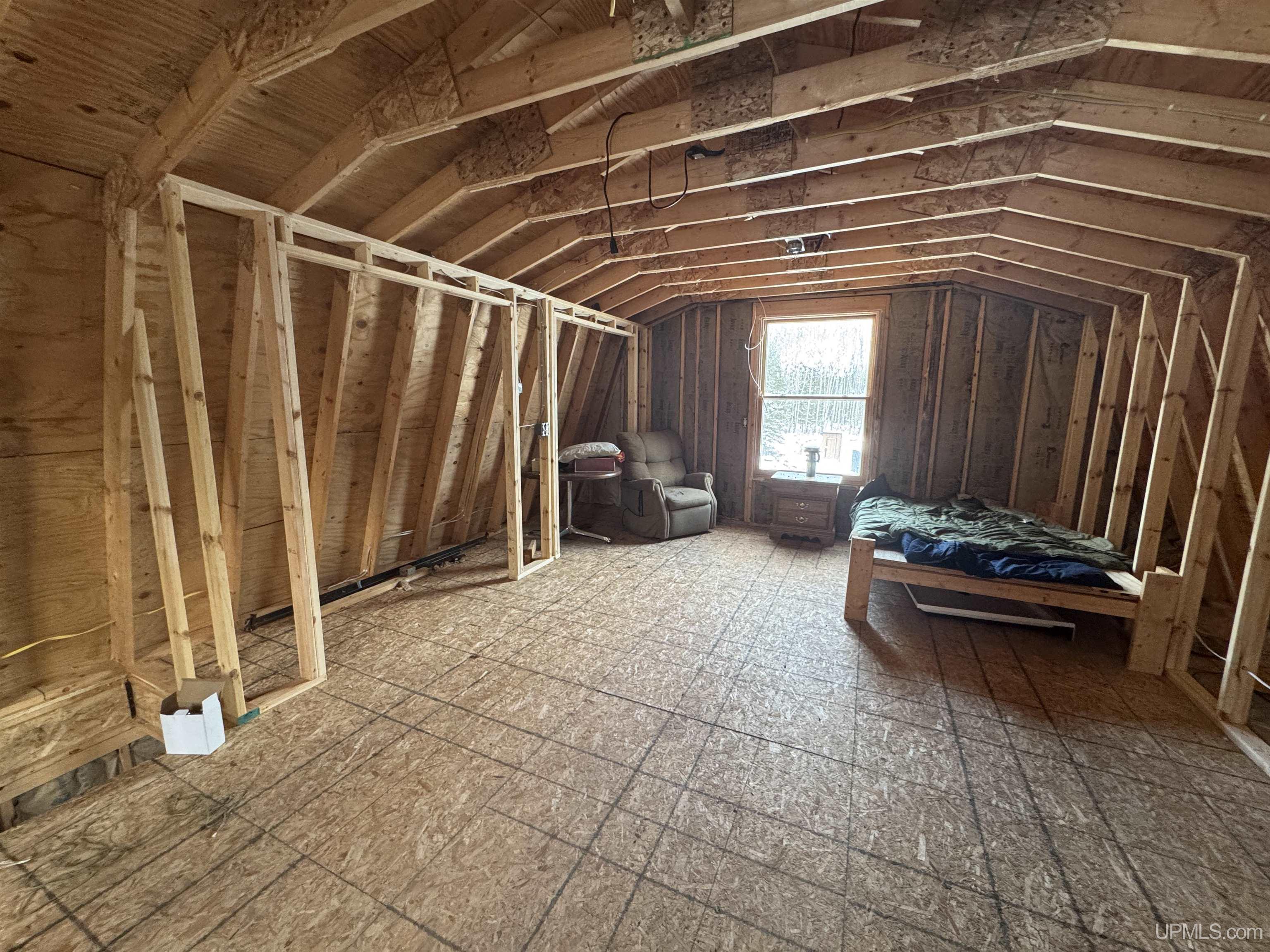 Discover endless possibilities with this unfinished barndominium set on 20 wooded acres! Lots of options with electricity at the road. This property features a main floor open living area with a convenient half bathroom and an upstairs loft-style bedroom complete with space for a full bathroom. The home has a propane wall unit for heat and is currently powered by a generator. While there is a 500 gallon poly septic is already in place, new owners will need to add a well. A majority of the home sits on a concrete slab foundations with a small crawl space under the main floor bathroom. Outdoors, you'll find two storage options, a shed and shipping containers. Whether you're looking to create your dream home, or a get-away retreat, this property offers the perfect start to make your vision a reality. Don't miss the chance to own this unique property with tremendous potential!