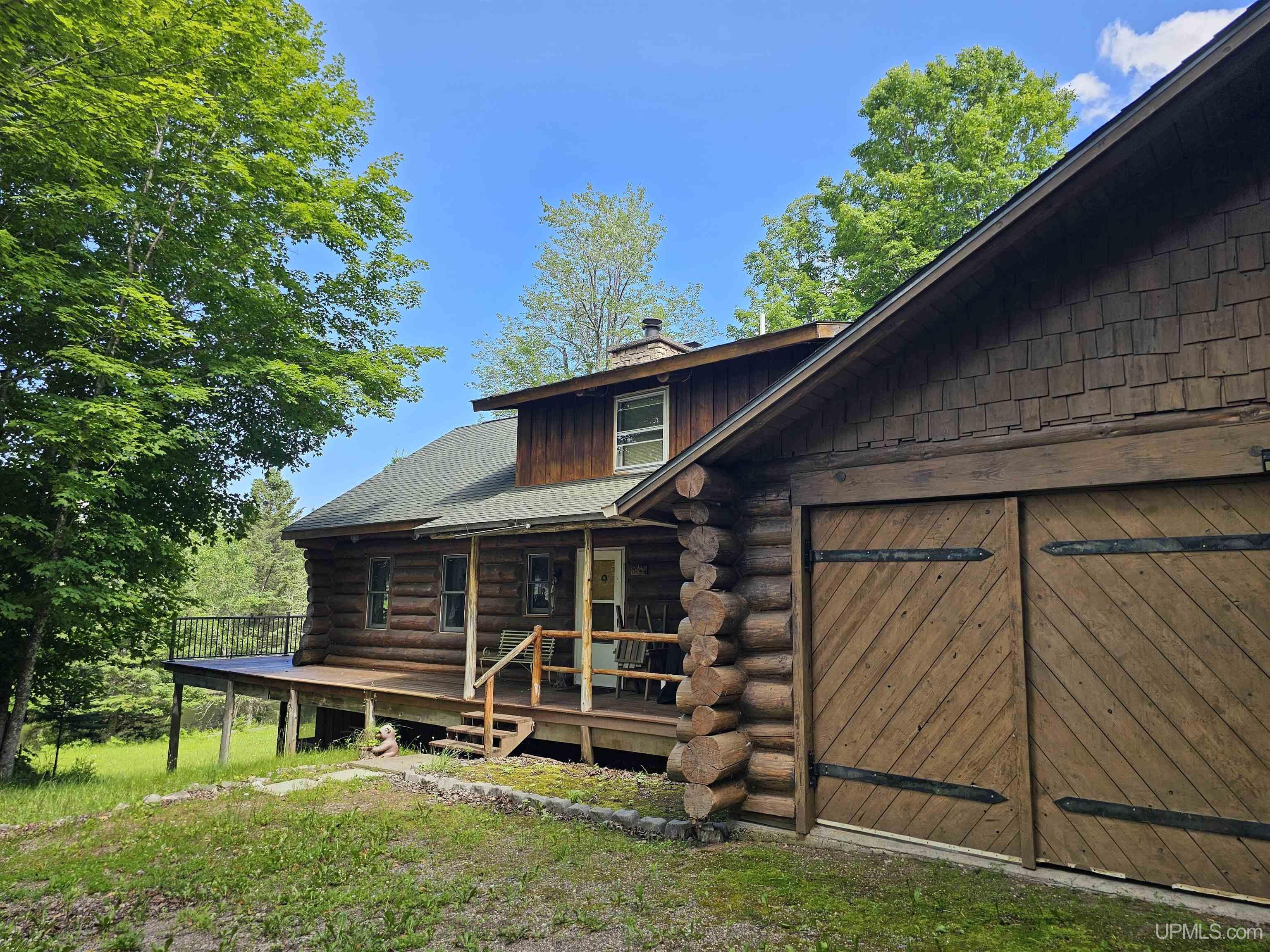 Don't miss out on this beautiful log home set on 12.7 acres on the fabulous Michigamme River. This 3 BR 1.5 bath custom log home with attached 2 car garage and walk-out finished basement comes furnished and is ready for you to enjoy riverfront living. The living room with cathedral ceilings and a towering stone fireplace definitely adds to the ambiance. Large patio doors lead to the wrap around deck overlooking the river. Upstairs there are two loft style bedrooms divided by a convenient half bath. The front walk-out side of the basement has a finished family room with a woodstove to keep things cozy and there is an attached enclosed porch towards the river. Private setting tucked off the road with a walking path that meanders along the ~285' of river frontage. Enjoy boating, swimming and fishing right out your back door!