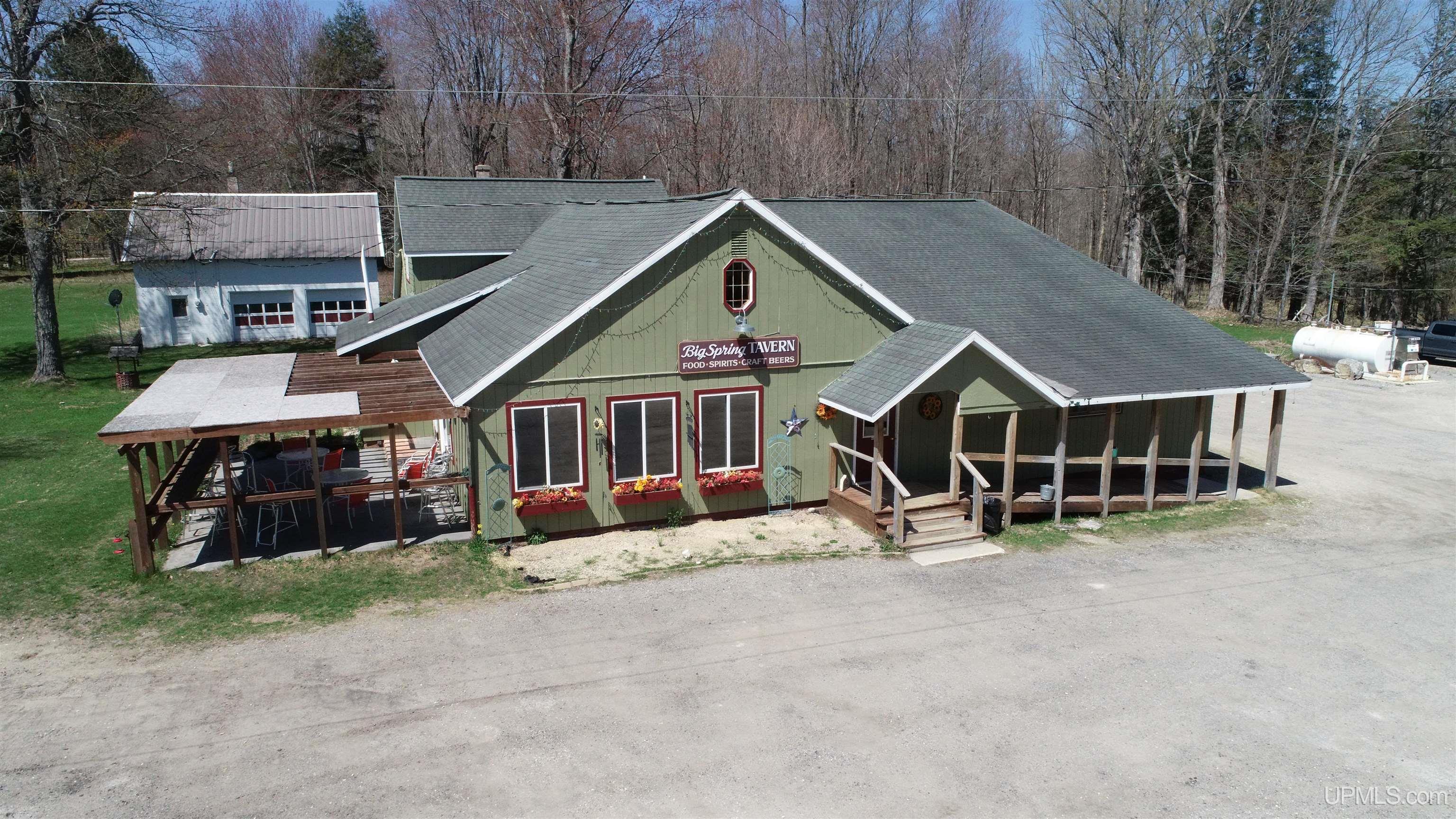 Step into a piece of Upper Peninsula history with the Big Spring Tavern, a cherished local landmark in Manistique, Michigan. Formerly known as the Big Spring Inn, this longstanding establishment dates back to the 1940s, when it first served as a gathering place for locals and travelers alike. Just minutes from the famed emerald spring waters of Kitch-iti-kipi in Palms Book State Park, the tavern has remained a convenient and welcoming stop for over 200,000 annual visitors exploring the park's natural beauty. Today, the Big Spring Tavern continues to thrive as a vibrant part of the community, offering a warm atmosphere, delicious food, and up to 26 beers on tap. The property features outdoor dining, gas pumps for added customer convenience, and direct access to Trail 7, making it a prime stop for ORV, snowmobile, and outdoor enthusiasts. With a rare, highly sought-after Michigan Original 550 Resort Liquor License, transferable statewide and unrestricted by local population quotas, the business is well-positioned for continued success. Additional on-site living quarters offer renovation potential, while the expansive 22-acre property presents incredible opportunity for future expansion or complementary ventures. Whether you're looking to invest in a growing hospitality business or steward a historic destination with deep community roots, the Big Spring Tavern offers unmatched potential in an unbeatable location.