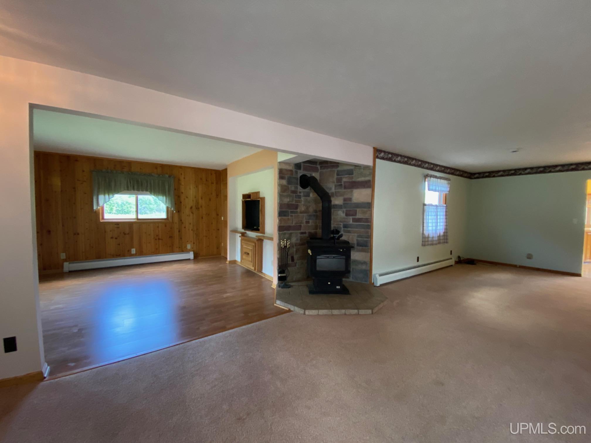 What an incredible opportunity - 2.7 acres with a lovely home, a 1,015-square-foot workshop, a detached 3-car garage, and an additional 2-car garage! The home is in good condition and lovingly maintained over the years. Home features 2 bedrooms, 2 baths, and a fantastic floor plan. The kitchen is impressively spacious and truly the heart of the home. The previous owner was a skilled carpenter and cabinet maker, crafting custom-built cabinets with intricate inlays and stunning finishes. The breakfast bar is perfect for meal prep or gathering with loved ones. The casual dining area, just off the kitchen, boasts a wall of windows and beautiful natural lighting. The living room/formal dining area includes a cozy wood stove, ideal for chilly winter nights, while the den/family room offers additional living space. The main floor bedroom is generously sized and conveniently located near the primary bathroom and laundry. Don't miss the 3-seasons room, where you can relax in peace and watch wildlife in the private backyard. Upstairs, the expansive ensuite is a true retreat, measuring 19x23, with a massive walk-in closet and private bath—a perfect space to unwind. All this, just 16 miles from Marquette, making commuting a breeze.