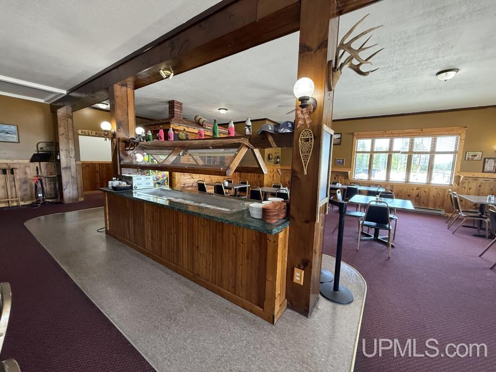 This rare all-in-one opportunity includes a spacious restaurant and bar, a 3-bedroom, 2-bath home, and a separate 3-unit motel?all perfectly positioned on 5 highly visible acres with frontage on Hwy M28 and direct access to Trail #8, a major route for snowmobilers and ATV riders. The open-concept restaurant and bar area are ideal for large gatherings, and the commercial kitchen has been significantly upgraded with a new dishwasher, cold pizza bar cooler, kegerator, 3-bay sink, industrial clothes washer, alarm system, and many updated appliances, plus new plates, and glasses. The barn has been extended and enclosed (24x30) with power, and the owners have purchased the two propane tanks for added value. A metal roof has been added over the employee entrance and front porches, and the property includes both a resort and liquor license?making it truly turnkey. The attached home features central air, a washer and dryer, new mattresses throughout, and a spacious kitchen/dining/living area with a private deck?ideal for owner living or rental income. The separate motel units have been enhanced with kitchenettes, newer cabinets, and updated appliances, offering even more comfort and appeal to guests. With recent upgrades including paved parking and a large gravel lot perfect for snowmobile trailers, this property delivers unmatched versatility, visibility, and income potential in the heart of Michigan?s outdoor adventure country.