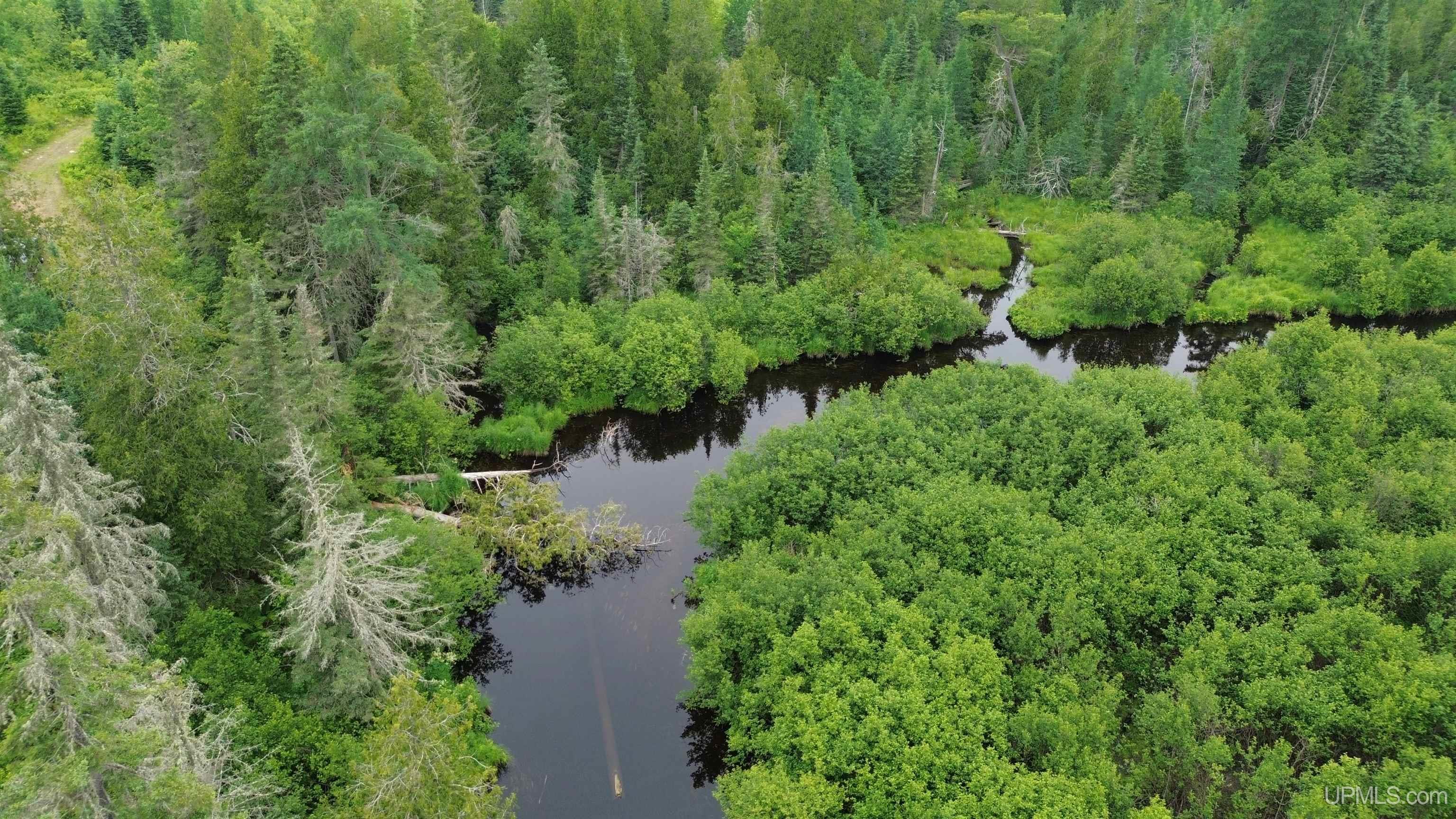 280 Acres of Pure Seclusion with River Frontage and Rustic Cabin. Escape to your own wilderness retreat on this stunning 280-acre property, offering ultimate privacy and natural beauty. Over two miles of well-established trail roads wind through gently rolling hills and a diverse hardwood and conifer forest. Enjoy more than 3,000 feet of frontage on the Mitchigan River, a remote, 14.9-mile waterway that forms part of the Lake Michigan watershed. Flowing along the boundary of Iron and Marquette counties, the Mitchigan River connects to the Fence River, Michigamme River, and ultimately the Menominee River system. Its pristine tributaries include outflows from Chief Lake, Springhole Lake, and the West Branch Mitchigan River. An unnamed creek meanders for over a mile across the property, feeding three scenic ponds before joining the Mitchigan River in the southeast corner of the parcel. Perched beside one of these ponds is a rustic off-grid cabin, offering serene views, a peaceful setting, and the perfect basecamp for hunting, fishing, or simply unplugging from the world. Whether you're seeking a private hunting tract, a nature preserve, or a place to build your dream getaway, this property delivers unmatched beauty, abundant wildlife, and total seclusion.