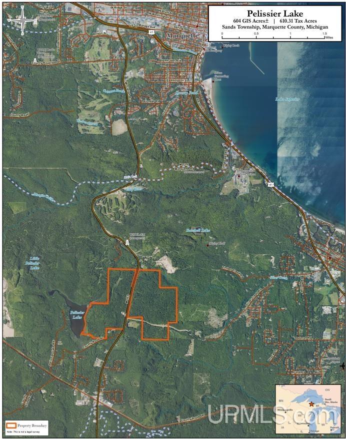 Exceptional Marquette Investment Opportunity Pelissier Lake is an exceptional opportunity to invest in a property with many desirable development attributes in one of Michigan’s most vibrant communities. Located in Marquette in Michigan’s Upper Peninsula, Pelissier Lake offers 610 acres of undeveloped forest with frontage on Pelissier Lake and Marquette County Road 553 (M553). With the proximity to the City of Marquette, current development trends, and the outstanding quality of the land base, there is no comparable opportunity in today’s market. Pelissier Lake is located approximately 4.5 miles south of US41-M28, and 1.5 miles south of Marquette Mountain on M553. As a result of this popularity and the need for growth in Marquette, the M553 corridor has seen several development projects featuring light manufacturing, commercial, and both multi-family and single-family residential homes in recent years. The property is superbly located to continue this trend and will provide an investor with a diverse collection of development opportunities. The property is currently undeveloped and features a high quality well-stocked northern hardwood forest. The site is gently rolling and as you get closer to Pelissier Lake, rock outcrops become visible with dramatic views of the lake and surrounding landscape. The property is accessed directly from M553 at multiple points and there is a well-developed network of interior woods roads that access the entire property. The timber inventory has not been updated, but there is considerable value in standing timber and the resource is poised to provide immediate cash flows while development opportunities are evaluated. The property features approximately 3,500 feet of frontage on Pelissier Lake and is zoned for residential development. The lake shore varies from nearly level to the south to modest elevation and slopes to the shore on the north. All the lakeshore is dominated by mature timber and rock outcrop features that evoke a wilderness aesthetic. This portion of the property is ideally suited for single family home development and provides a strong sense of privacy and solitude only five minutes from Marquette. All the property adjacent to M553 is zoned for commercial development. This zoning designation allows for unlimited opportunities in Sands Township. M553 is the primary commuter route between Marquette and many small communities to the south and the Michigan DOT calculated an average daily vehicle count of 8,444 vehicles in 2024. The remaining portions of the property to the east of M553 offer further opportunity. This portion of the property can also be accessed from Silver Creek Road and features exceptional timber quality and a gently rolling landscape. Possibilities exist for further recreational development, kingdom estates, or single-family development. In any case, the property is truly unique and unlike anything on the market in the greater Marquette area.