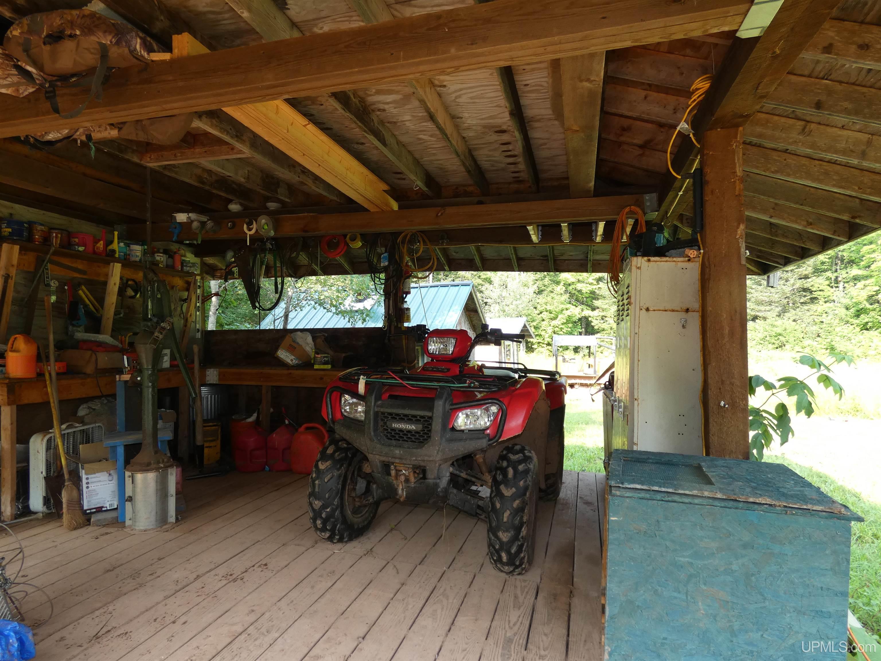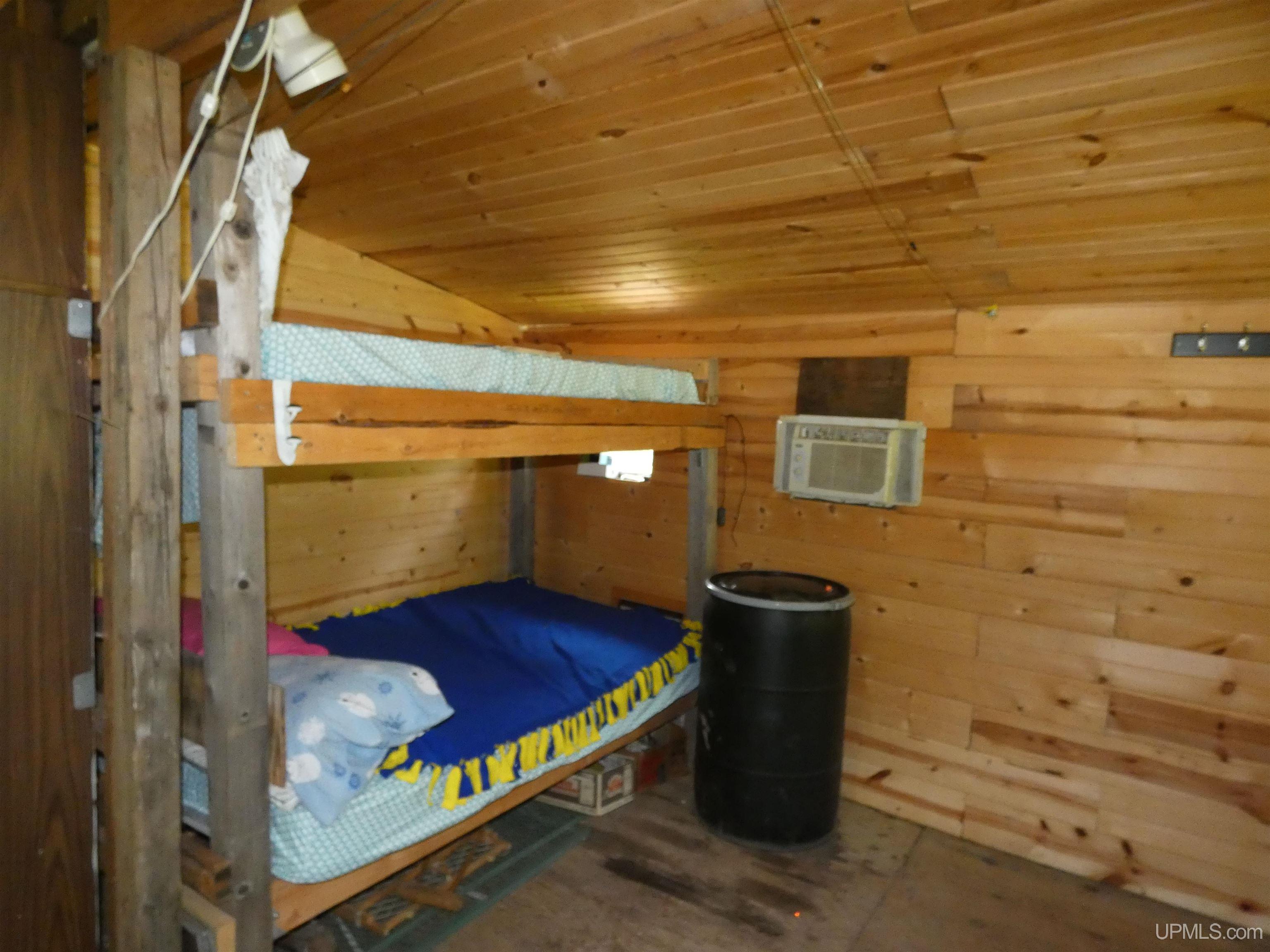 If privacy is high on your priority list, look no further. we have a secluded retreat in the foothills of the Porcupine Mountains, exclusive hunting opportunities for white tail deer, bear, grouse, predator hunting. Virtually zero hunting pressure. Unrivaled trophy whitetail and bear. Only land owner with ingress/egress permit to use nearly eight miles of road. Non motorized/semi primitive designation by the National Forest Service. Valid exclusive special use permit through 2040 (renewable). Year round access via ATV/Side by Side/ Snowmobile. National Forest Service gated and monitored road. As near Canadian experience as you can get in the United States. Dish network satellite tv with Wally receiver and flat screen tv. Air conditioner. Fully functioning year round well water. One street light and one parking lot light illuminates approximately two acre field. Honda 3000is generator. Camp wired with electrical outlet and switches. Recessed dimmable lighting. Unique bowling alley lane table. Outside fed detached sauna. Seven beds(can sleep 10-11 people). Bunk beds are full size (not twin). Double basin kitchen sink with working drain. New cupboards and countertops. Entire camp fully insulated along with vapor barrier plastic. Fully functioning brick fireplace with primary heat from wood burning stove. Five fully enclosed blinds, three of which are elevated. Active and productive food plot with wheat, barley, rye and clover. Thirteen newly planted apple trees. Property access to both side of the River with two foot wide I-beams. Comes with 2001 Honda Rancher 4x4 and Caterpillar D-5 wide track bulldozer. For more information call us today! (TAXABLE: $55,482 SEV: $61,590)