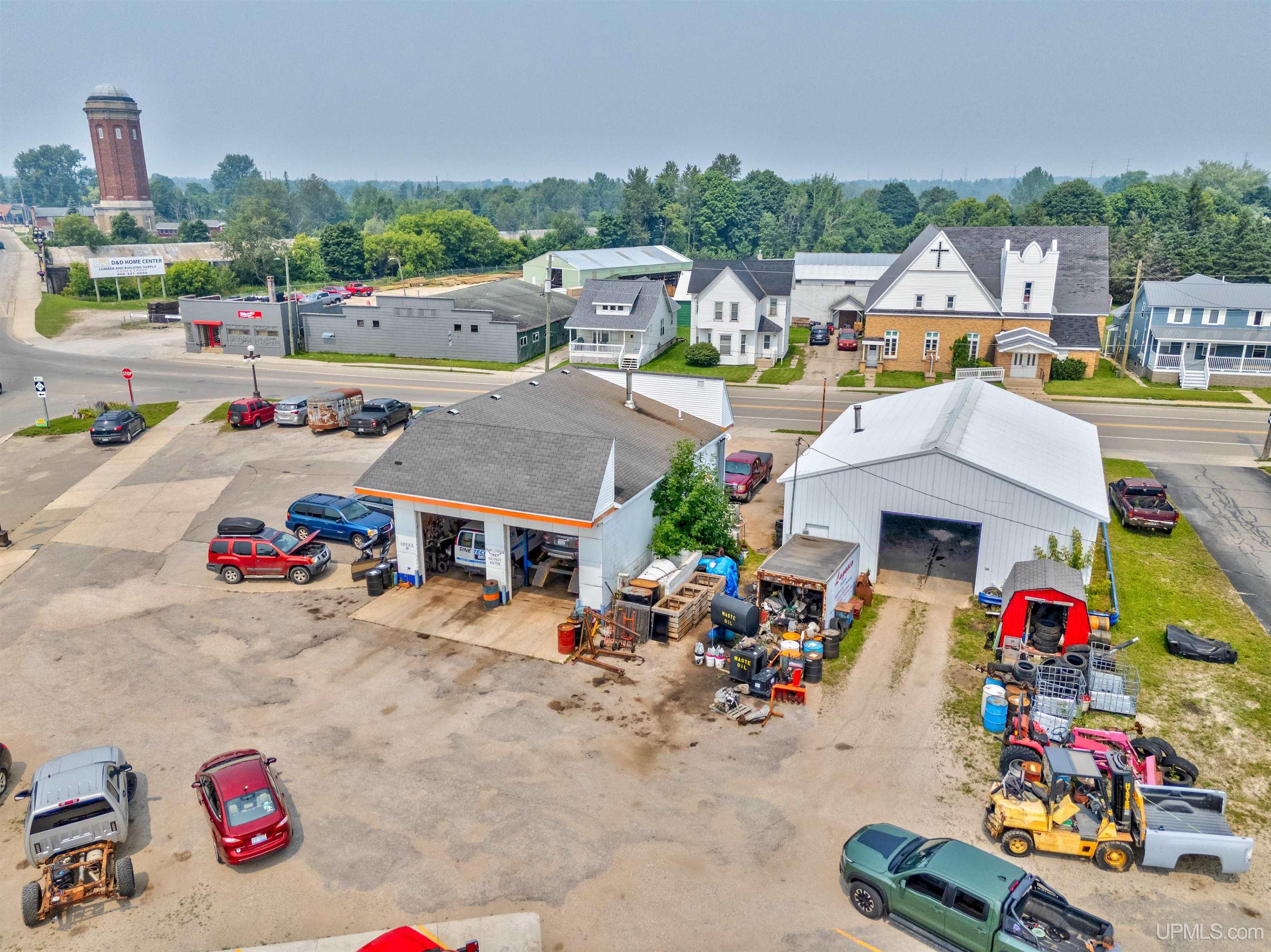Sitting in a prime corner lot in the heart of Manistique, this commercial/business opportunity is bursting with potential for those seeking a high visibility property in a great location. Currently operating as a general automotive repair shop, this established business serves 30+ vehicles weekly and benefits from a great reputation in the area. The main shop features a 26x26 2 car shop/garage, with an additional massive 36x46 located just behind. Attached to the main shop area is an office, storage area, and bathroom. There is ample parking throughout, with space to park 20 vehicles. Some inventory/equipment is negotiable. This would be a great option for those looking to operate their own successful automotive business, but could also suit a variety of other commercial and business needs.