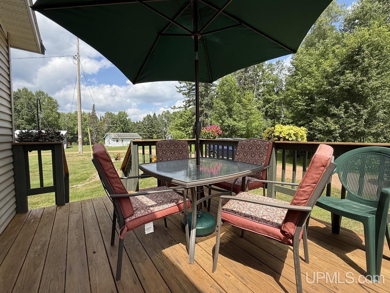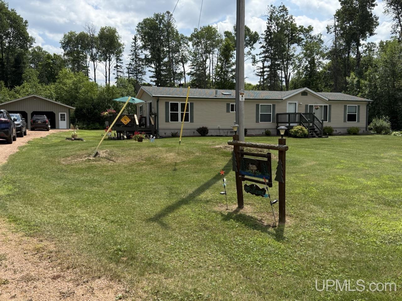 Tucked away on one of the largest lots in the desirable Timbers Association, this spacious 3-bedroom, 2.5-bath home offers privacy along with access to 16+ acres of shared land and 1,500 feet of scenic Michigamme River frontage. Step inside to a warm and welcoming interior featuring a generous kitchen with a breakfast bar and an adjoining dining area, ideal for everyday living or entertaining guests. The formal dining room opens to a bright living room, while the cozy family room with its fireplace is perfect for cool evenings. Three skylights fill the home with natural light, and sliding glass doors lead out to two decks great for relaxing and enjoying the outdoors. The private primary suite includes a spacious bath with both a garden tub and a separate shower. All bedrooms offer large closets. The convenient main floor laundry makes a tough job a little simplier. Most furnishings stay, making your move-in process even easier. A two-plus car garage provides ample storage and includes a built-in workbench. As a resident of the Timbers Association, you'll also enjoy a range of amenities including ground maintenance, a shared well, boat dock, fish cleaning house, and a storage shed—all for a low annual fee of just $600. Whether you're casting a line in the river, cruising by boat, or simply soaking in the views, this home offers the ideal balance of comfort and nature. Don’t miss your chance to own a piece of riverfront paradise in this well-maintained, amenity-rich setting!