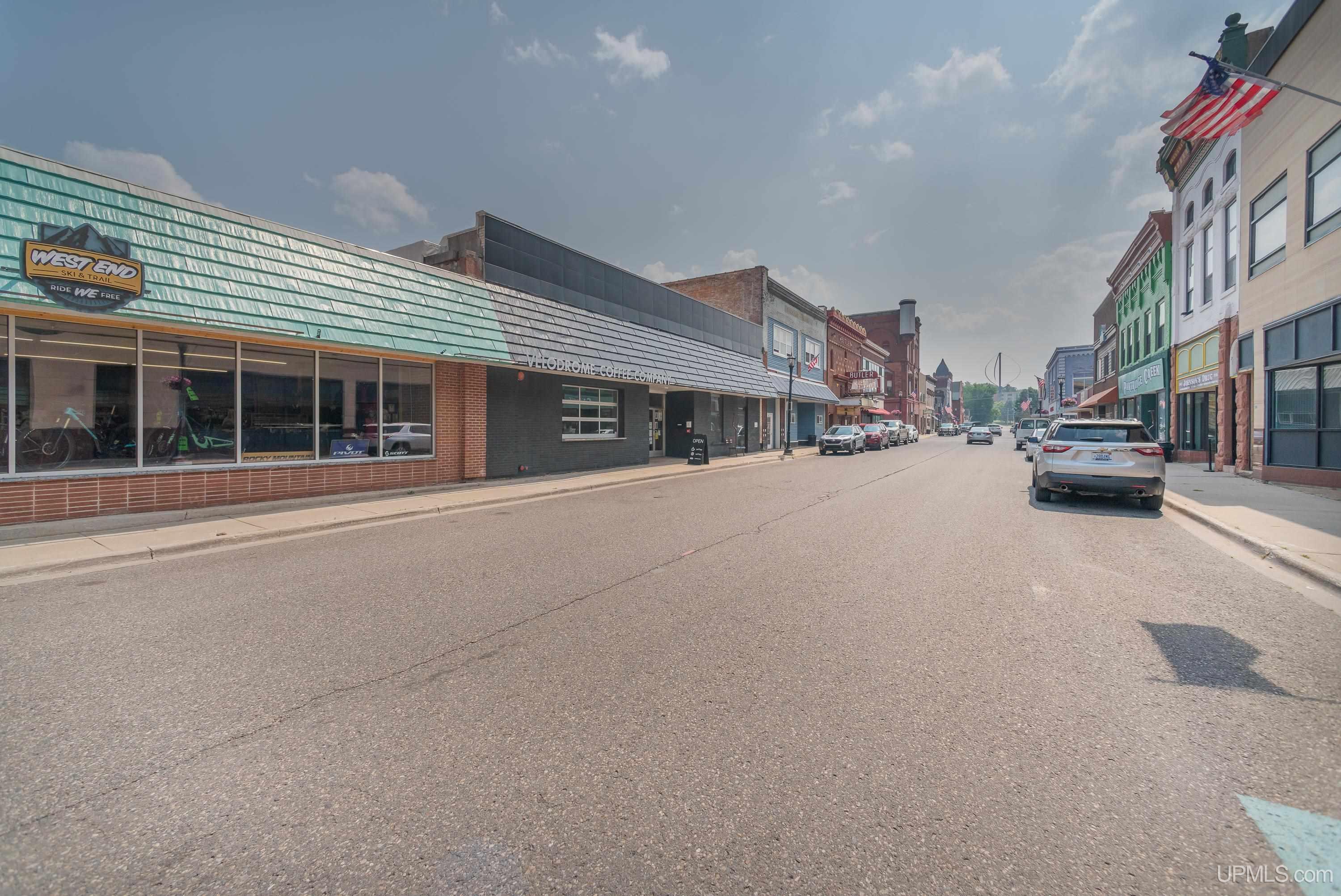 Great opportunity in Downtown Ishpeming for your budding business or dreams of commercial land-lording! Currently home to the popular Velodrome Coffee Company, this commercial building boasts two commercial spaces with tons of potential. with a total of 5,392 above ground sqft and an additional 4,766 below-ground dry storage space, the possibilities are endless. Velodrome's space accounts for 3,851 sqft of open workspace with a classy cafe up front, and prep space in the back, including a man door and a larger loading door for big deliveries. Their lease currently runs through the end of 2026. The space next door is a little over 1500sqft consisting of a storefront/display space up front, and then various spaces to the back of the building, leading to the back door of the public parking lot which can be used by owners or renters. Both units have restrooms and would be well suited for a variety of business endeavors. Open your new operation in the vacant space and let the existing lease cover a chunk of your costs! One member of the selling LLC is a licensed real estate agent in the state of Michigan.