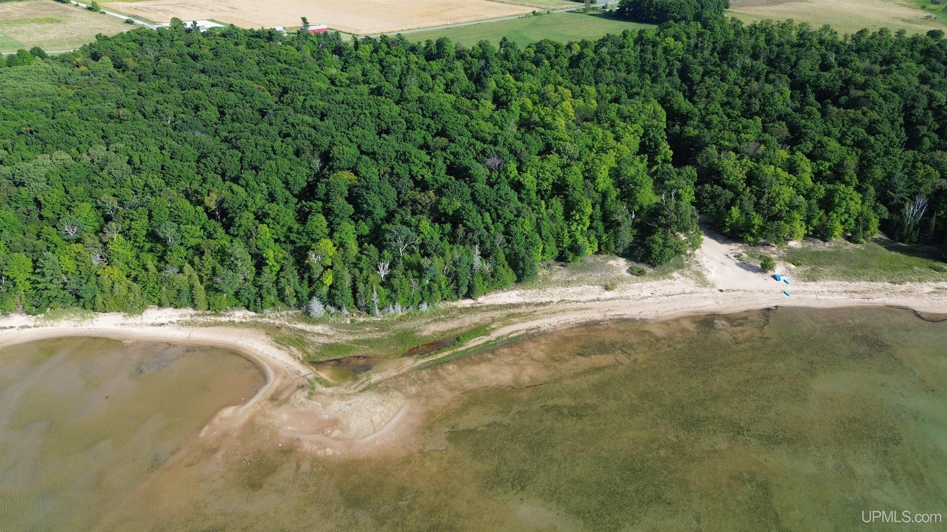 Located on the beautiful Garden Peninsula, this waterfront parcel offers 200 feet of pristine sandy shoreline along with a generous stretch of acreage: perfect for setting up a campsite, parking your RV, or building your dream home. With west facing exposure, you’ll enjoy breathtaking sunsets and endless views where soft sand meets the crystal-clear turquoise waters of Lake Michigan. Parcels of this size and quality do not come around often, and those seeking an exceptional slice of prime waterfront will be thrilled with this rare opportunity. While the sandy beach is the star of the show, the beautiful high ground acreage is covered in a mix of hardwoods and conifers, which provide an ideal spot for development or quiet enjoyment of natural beauty. This parcel is being split from a larger tract (pending final township/county approval). While electric has not yet been run, utility easements will be provided so the buyer can bring in service. An adjacent 200 foot parcel is also available, offering the opportunity to purchase both and create a remarkable 400 feet of frontage. Opportunities like this are rare, get in touch today! (This is Parcel B.)( Parcel A. MLS# is 50185632)