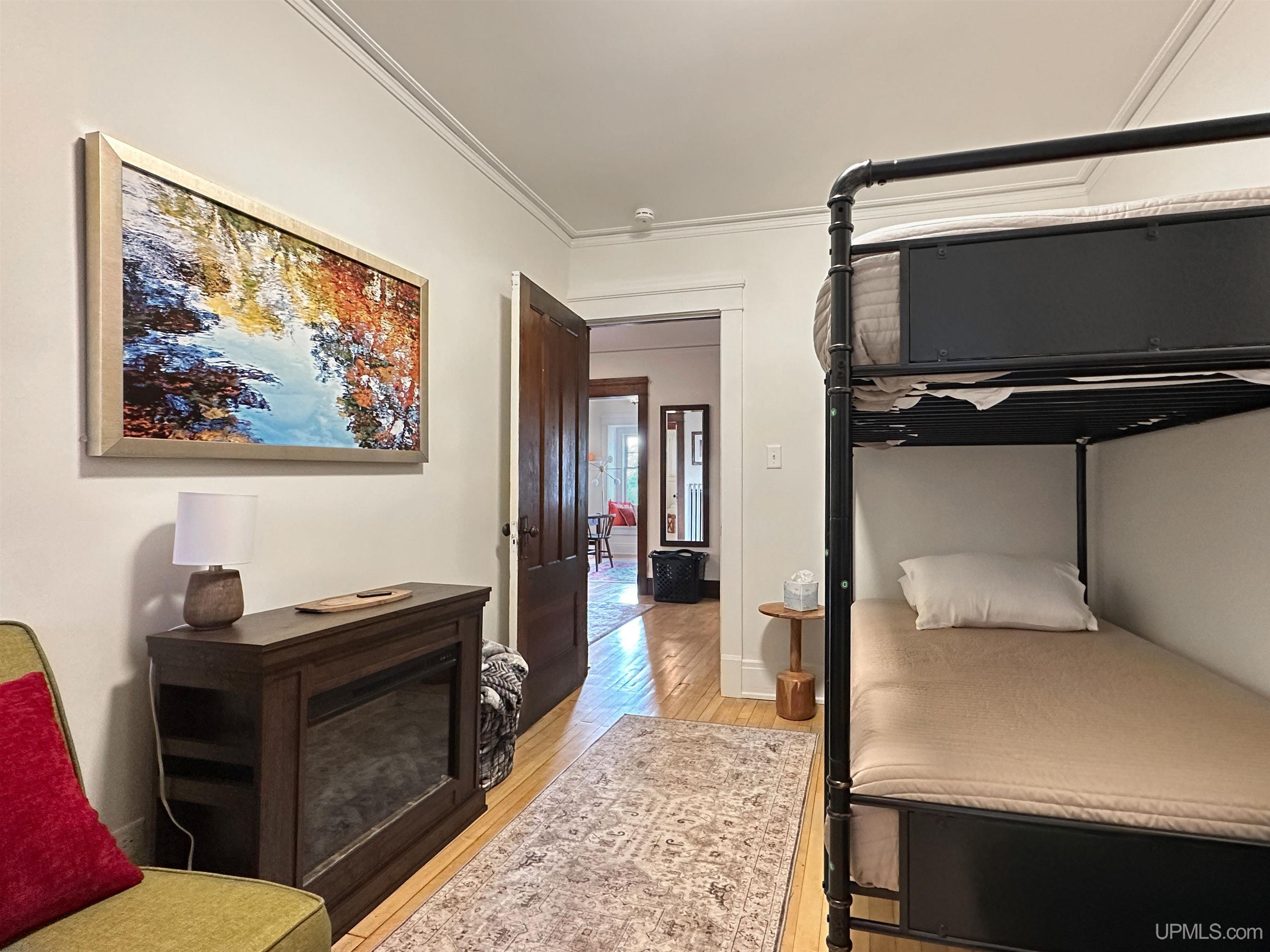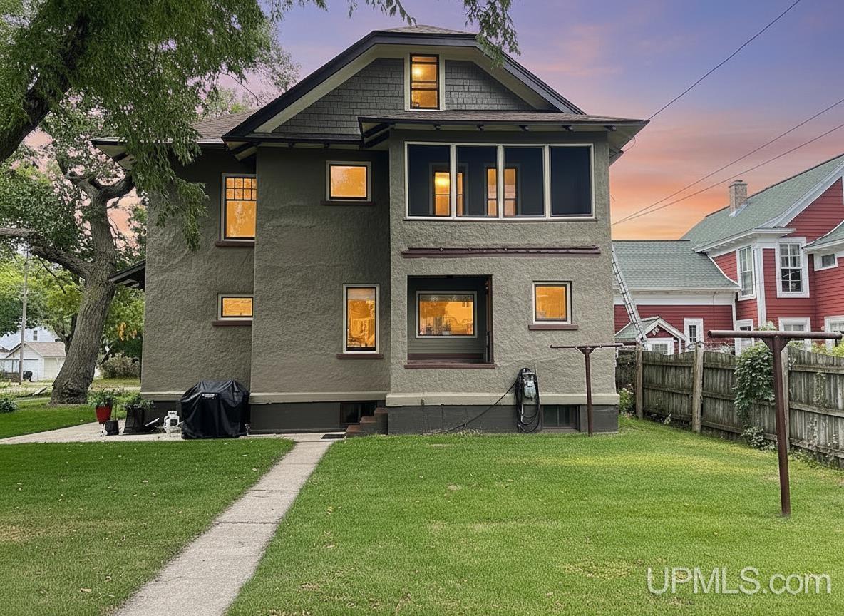 CRAFTSMAN STYLE HOME, HISTORIC BEAUTY WITH MODERN UPDATES! This stunning home has been thoughtfully updated while preserving its original charm. Featuring unpainted oak built-ins, rich trim, coffered ceilings, beveled leaded-glass windows, hardwood floors, and the original gas-fired tile fireplace surround, this home is truly one of a kind. The kitchen is modernized with quartz countertops, while the layout offers 4 upstairs bedrooms and a full bath, plus a main-level half bath. A sitting room could easily become a main-floor bedroom. Unique touches include a screened sleeping balcony off one bedroom and a large second-floor office. The unfinished 3rd floor is ready for your vision which could be ideal for a luxury primary suite, guest quarters, or a game room. A clean, freshly painted basement offers even more potential living space. Recent upgrades include a 2023 roof with copper valleys and drip edges. The home is well insulated, with average heating costs approximately $138 per month. Parking is convenient with a detached garage plus additional spaces. Located in the Escanaba Historic District and just a short walk to Ludington Park, the marina, and a gorgeous sandy beaches. The owners currently operated as a NEW Airbnb. This a rare opportunity to own a historic treasure with modern comfort, income potential, and timeless appeal. CHECK out the video!!!
