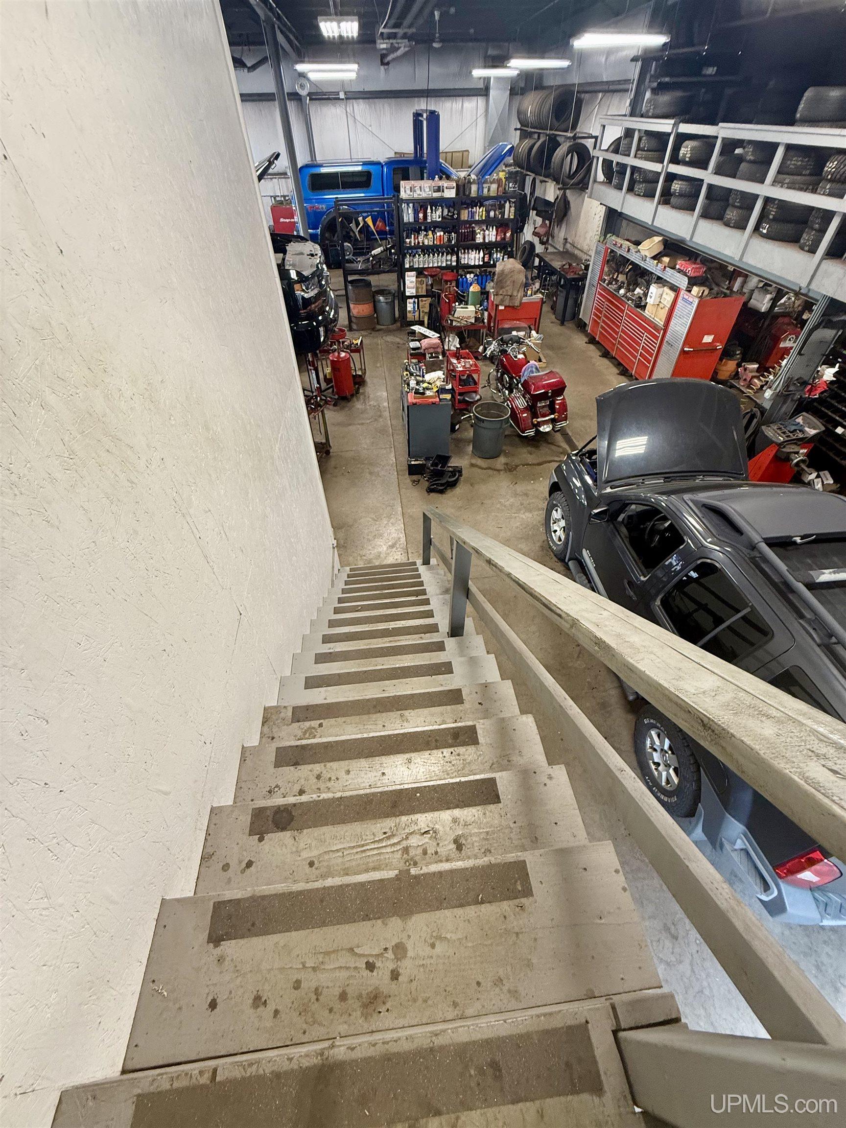 Turnkey Auto Service Facility & Business Opportunity. Built in 2014, this modern 3,519 sq. ft auto service facility is fully equipped and move-in ready. The property includes Office space: 408 sq. ft. with public restroom. Shop area: 3,111 sq. ft. with 6 service bays. Upper-level breakroom: 408 sq. ft (With refrigerator, sink, microwave, cabinets, dishware & tv). Employee bathroom which includes shower. Loft/Storage is appx. 572 sq. ft. with reinforced floor. Additional storage 15'x20' detached storage garage with employee parking area. Building features: Radiant-heat natural gas in shop and forced air natural gas furnace in office and breakroom area. Trench drains with oil separator, Air exchanger, 3 ceiling fans, emergency & exit lighting. ADA compliant, new energy-efficient lighting (2020), security camera system. Included Equipment & Inventory: (3) Hoists, tire changing machine, tire balancer, parts washer, air compressor, A/C repair equipment, brake lathe, drill press, shop press, engine hoist, cutting torch, arc welder, wire feed welder, miscellaneous supplies, inventory and security cameras. Additional business opportunity: The sale includes an established snow removal/ salt business with 20 regular customers. Package includes a 2015 Ford F-350 regular cab pickup truck with Boss 9'2" V plow and Boss salter. Other details: Customer records from the past 12 years are organized in QuickBooks. Energy-efficient, well maintained and fully operational facility. This property offers a rare chance to acquire a modern, well equipped auto service facility with additional income opportunities from snow removal services. Perfect for an owner-operator or expanding business. Located on Highway US 2 and the busiest intersection/traffic light in Iron Mountain with guaranteed visibility for your business.
