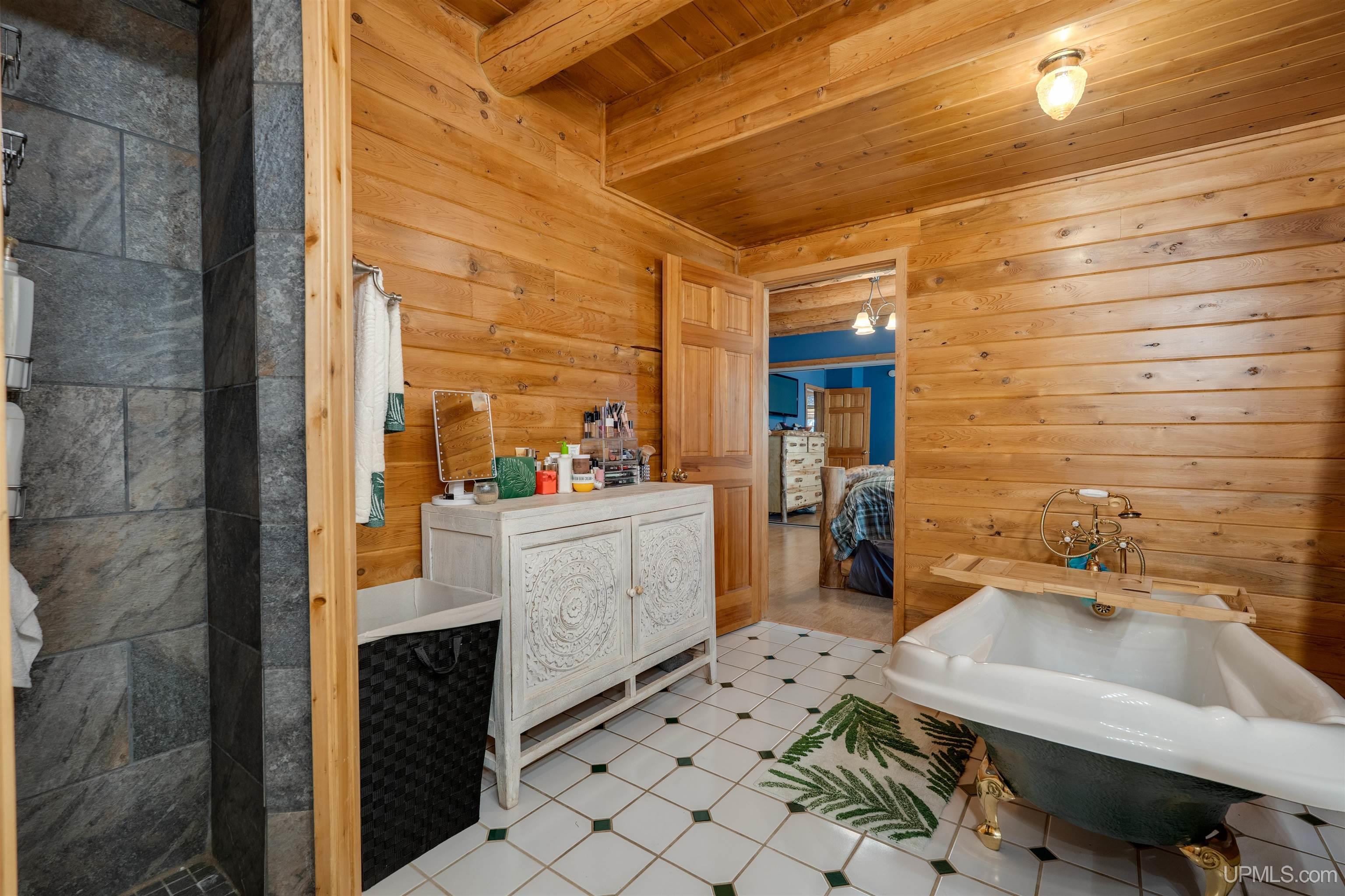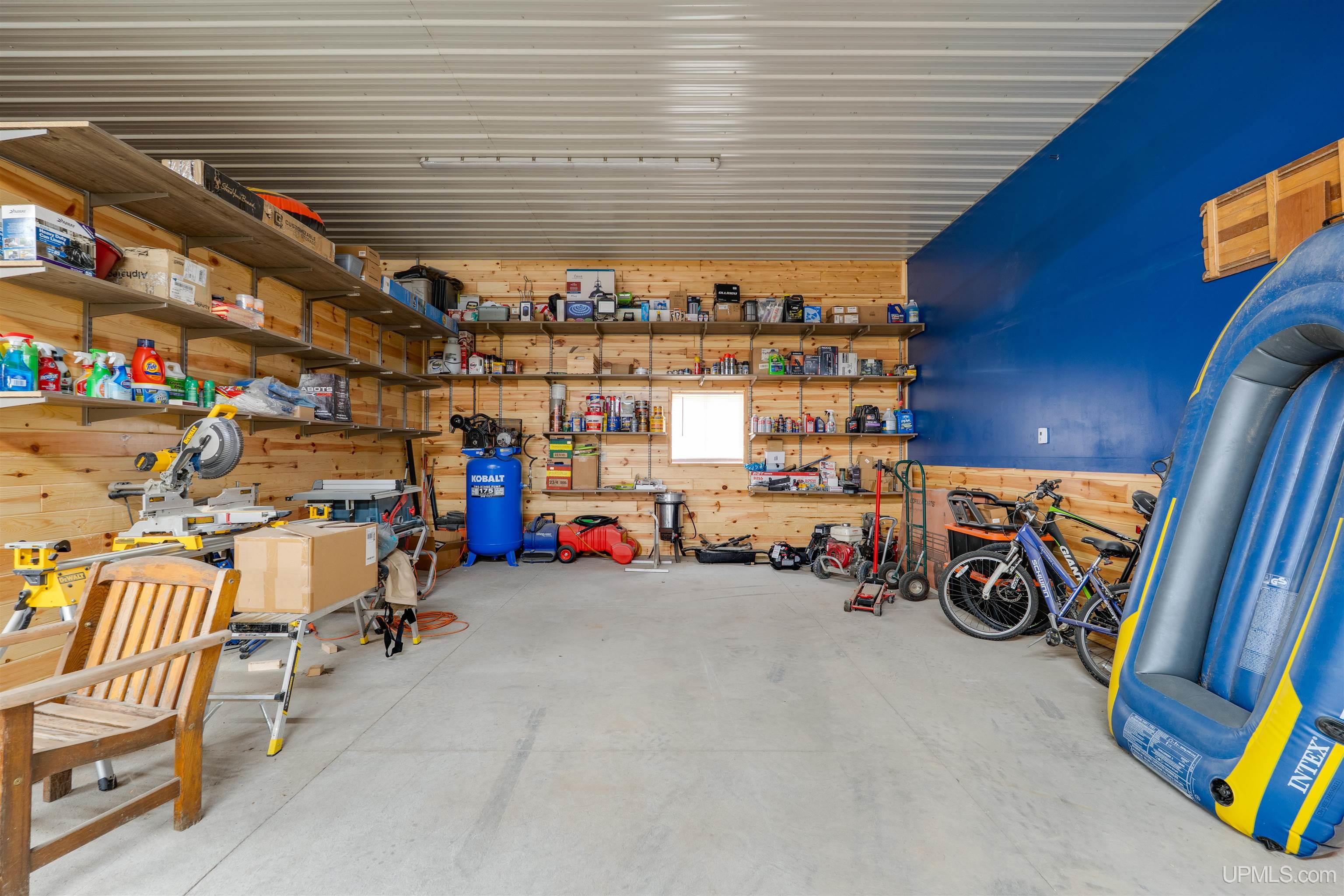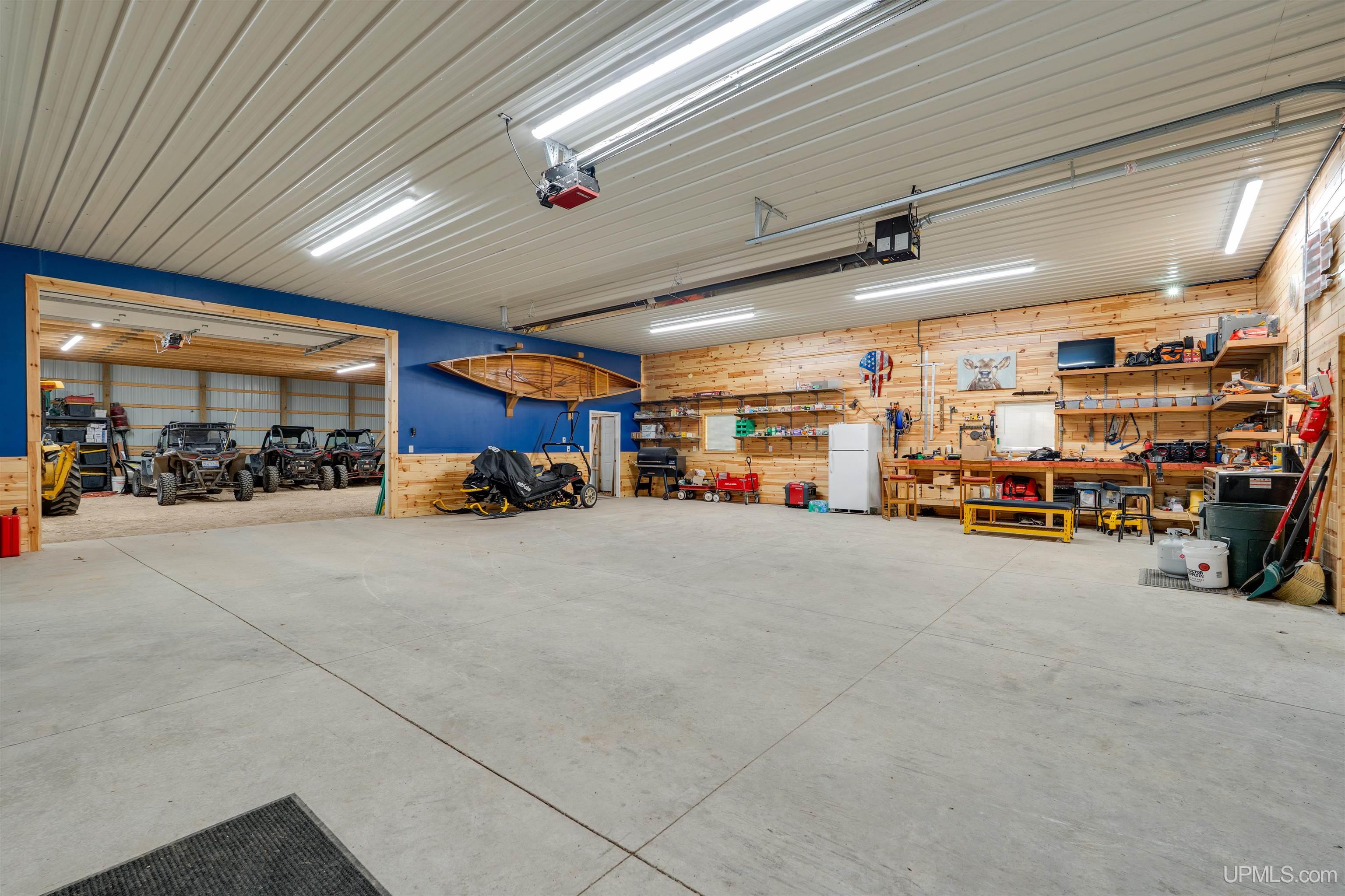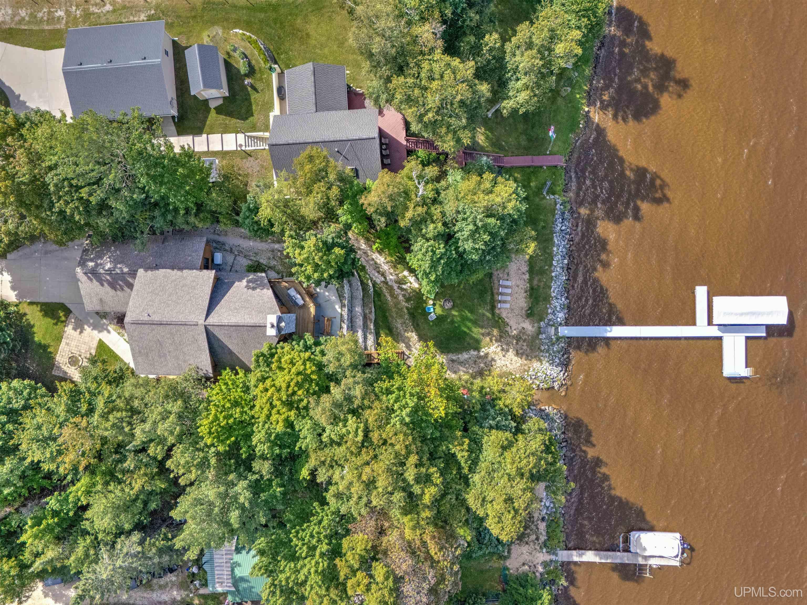 Exceptionally well maintained full log home with direct frontage on beautiful Indian Lake. Located on the east shore, where you’ll enjoy breathtaking sunsets and year-round comfort. This three-level home is thoughtfully designed and has lots of spaces over three levels. The finished walkout lower level features two bedrooms, a full bath, laundry, storage, and mechanical rooms. The main level offers an open-concept living, dining, and kitchen space highlighted by a massive fieldstone fireplace that rises from floor to the vaulted cedar tongue-and-groove ceilings, complemented by full log beams, a natural stone hearth, and a full log mantel. The main floor also includes the spacious primary suite with an oversized bath boasting a walk-in tile shower and soaking tub, abundant closet space, and a guest half bath. Upstairs, you’ll find two additional bedrooms, a full bath, and a large sitting area. Enjoy lake views from all three levels. The log construction, cedar accents, and drywall details blend for timeless charm throughout. Recent upgrades include the exterior logs cleaned, caulked and stained, new natural gas service and appliances, whole-house AC, Generac standby generator, water filtration system, shoreline restoration and stabilization, cement patio installation, and extensive landscaping. The attached two-car garage adds convenience, while included security cameras provide peace of mind. For some of you the best part is yet to come! Directly across the road, you’ll own additional lots featuring a remarkable 60’ x 80’ barn—half is fully finished with heat, electric, water, full bath, and its own well and septic, while the other half is cold storage with built-in organization. You can park all of the toys you want and have room to spare. Trail access is not far away to bring the snow machines and ATV’s to enjoy millions of acres and hundreds of miles of public land trails. 8,400 acre Indian Lake is located near Manistique, a welcoming Upper Peninsula community on Lake Michigan’s north shore. You’ll be close to shops, dining, schools, and hospital services while enjoying access to endless outdoor recreation. Appliances are included and furnishings are negotiable. This rare property offers the perfect blend of rustic charm, modern updates, and exceptional amenities—an ideal hub for year-round living in the U.P.