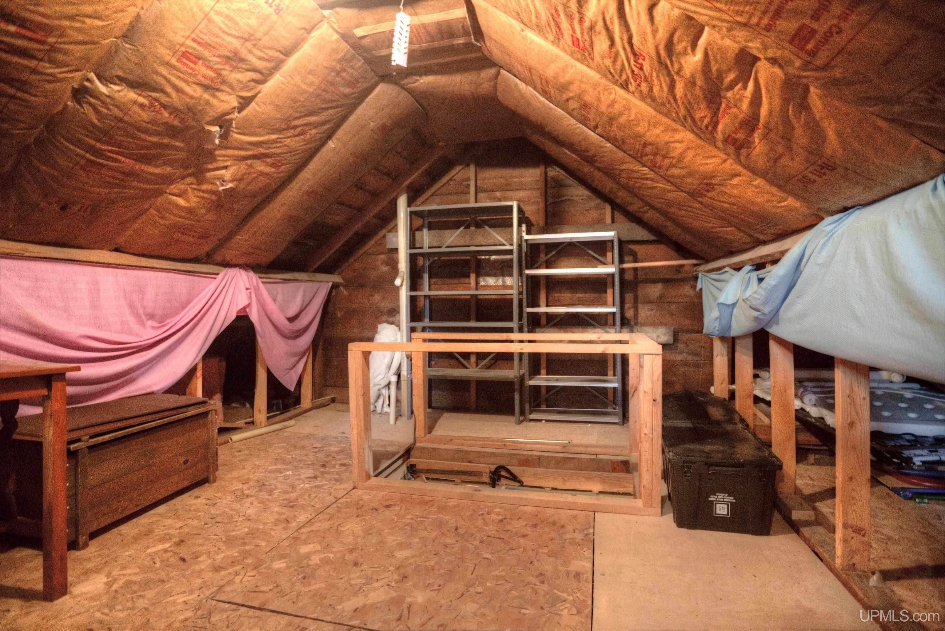 A perfect blend of old-world charm and modern convenience, this 3–4 bedroom, 3-bathroom home sits in the vibrant town of Iron Belt, with Trail 77 access right in the backyard and nearby dining and entertainment options that reflect the community’s rich history and renewed energy. The home’s welcoming curb appeal features a covered front porch adorned with self-watering hanging plants, and a breezeway connecting the garage to the house, complete with storage and backyard access. Inside, the cozy living room offers a fireplace, built-in bookshelves, and an entertainment center. The eat-in kitchen provides ample storage, a walk-in pantry with full-size pull-out cabinetry, and newer appliances including a stove, refrigerator, dishwasher, microwave, trash compactor, washer, and dryer. A convenient first-floor laundry closet, a full bathroom with a new walk-in shower, and a small office with built-in cabinets enhance functionality. A spacious 16x16 family room doubles as a potential main-level bedroom and connects to a sunroom with access to the covered deck and a beautifully landscaped backyard filled with garden vignettes. Upstairs, a charming library with built-in shelving and a walk-in closet leads to the attic. Two additional bedrooms feature generous closets and share a bathroom with double sinks, a soaking tub, and a separate shower. The expansive primary suite feels like a retreat, boasting a private bathroom with granite double vanities and a large walk-in shower, a secure gun safe room, a spacious sitting area or private living room, a massive walk-in closet, and access to one of two walk-up attics—ideal for future finishing. The property’s unique history includes two basements: one from the original 1890s timber log home and another from the 1990s addition. Utilities include two propane forced-air furnaces, one with central air, and an auxiliary wood-burning forced-air furnace. A workshop with walk-out access leads to a poured slab, ready for an additional garage. This home offers comfort, versatility, and character at every turn—ready to welcome its next chapter.