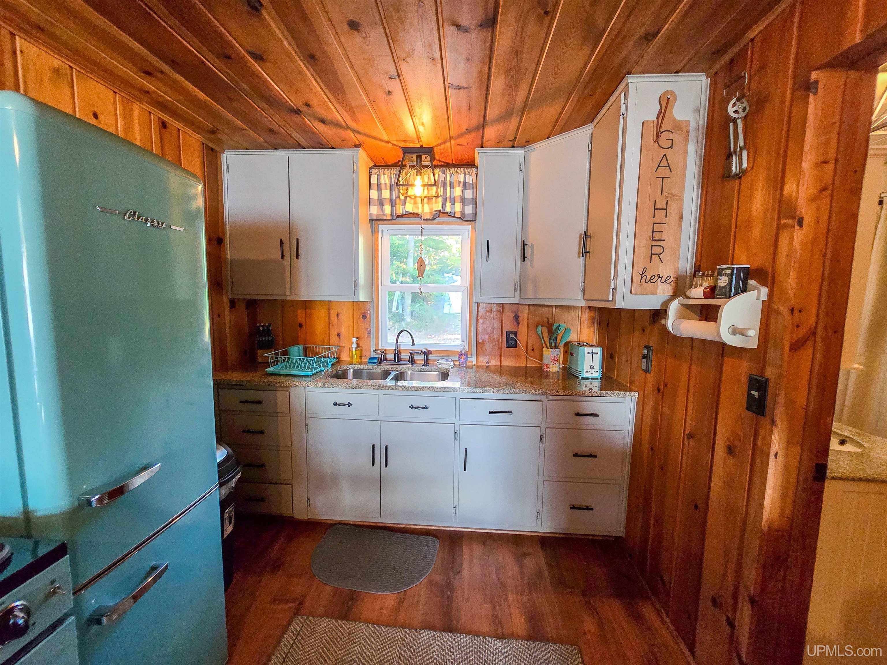 Great hunting cabin and or cabin on the lake near the Hiawatha National Forest. This one bedroom, one bath has had many updates in the past ten years including windows, roof and siding. It has a sun room as you walk in and you can store your outer gear from hitting the nearby trails all day or sit and watch the lake. You can keep your toys in the two sheds on the property. Pole Creek Lake is an 89 acre lake with a public boat launch. You can fish for bullhead, largemouth bass, perch, northern pike, crappie, bream/bluegill and pumpkinseed sunfish here. Make this your recreation or relaxation base camp!!