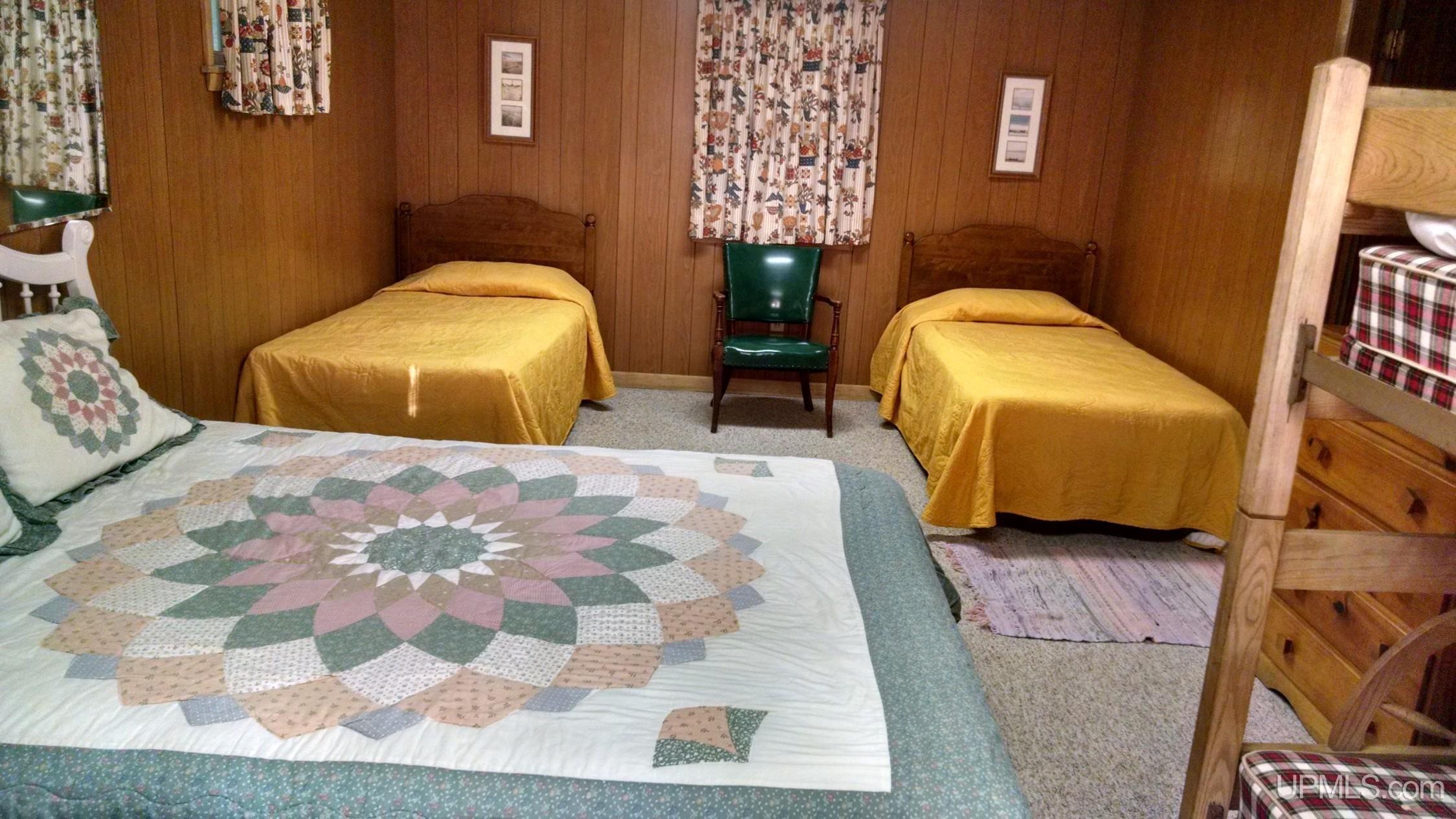 Rare waterfront parcel on Spread Eagle's Chain of Lakes! Encompassing nearly two full acres, it's situated across from Eagle Island and offers 111 ft of frontage level to the water's edge. There are two fully furnished rustic cabins as well as a boat dock already on site, but the value is in the land itself - just imagine this stunning setting as the backdrop for your dream home!