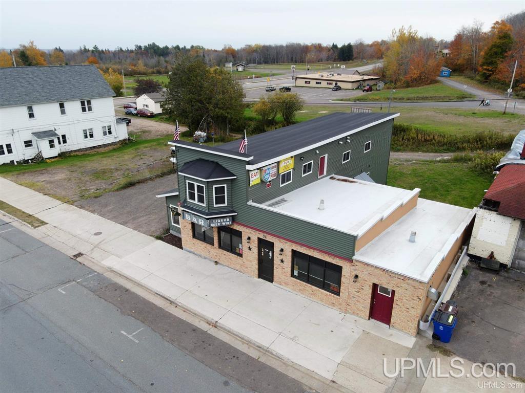The South Range Pub is an impeccable blend of the old-world charm and contemporary finishes. Pride of ownership is evident through-out. Updated kitchen as of November 2024 with TWO automatic self-contained deep fryers, plus updated electric. The 70+ seating facility has been rebuilt from the floor joists up, in the past few years. Guests can enjoy a cold one, a pool table, darts. lottery, shuffleboard, TV's, etc. The kitchen is as clean as a whistle and serves up taste pizzas, burgers, gyros and more. The basement offers a lot of storage space, laundry and the evidence of existence of a tunned used during prohibition which no longer leads anywhere. On the 2nd floor is an impressive apartment with a sleek, contemporary kitchen, a breakfast bar and is open to the living and dining spaces. There are 3 bedrooms that may sleep up to 10 people as well as 2 full bathrooms. The property consists of 4 lots with ample parking on the street and some on the lot itself. LOCATED ON THE BILL NICHOLLS #3 TRAIL which makes it convenient for snowmobilers and ATV enthusiasts! There is signage on the back of the building which attracts the attention of customers. This property is YOUR chance at a flourishing, dual stream business that needs nothing other than your ambition to pursue the American Dream of owning your own business. The liquor license is included in the price BUT is subject to the State of Michigan approval. SELLERS MAY CONSIDER LEASING. NOTICE: All information believed accurate but not warranted. Buyer recommended to inspect & verify all aspects of the property & bares all risks for any inaccuracies including but not limited to estimated acreage, lot location/size, square footage, utilities(availability & costs associated). Real estate taxes are subject to change (possibly significant) & municipality reassessment after sale. Buyer should NOT assume that buyer?s tax bills will be similar to the seller?s current tax bills. Taxes are not zero.
