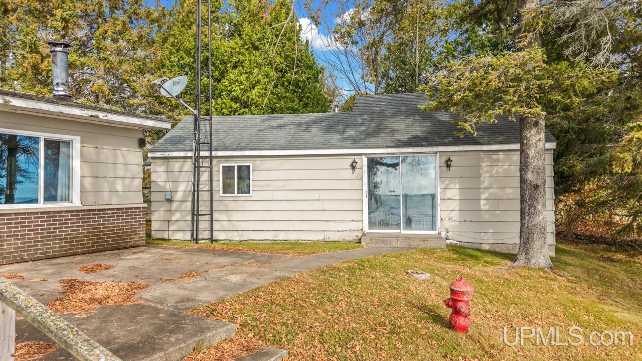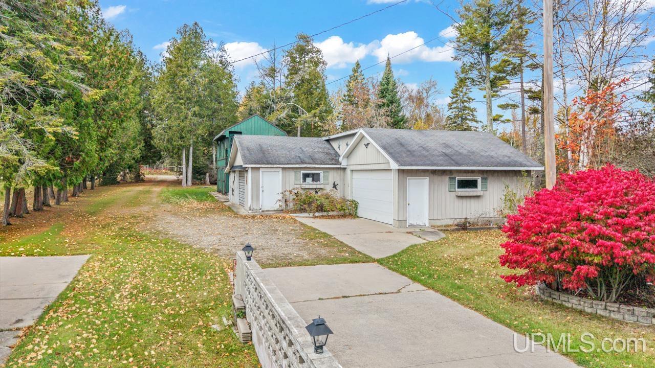 Dreaming of life on Lake Michigan? This single-story home offers peaceful lakefront living just 15 minutes south of Escanaba in Ford River Township. Enjoy beautiful views of the lake from the living room, the perfect place to start your morning or unwind at the end of the day. The main home features 2 bedrooms, 1 bath, a comfortable living room, a large entryway, and a pellet stove for added warmth. A separate guest home ready for your finishing touches that provides additional space with its own kitchen, bathroom, living area, and bedroom, ideal for family and friends to enjoy their own privacy. Outside, you’ll find a large detached garage, an additional storage outbuilding, and approximately 100 feet of beautiful Lake Michigan frontage with a sea wall for added shoreline protection. Whether you’re looking for a year-round home or a peaceful lakeside getaway, this property captures the best of Upper Peninsula waterfront living.