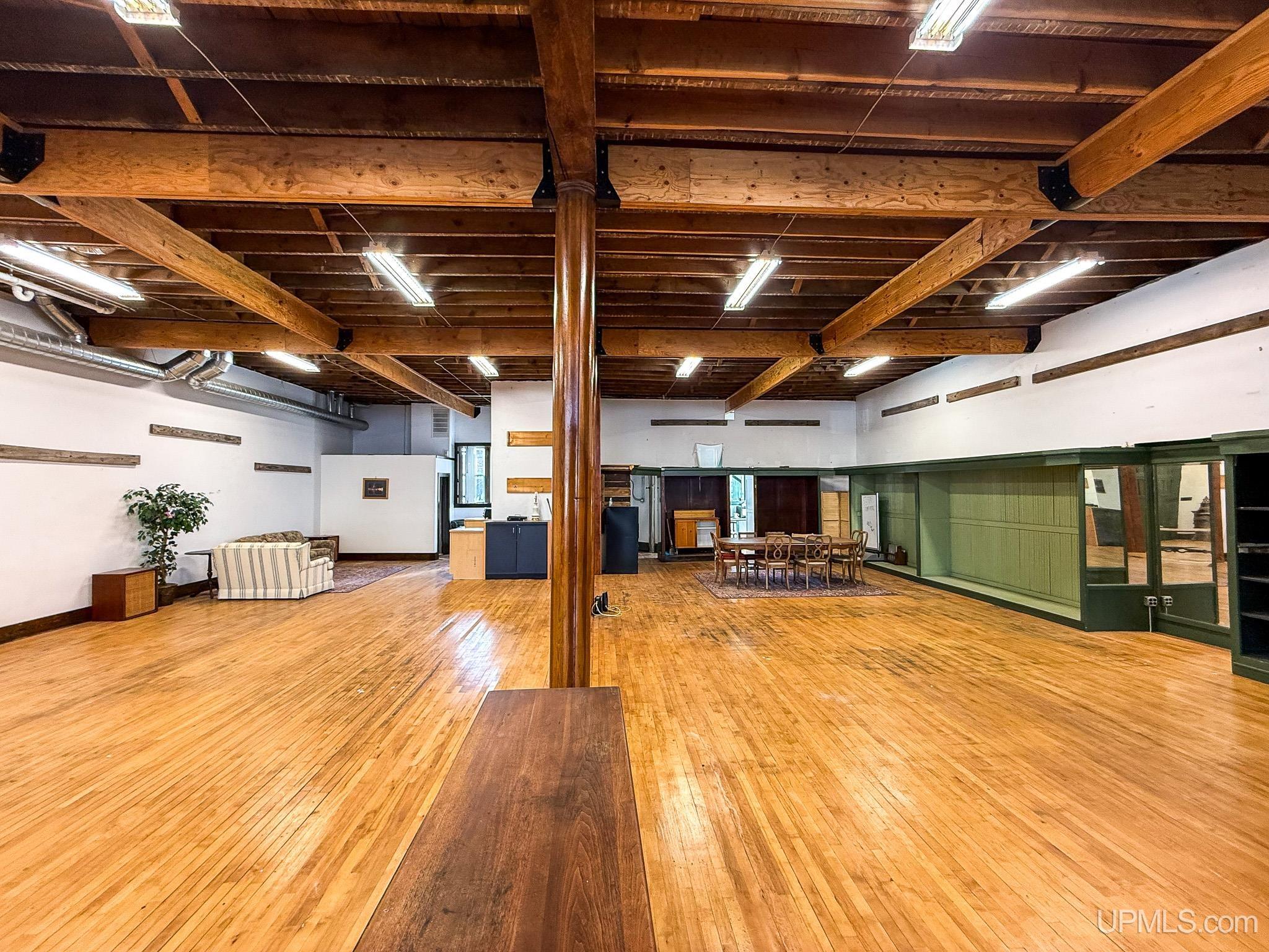 Get ready to fall in love with this large and unique investment property in Historic Downtown Ironwood! The main floor commercial space boasts hardwood floors throughout, beautiful exposed wood beams and posts, as well as 2 entrances and 4 front sidewalk window displays. There is a back storage area and utility closet that can be easily adapted to any business type. The extra large basement runs the length of the building and is perfect for any businesses needing room for inventory, storage, equipment or more! Above the commercial space are the residential living areas. When you enter the foyer, there are 2 individual apartments and 1 separate room that is being used as an owner's sleeping area, but could also serve as an office for the commercial space. There is a one bedroom, one bathroom apartment that was being used as a short and mid term style rental. Just off of that apartment there is a single room that was converted from the utility room into another sleeping area and could be added to the one bedroom apartment. This apartment also has access to the small exterior deck that holds the AC units and overlooks the back alleyway. The second apartment is a larger one bedroom, one bathroom with original windows that overlook Suffolk Street and was used as a long term rental. All of the upstairs areas have original woodwork around the trim, windows and a few of the original doors. With the right vision and the right buyer, this property could really be something special for the Downtown Area!