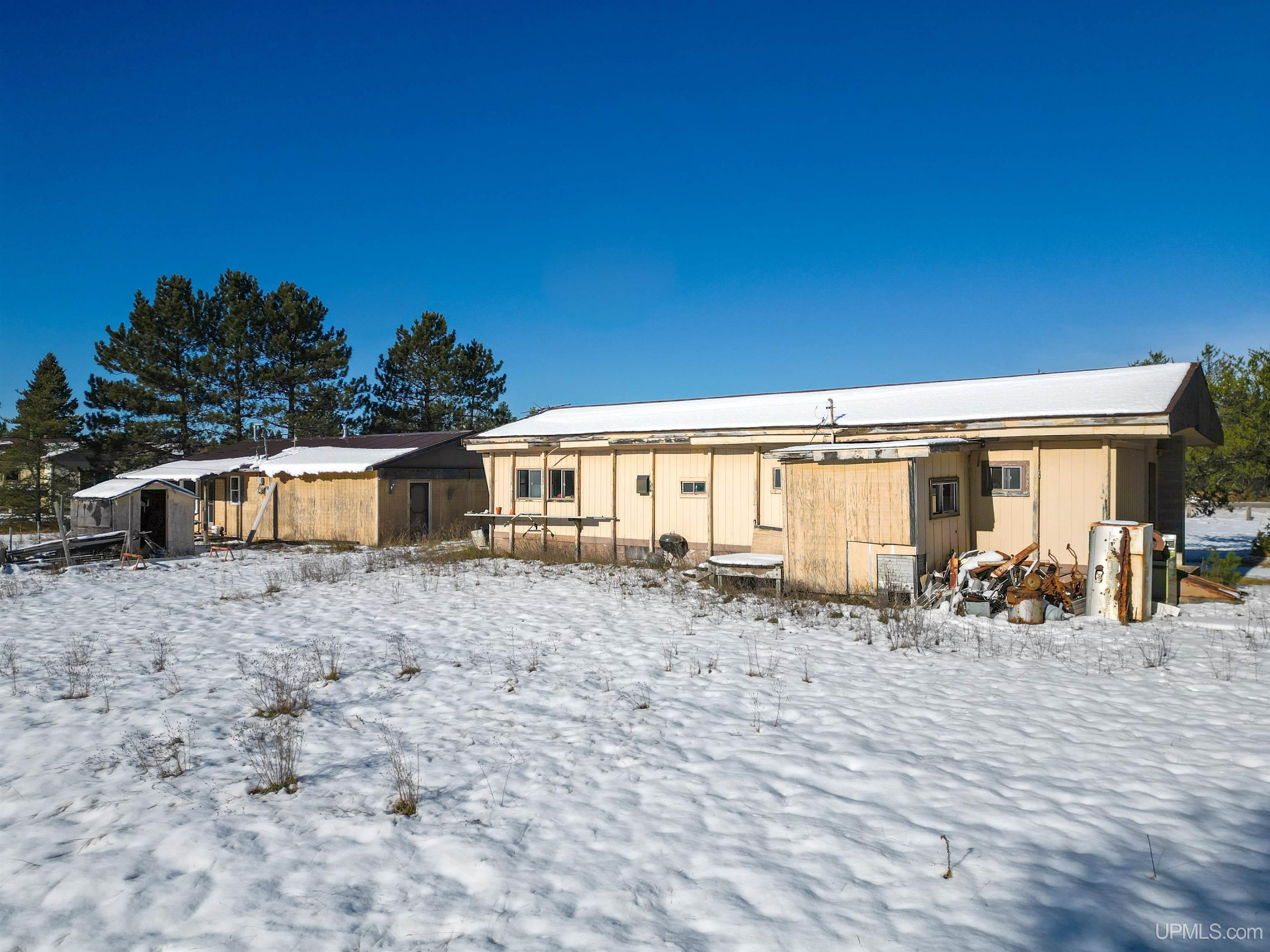 Set on approximately 1.5 acres with 173 feet of frontage along M-35, this Forsyth Township property offers an efficient home base in a highly convenient location just east of Gwinn. The main residence is a conventional 1 bedroom, 1 bath home with an easy-to-maintain footprint, partial basement (mechanical room only) and an attached 2-car heated garage, giving you comfortable living space plus room for vehicles, toys and a workshop without a lot of overhead. A secondary older single-wide mobile home with a conventional framed addition sits on the property as well – currently used as basic space, but it offers the next owner a chance to reimagine it as storage, hobby space, or a future project. The generous lot size give you elbow room and a more country feel while still being less than a mile from the M-553/M-35 intersection, Kwik Trip, and an easy drive to Marquette. If you’ve been looking for an economical home with garage, acreage, and some extra space to work with in an ideal, year-round accessible location, this one is worth a look.