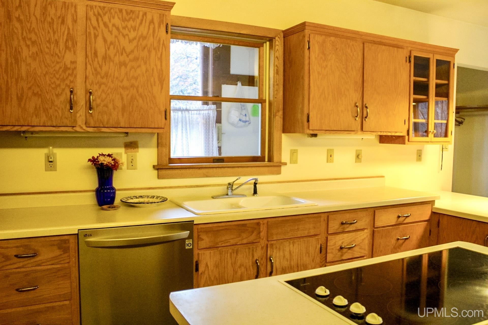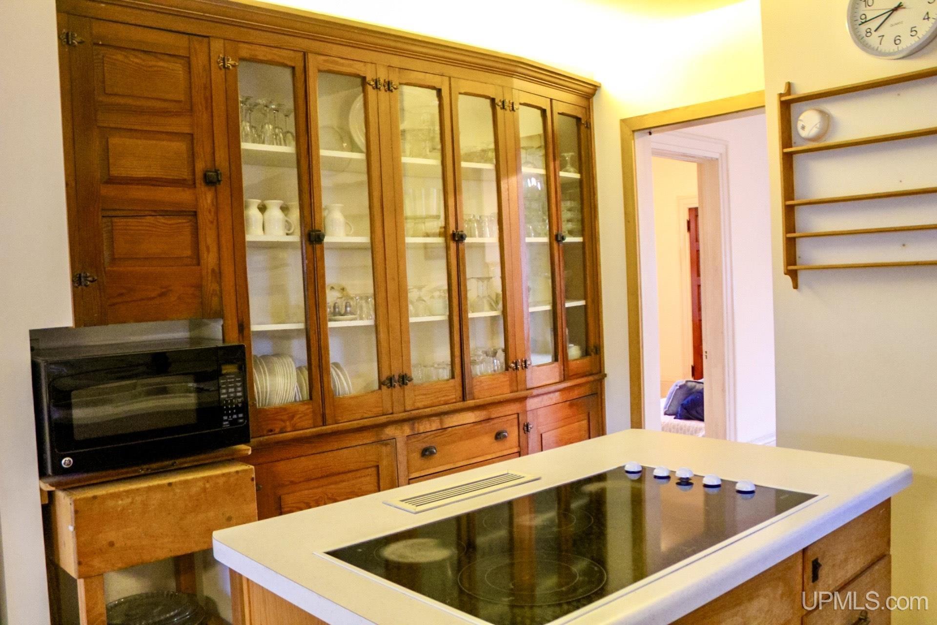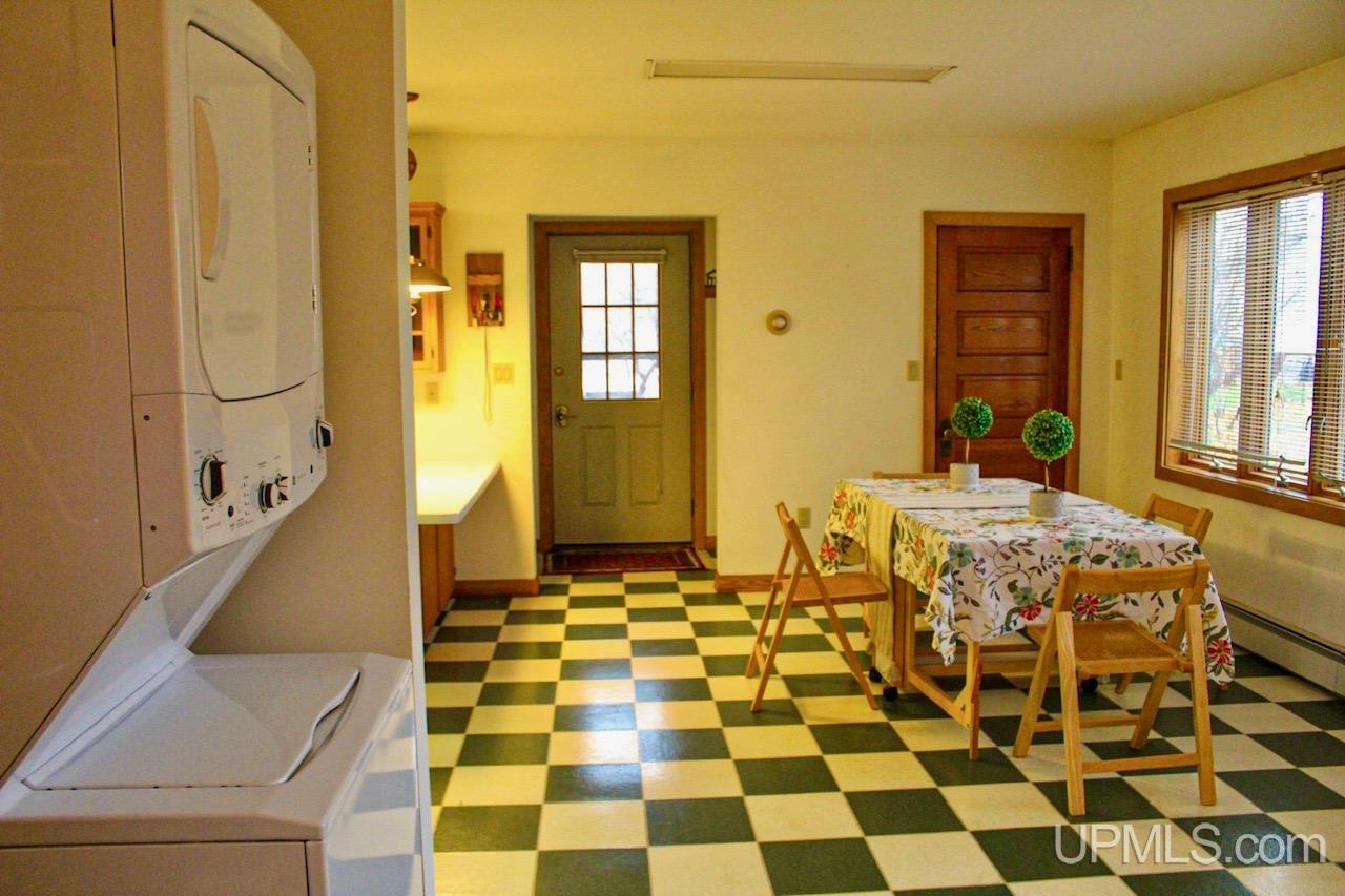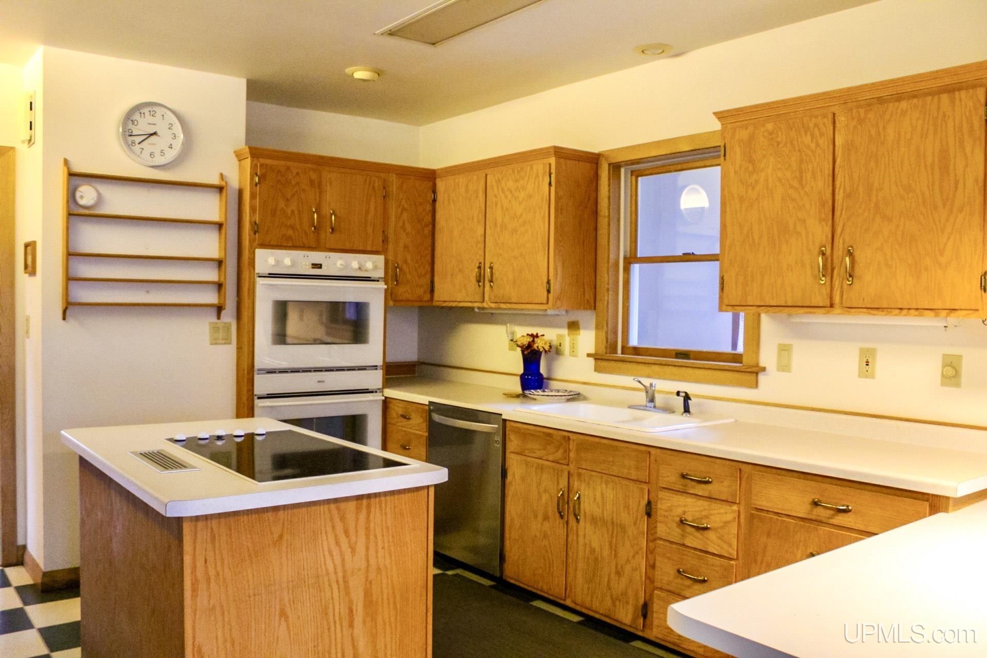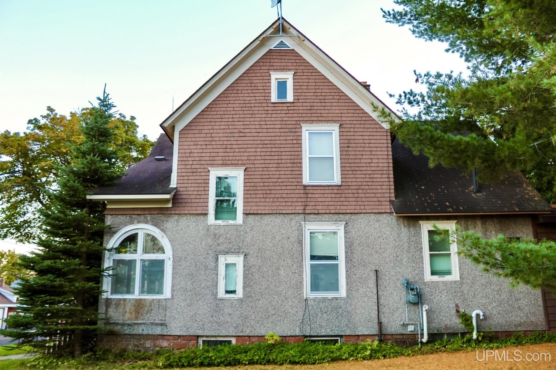 A charming home in the Village of Lake Linden! This centrally located home boasts beautiful features and a two-car garage. Warm and inviting front porch room leads into the large and bright living room. Kitchen has newer appliances and an antique cabinet from Calumet High School. Addition was recently put onto the back on the home. Main floor bedroom has an attached bathroom with a new shower. First floor also has a laundry unit and a bathroom near the dining room. Take the ornate staircase up to the second floor. Upper story has a full kitchen, bathroom, and two bedrooms. It has a laundry unit and plenty of storage as well. Newer two-car garage steps that lead towards the house. Upstairs could be used as a duplex or separate vacation rental with the separate entrance in the front of the house. Frontage on both Calumet Street and Maple Street. Located within walking distance to Lake Linden-Hubbell Schools and downtown. Check out this historic home at a nice price just in time for the holidays!