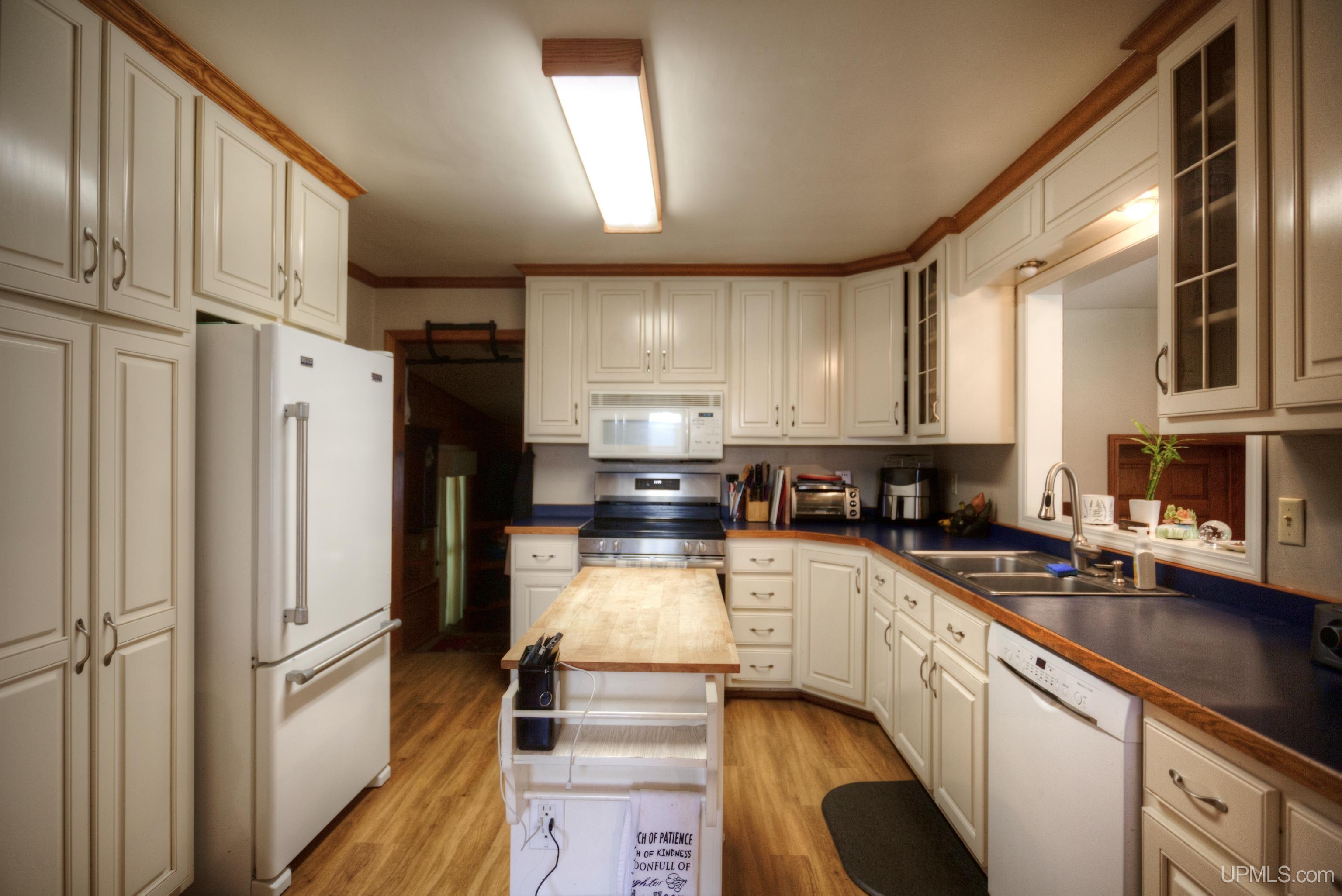 Thrive in the heart of Wisconsin’s Northwoods with this exceptional 1.05-acre property, ideally located on US-2 just three miles from the Hurley/Ironwood border. This offering includes both a spacious residence and an iconic commercial building, opening the door to endless personal and professional opportunities. The Residence-The beautiful 3–4 bedroom home welcomes you with a large foyer and walk-in “catch-all” closet to keep everyday clutter neatly tucked away. The massive living room features cathedral ceilings, French doors to the private patio, and plenty of open space for a large dining table-perfect for hosting family gatherings or entertaining guests. A full bathroom with tile floors and an acrylic shower sits just off the living area. Step up to the breakfast nook overlooking the dining area and great room. This cozy spot adjoins the kitchen, which is equipped with new appliances and offers a bright, functional workspace. A nearby library or den leads to two main-level bedrooms and another full bathroom. Just off the kitchen, step down into the warm and inviting family room with tongue-and-groove pine walls. From here, access the fully enclosed sun porch and the basement entrance. The basement includes a laundry area, a two-bench sauna, and a massive crawlspace with poured concrete floor and lighting—excellent for additional storage. Upstairs from the breakfast nook, you’ll find two more rooms ideal for use as bedrooms, an office, sitting room, or flexible living space. Outside, the property offers a 3–4 car garage with electricity and upper-level storage, plus a smaller shed for additional equipment or seasonal items. An outdoor wood burner services both the home and the commercial building for efficient heating. And this is only half the property! The Commercial Building-The other half features an iconic log building with timeless Northwoods character. Amenities include an open front porch, reception area, two large rooms, bar area, commercial kitchen, restrooms, cold storage, and a second basement—plus ample parking. This versatile space is ideal for an event center, retail shop, general store, or virtually any commercial venture you envision. The Kimball Inn Opportunity-Currently home to the renowned Kimball Inn, this location has delivered 30 years of exceptional dining and hospitality. If you dream of owning a beloved and successful restaurant, the current owner is willing to mentor the next proprietor, sharing the culinary expertise that has made this supper club a destination for both locals and travelers. The Kimball Inn package includes the business name, active website (with menus, specials, event dates, and takeout updates), equipment, customer base, phone access, and key recipes—making this a true turnkey business opportunity. Whether you’re seeking a thriving business, a spacious home, an event center, or a mix of all three, this property offers unmatched flexibility and potential in an unbeatable Northwoods location.