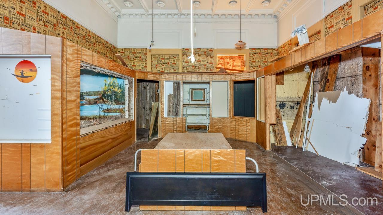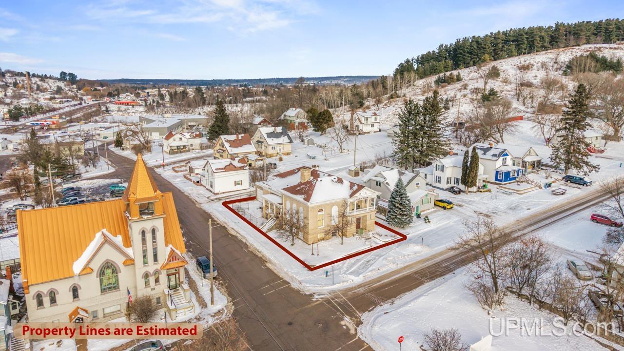 A rare and significant piece of local history, this 1901 former Andrew Carnegie Public Library?designed by architect James E. Clancy in the Neo-Classical Revival style?showcases grand classical columns and a striking symmetrical façade. The building served as a public library until 1971, later becoming the Menominee Range Museum, and was designated a Michigan State Historic Site in 1977. Encompassing nearly 6,000 square feet, the structure offers a raised basement, a second-story porch with balustrade, and an elevated corner lot framed by a low retaining wall. The interior retains remarkable character with coved ceilings featuring Greek stucco detailing, original oak woodwork, and maple floors beneath current coverings, along with two bathrooms, an attached garage, and newer furnaces. With three levels and abundant storage, the layout provides flexibility for reconfiguration. This centrally located downtown landmark presents a unique opportunity to build upon its rich and storied past.