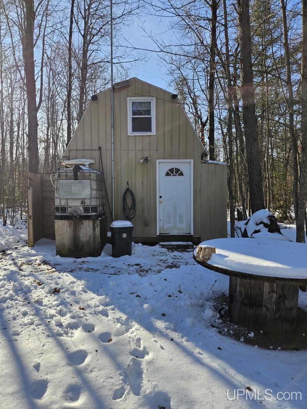 Your Northwoods adventure starts here! Nestled on 2.45 wooded acres, this charming off-grid cabin is the ideal home base for ATV riding, snowmobiling, and hunting. The cozy interior features a lofted sleeping area and a wood stove that keeps the space warm on even the coldest nights. Enjoy the independence of solar power along with a generator-ready hookup and converter for added convenience. The property includes a 275-gallon rainwater collection system with an outdoor shower, plus a well-appointed private outdoor privy. An extra-wide front door provides easy access for bringing in and storing your recreational machines and gear. If you’re seeking peace, privacy, and endless outdoor recreation, this Northwoods hideaway is ready to become your perfect retreat.