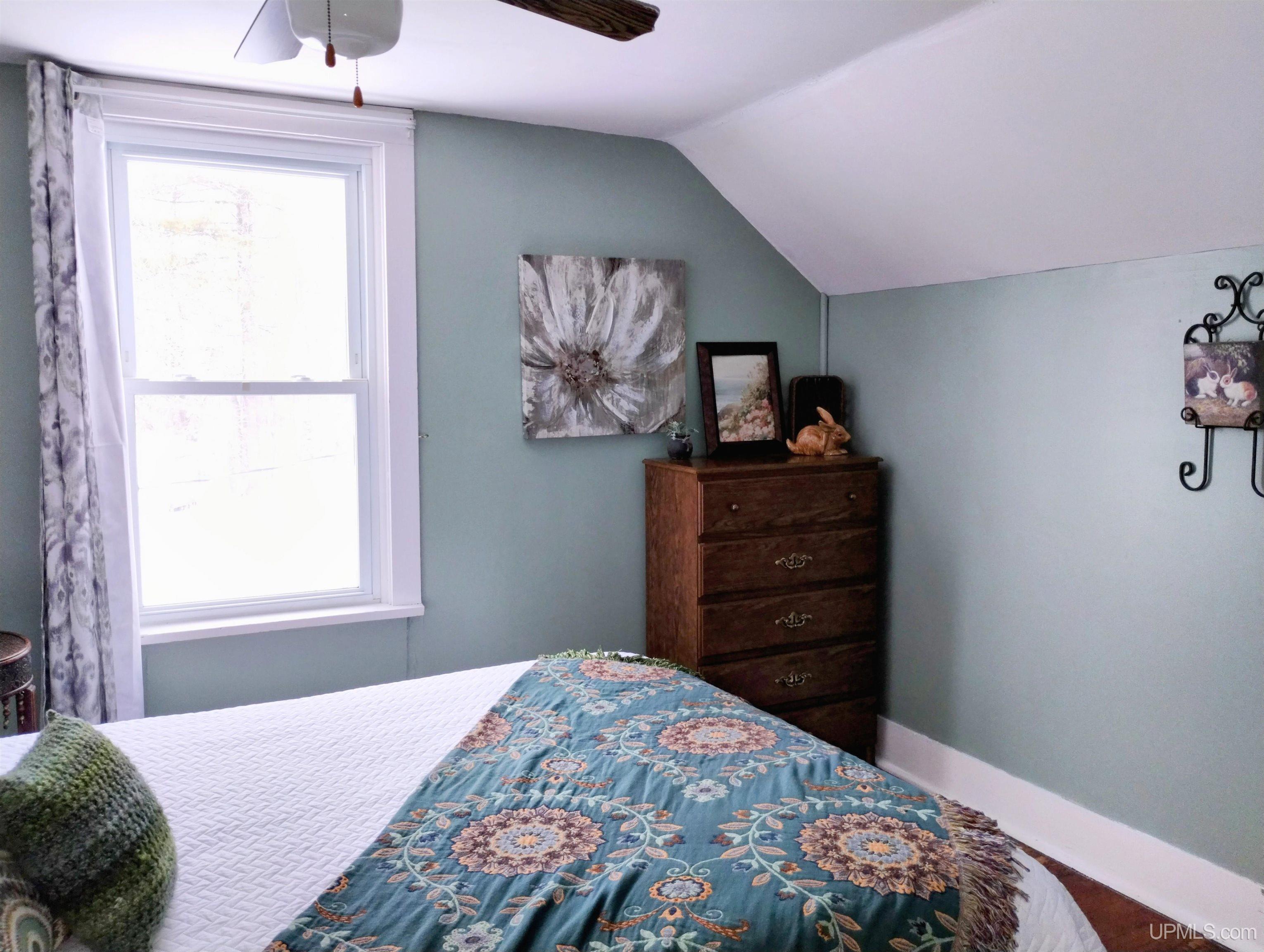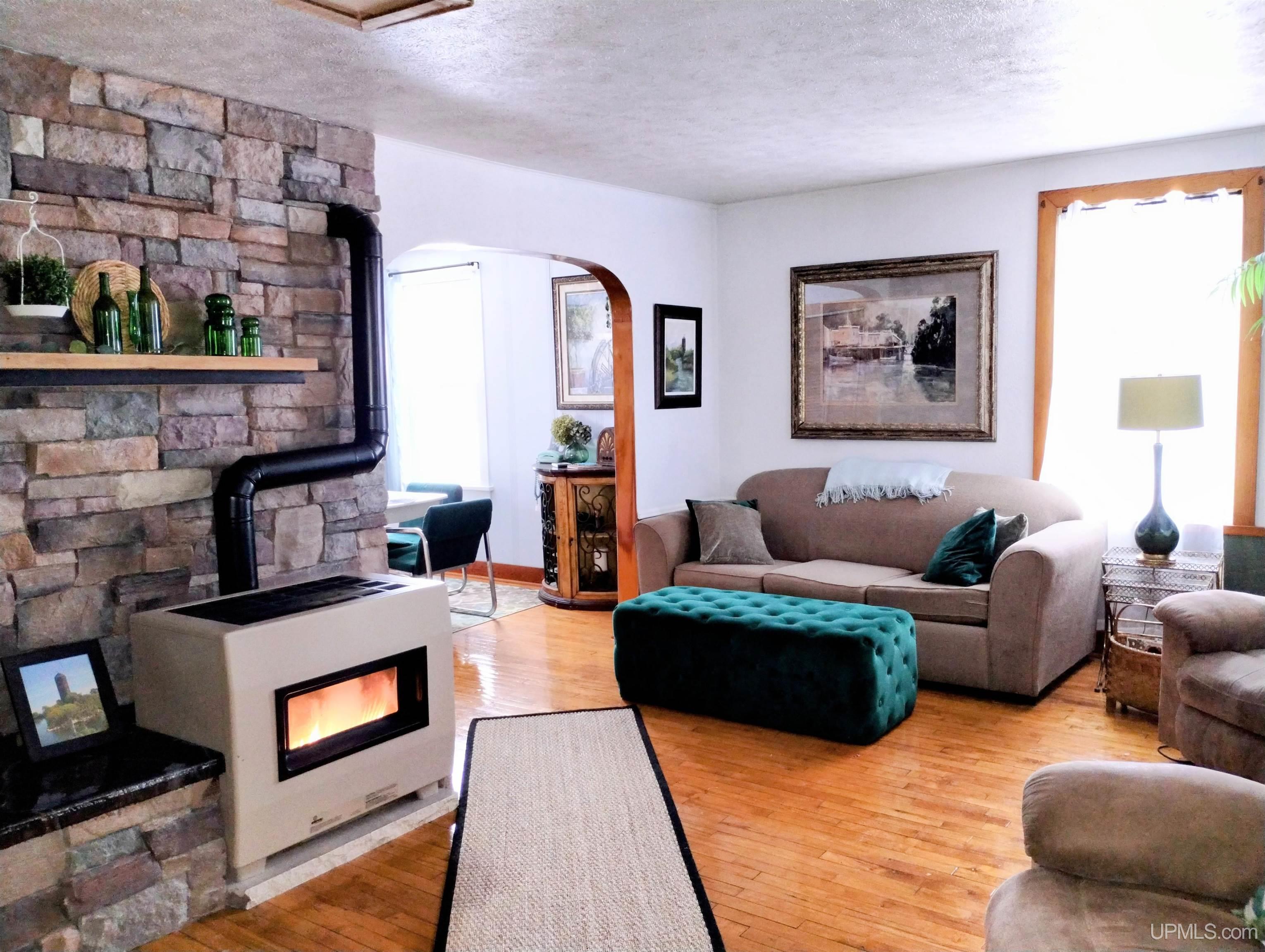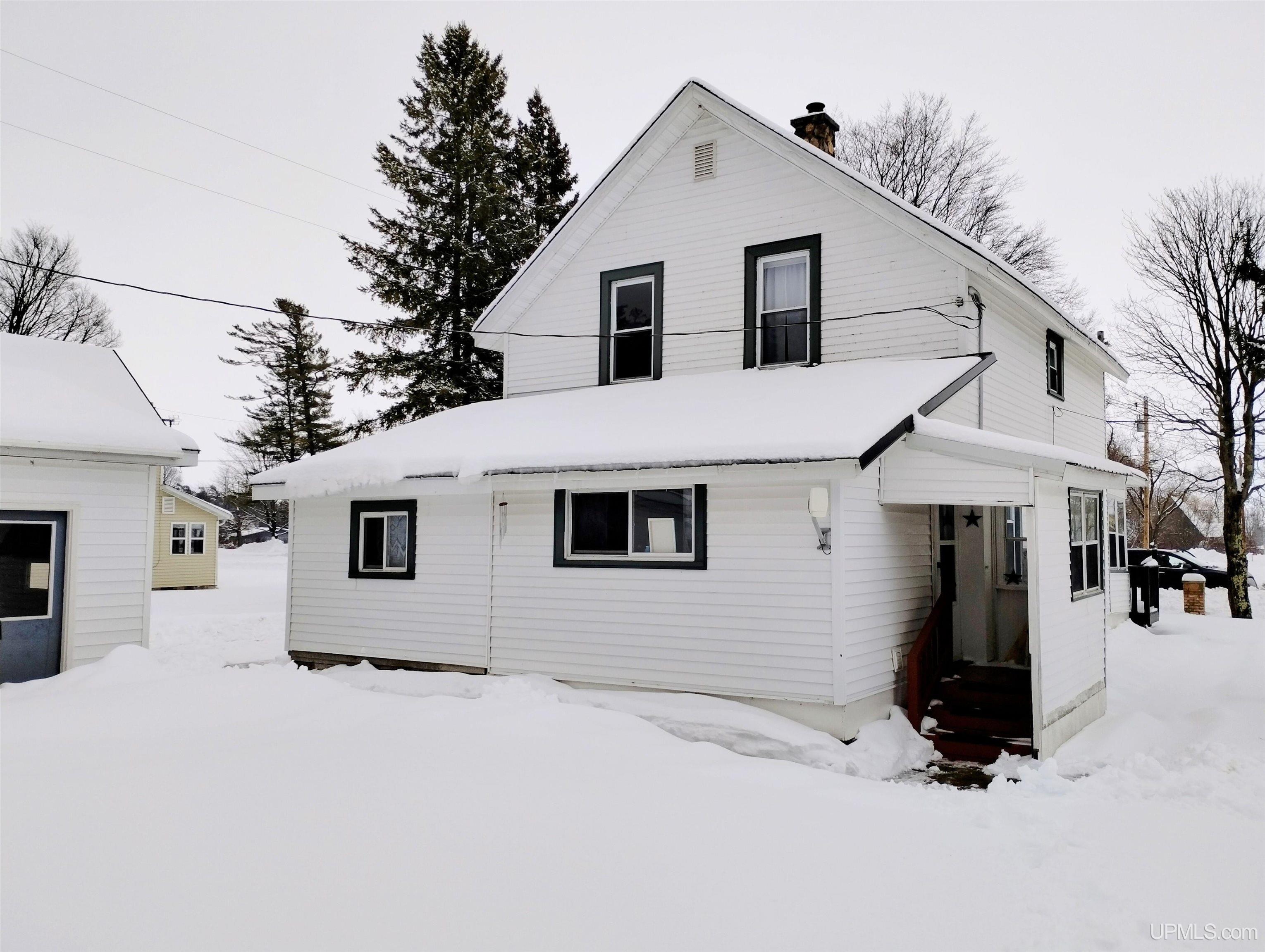 You're going to love this beautiful home from the moment you pull up the paved driveway and see the charming enclosed front porch! The kitchen features concrete countertops, tile backsplash and it opens to the formal dining room. An arched doorway leads you to the living room with its beautiful stone wall and seating area. The enclosed front porch is 6' x 22" and is the perfect spot for plants and your morning coffee. The main floor also has a 10' x 12' office. The main floor bath has an awesome shower with epoxy walls and pebble floors. Upstairs you will find a full bath and three good sized bedrooms. There are hardwood floors throughout the home with some Birdseye maple, the vinyl windows pop out for easy cleaning. The detached garage is 16' x 26' and the shed is 6' x 10'. This home is located close to the boat launch and the park on a quiet street in the heart of Nahma. Must be seen to be appreciated.