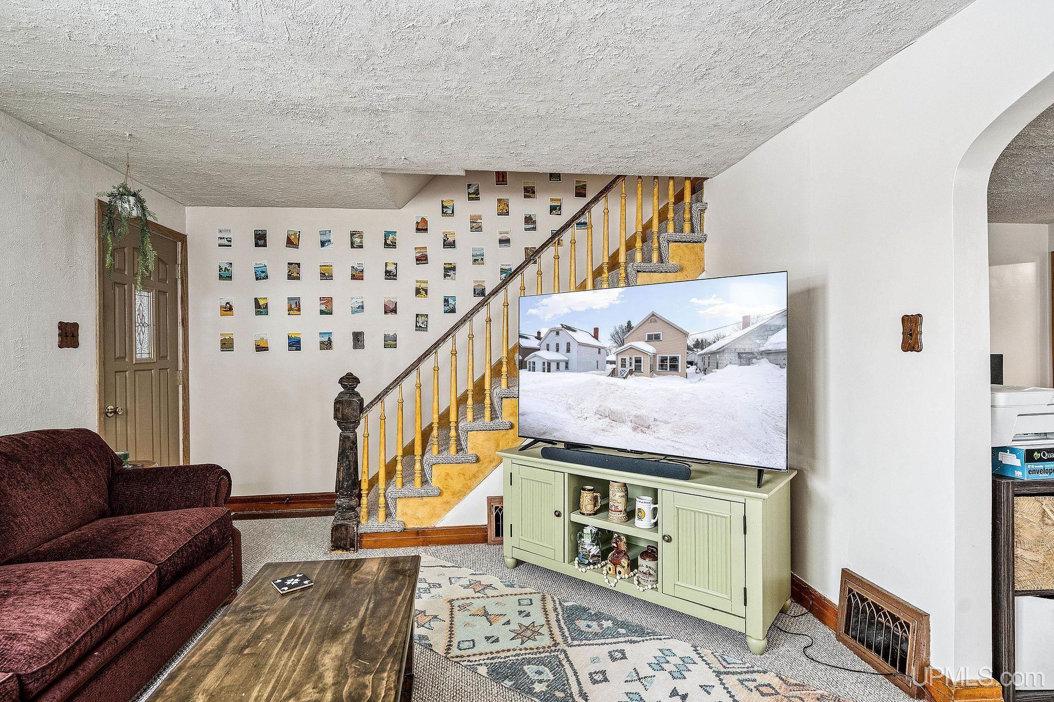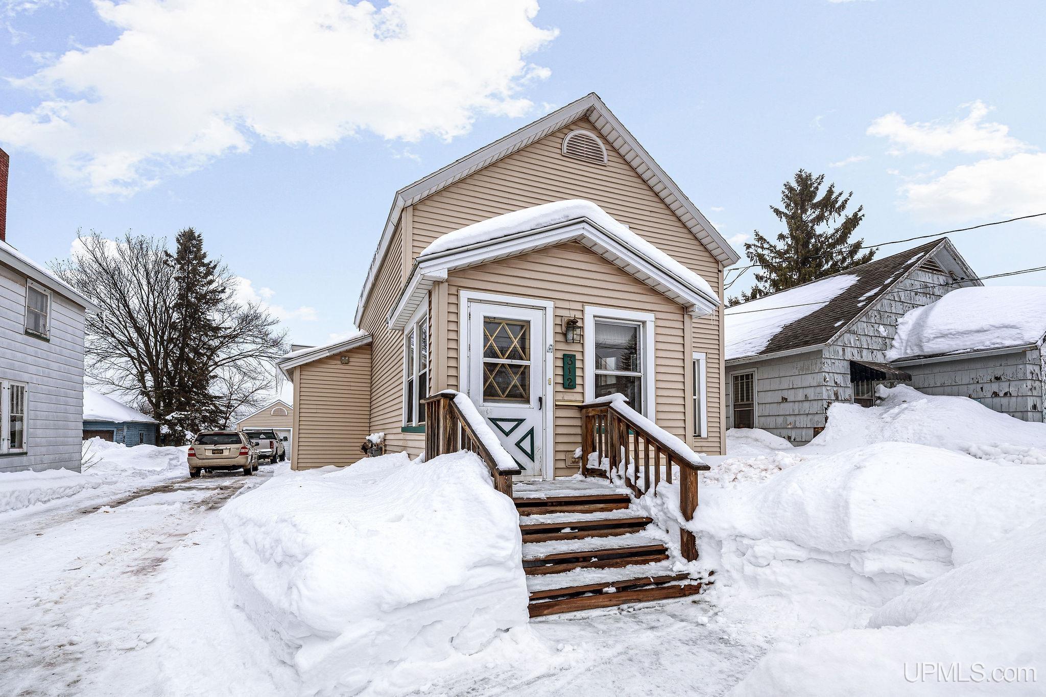 Spacious 1.5 story move in ready home in the city of Ishpeming. This home features two second floor large bedrooms and a full bath. The main floor has an updated kitchen with lots of storage in the light oak cabinetry, another full bath, large living and dining areas as well. The basement has tons of storage space, a large room that could be a non-conforming third bedroom or a large family room, a 3/4 bath off of the cedar electric sauna with stone pebble flooring. Central AC for those warmer Michigan days we can get. Nice back yard with storage shed and a one car detached garage with remote opener as well. Vinyl sided for low maintenance exterior; this home is ready for its next owner!