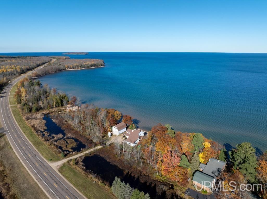 Experience the magic of Lake Superior living in this stunning home, where comfort, beauty, and serenity come together in every detail. With 4 spacious bedrooms and 2.5 baths, the main floor primary suite feels like a private retreat—complete with a large bath, generous walk in closet, and the rare ability to watch the Northern Lights and star filled skies right from your bed. The expansive living room, anchored by a cozy gas fireplace, is wrapped in windows that flood the space with natural light and frame unforgettable sunrise views over the lake. A pristine Schwalbach kitchen offers exceptional cabinetry, a charming hutch, and a dining area that overlooks the water. Convenience shines with main floor laundry, an attached garage, and a clean, usable basement equipped with a reverse osmosis system. Upstairs, three well sized bedrooms and a full bath provide comfort for family or guests—plus a secret bonus room perfect for a play space, private office, or workout area. Cathedral ceilings open the second floor to the main living area below, adding a sense of grandeur and connection. Outside, enjoy peace, a shoreline that shifts between sandy and rocky depending on Lake Superior’s mood, and an unbeatable location between Munising and Marquette. A full home generator ensures reliability, and the extra large pole building with upper level storage and oversized doors is ideal for boats, ATVs, or any outdoor enthusiast’s gear. This is more than a home—it’s a sanctuary on one of the most breathtaking lakes in the world.