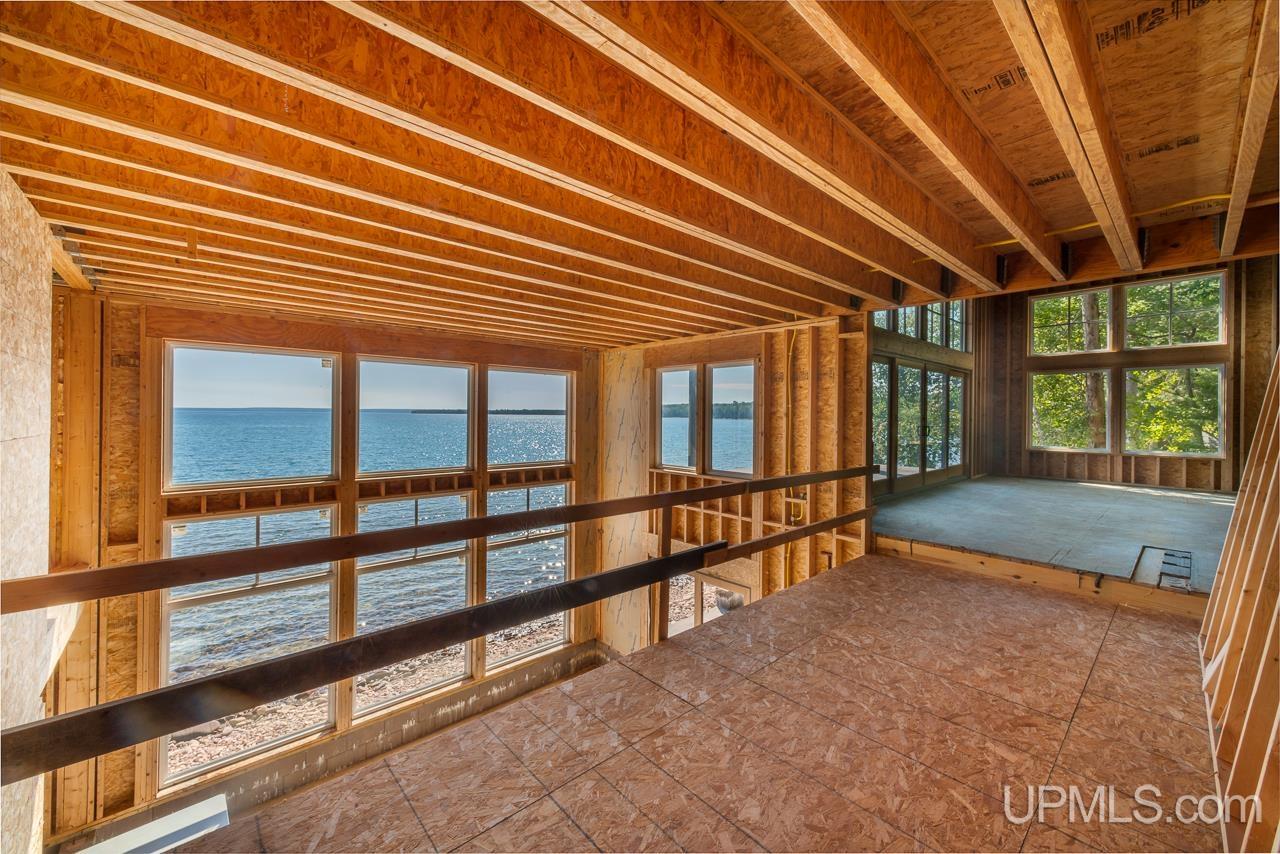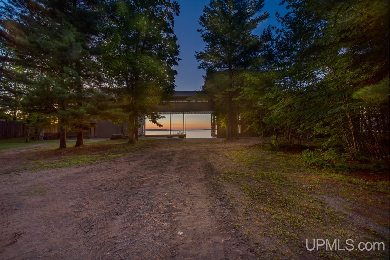 Buying a "Once in a Lifetime" property centers on what you can't change: view, location, and surrounding woods and waters. This 10,000 square foot estate capitalizes all of that and more with awe-inspiring panoramas of Au Train & Grand Islands from protected Shelter Bay on Lake Superior's South shore in Alger County. Towering 50 feet above the largest body of freshwater on the planet are the South Wing residence & the North Wing office/gallery. Imagine your walk to work with sunrise painting your path over the 52' skywalk connecting the 2 structures. Currently home to SISU Cycles--custom bicycle frame builder--office/gallery space stands 3 floors tall. Built in 2010 with meticulous attention to detail from the floating stairs to the vintage Hope's Windows and loft office. Architectural drawings to finish the 4-story residence--make it 5-story with a 16x16 cupola--included in Associated Documents. Let possibilities flow with wide-angle windows and balconies on every level to capture Superior's moods by day, and Northern Lights by night. Plans call for total 7 bedrooms/ 7 baths. Until the project is finished, live on site in the guest house. Originally built in 1945 but totally remodeled in 2010, the 2 bedroom/2 bath cottage has a host of custom touches from Sandstone fireplace and updated open kitchen to double shower and jet tub. Plenty of space for toys & tools with 32x40 3-car garage as well as 8x10 & 12x26 sheds. Your own private 20x70 boat launch installed in 2021 adjoins 31x26 cement patio beneath the Sky Walk. Outdoor space (decks & balconies) in the South Wing adds up to over 1300 square feet. Truly live the best of all worlds--Great as well as Inland Lakes--because at the end of the driveway is 266 acre Deer Lake. Located between Munising and Marquette, this property is a year round Mecca for fishing as well as world-class hiking, biking, kayaking, skiing, ice climbing and snowmobiling. We are truly blessed with 5 Great Lakes but only ONE named Superior.