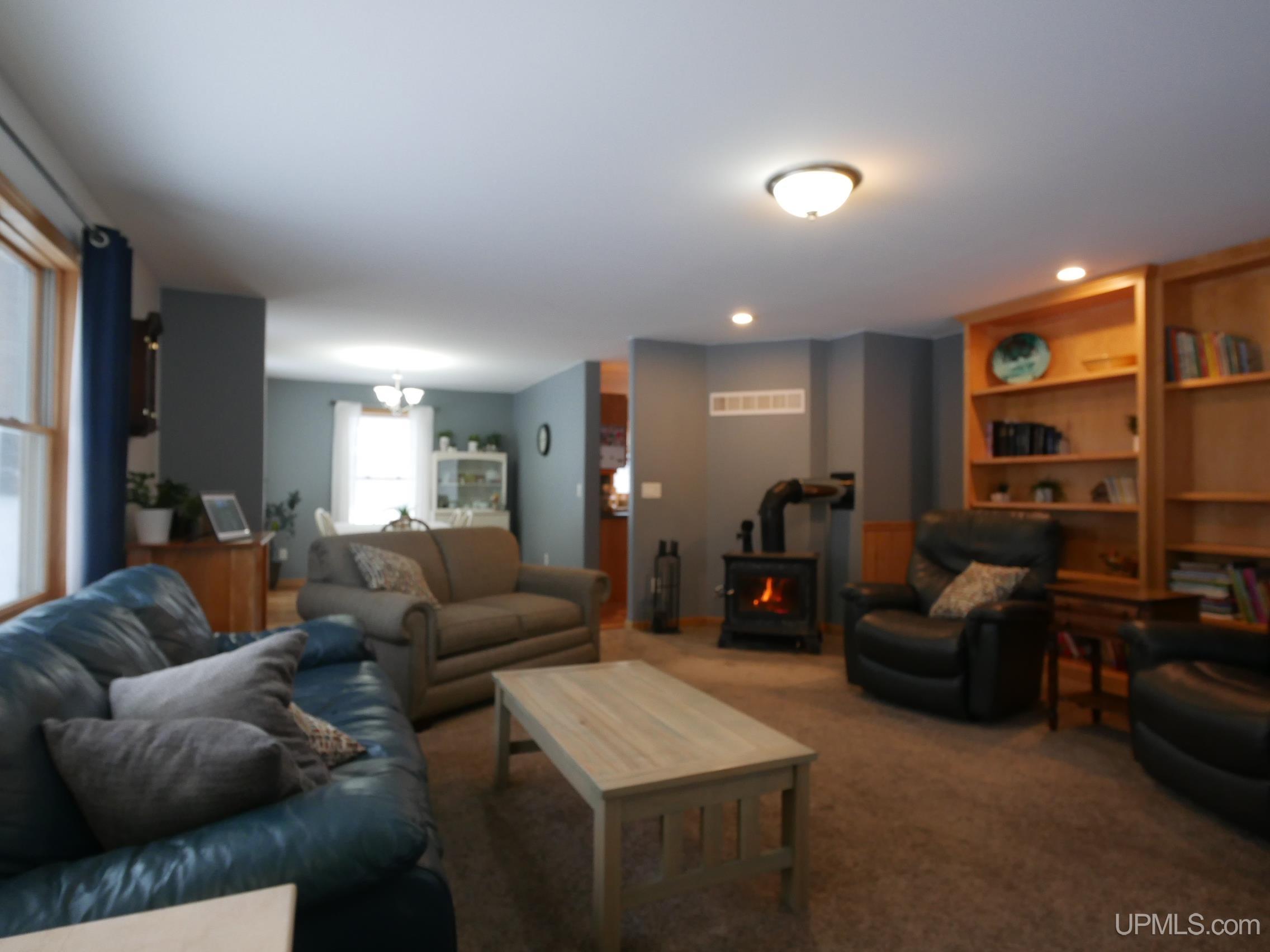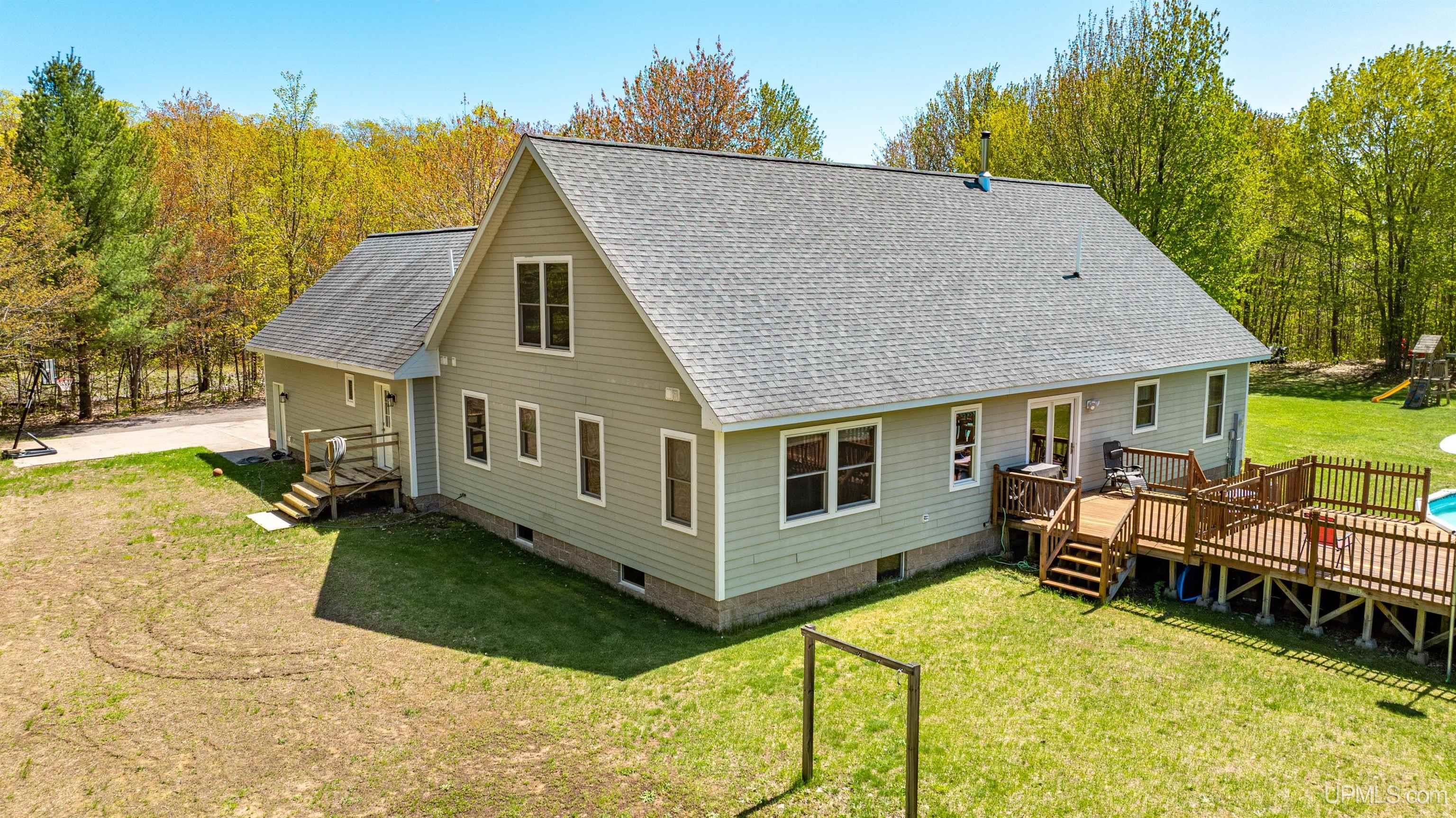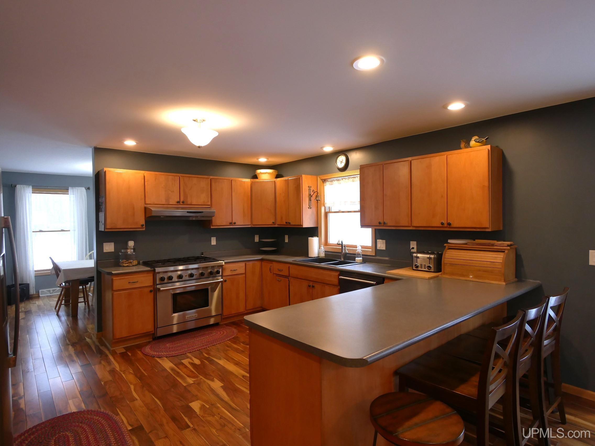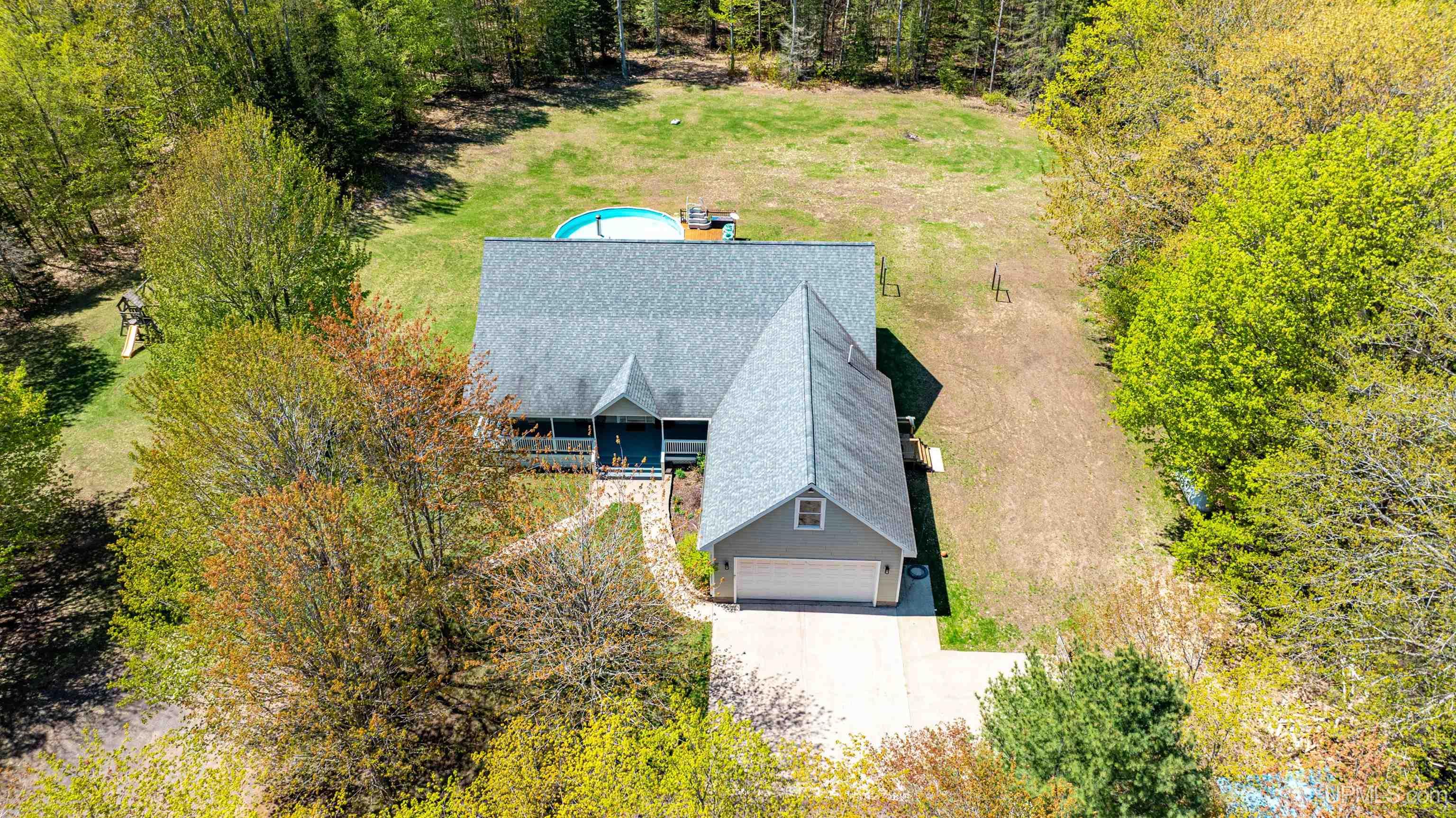 Set on approximately 10 acres surrounded by trees for privacy this 4-bedroom, 3-bathroom home is tucked back from a quiet road and welcomes you with its classic covered front porch. The main level features a foyer, living room with a freestanding woodstove, kitchen with dining area, formal dining room, primary bedroom suite, second bedroom, mudroom with direct garage access, a full bathroom, and a three-quarter bath. The kitchen offers ample counter space, cupboards, a pantry, built-in microwave and oven, plus a 2021 Wolf range/oven with an exterior-vented hood. Walnut flooring extends through the kitchen, dining room, and dining area. Upstairs includes a sitting room between two spacious bedrooms (the third and fourth), and a partially finished space that could potentially serve as an additional bathroom or closet. Notable highlights include interior insulated walls for sound reduction, ceramic tile and wood floors, built-in bookshelves, central vacuum, and electric heated tiles in the foyer, two bathrooms, and mudroom. The finished basement provides two rooms with some pine tongue-and-groove (totaling about 555 square feet, included in the overall finished space though not in the room count), an open unfinished rec/storage room with garage access via stairs, and mechanical and storage areas. The garage itself has a room prepared for a potential sauna and a pull-down ladder leading to overhead storage. Outdoor amenities feature both a covered front porch and a back deck, an above-ground pool, and a woodshed. Located approximately 9.5+/- from Michigan Technological and the City of Houghton! Seller uses Starlink for internet (equipment not included). Shorewaves has equipment on the property (informal lease which shall continue at closing unless otherwise negotiated). -- Propane tank is OWNED by the SELLER and NOT included. ----- NOTICE: Information is believed accurate but not guaranteed. Buyers must inspect & verify all property details. Buyers accept all risks of inaccuracies, including but not limited to, acreage, lot size/location, square footage, & utility availability/costs. Real estate taxes will be reassessed & may change significantly after sale; do not assume your tax bills will match the seller’s. Taxes are not zero. GIS, apps and plat book pages/maps are not surveys. Audio/video recording may occur on the property; entry implies consent to recording. Buyer pre-approval or proof of funds documentation to be provided upon request. OFFERS: Please allow 72 hours for a response. Seller may set or change offer deadlines at any time with or without notice.