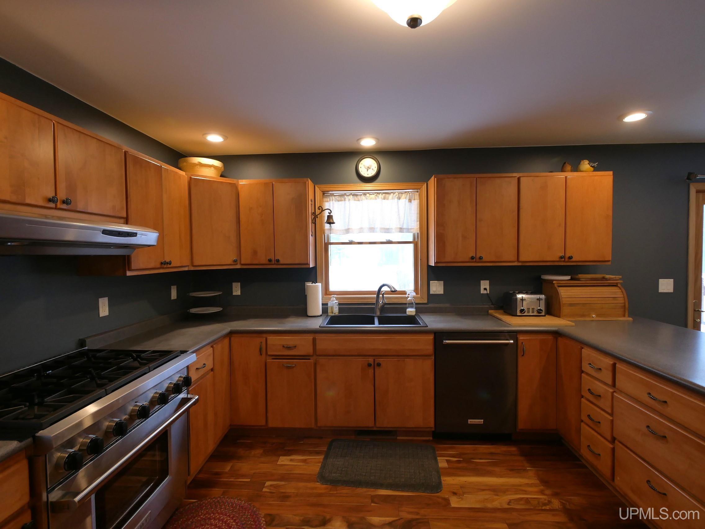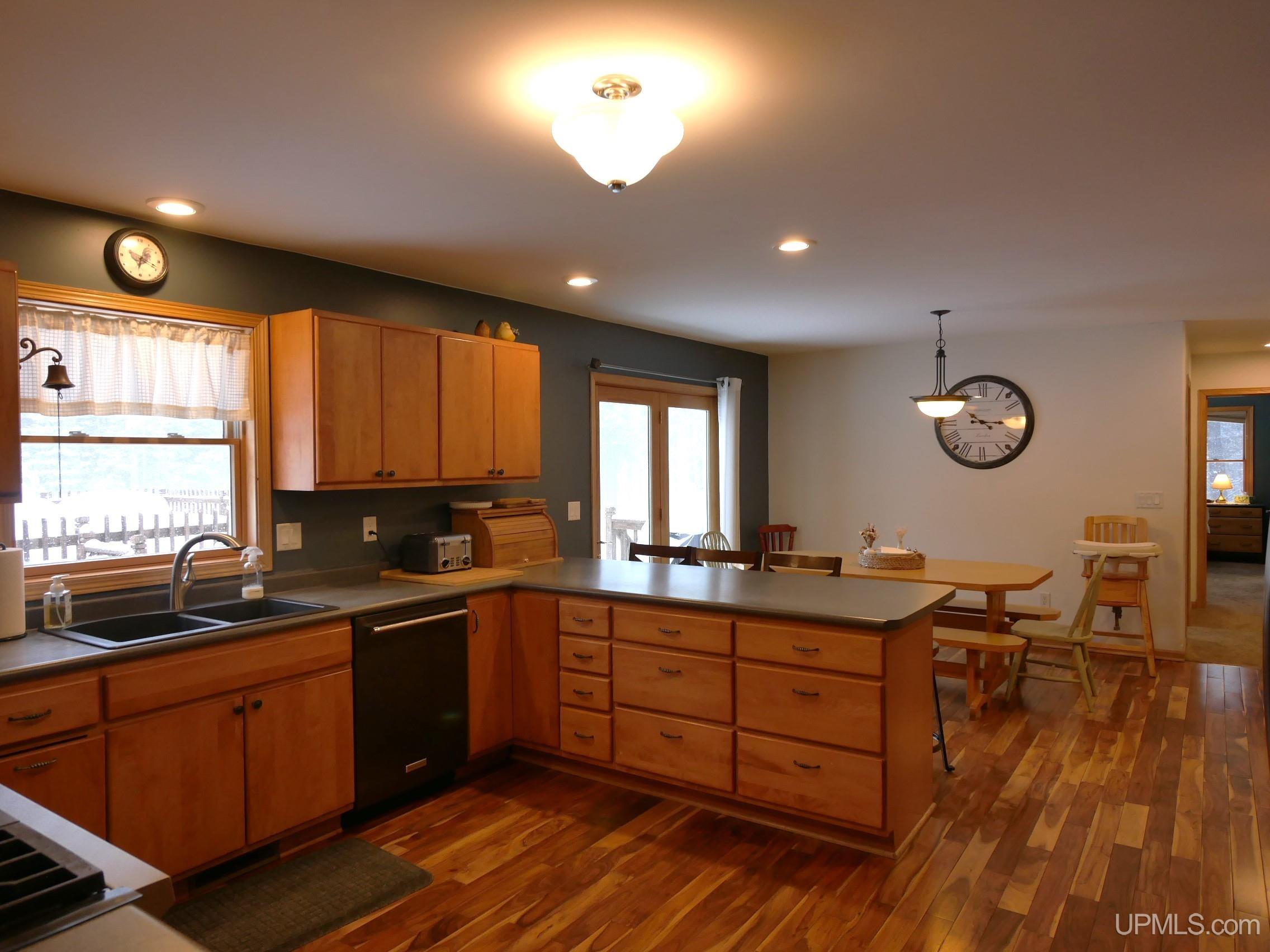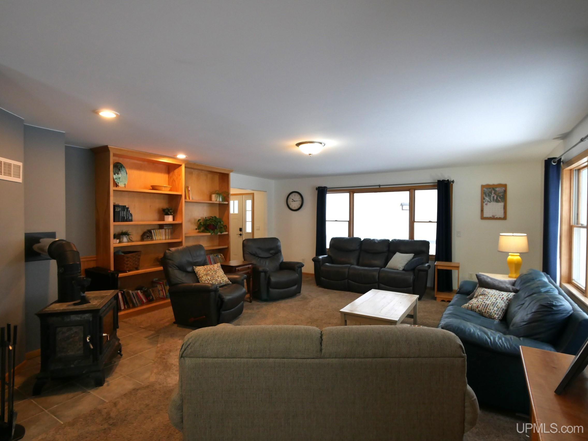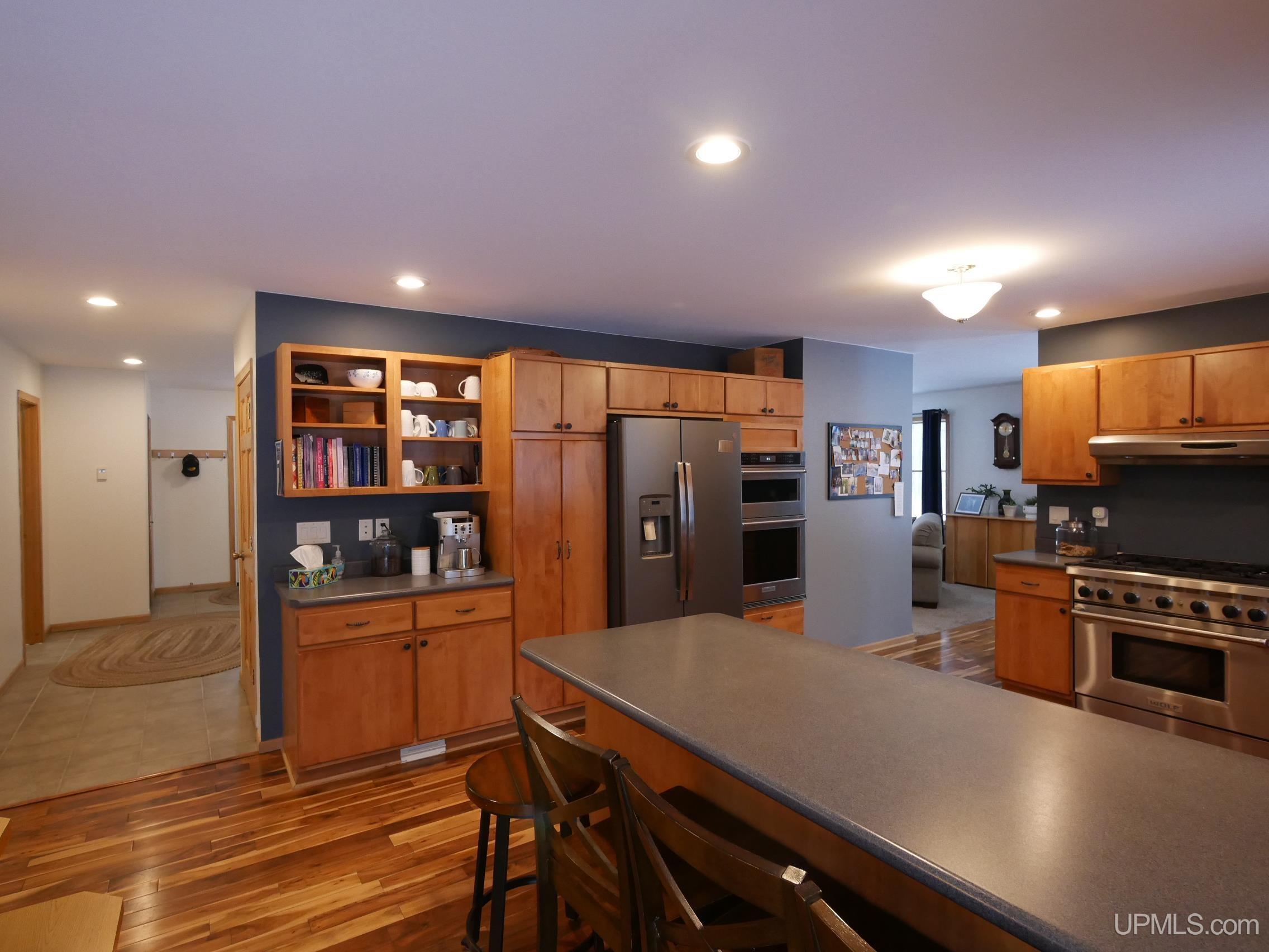 Set on approximately 10 acres surrounded by trees for privacy this 4-bedroom, 3-bathroom home is tucked back from a quiet road and welcomes you with its classic covered front porch. The main level features a foyer, living room with a freestanding woodstove, kitchen with dining area, formal dining room, primary bedroom suite, second bedroom, mudroom with direct garage access, a full bathroom, and a three-quarter bath. The kitchen offers ample counter space, cupboards, a pantry, built-in microwave and oven, plus a 2021 Wolf range/oven with an exterior-vented hood. Walnut flooring extends through the kitchen, dining room, and dining area. Upstairs includes a sitting room between two spacious bedrooms (the third and fourth), and a partially finished space that could potentially serve as an additional bathroom or closet. Notable highlights include interior insulated walls for sound reduction, ceramic tile and wood floors, built-in bookshelves, central vacuum, and electric heated tiles in the foyer, two bathrooms, and mudroom. The finished basement provides two rooms with some pine tongue-and-groove (totaling about 555 square feet, included in the overall finished space though not in the room count), an open unfinished rec/storage room with garage access via stairs, and mechanical and storage areas. The garage itself has a room prepared for a potential sauna and a pull-down ladder leading to overhead storage. Outdoor amenities feature both a covered front porch and a back deck, an above-ground pool, and a woodshed. Located approximately 9.5+/- from Michigan Technological and the City of Houghton! Seller uses Starlink for internet (equipment not included). Shorewaves has equipment on the property (informal lease which shall continue at closing unless otherwise negotiated). -- Propane tank is OWNED by the SELLER and NOT included. ----- NOTICE: Information is believed accurate but not guaranteed. Buyers must inspect & verify all property details. Buyers accept all risks of inaccuracies, including but not limited to, acreage, lot size/location, square footage, & utility availability/costs. Real estate taxes will be reassessed & may change significantly after sale; do not assume your tax bills will match the seller’s. Taxes are not zero. GIS, apps and plat book pages/maps are not surveys. Audio/video recording may occur on the property; entry implies consent to recording. Buyer pre-approval or proof of funds documentation to be provided upon request. OFFERS: Please allow 72 hours for a response. Seller may set or change offer deadlines at any time with or without notice.