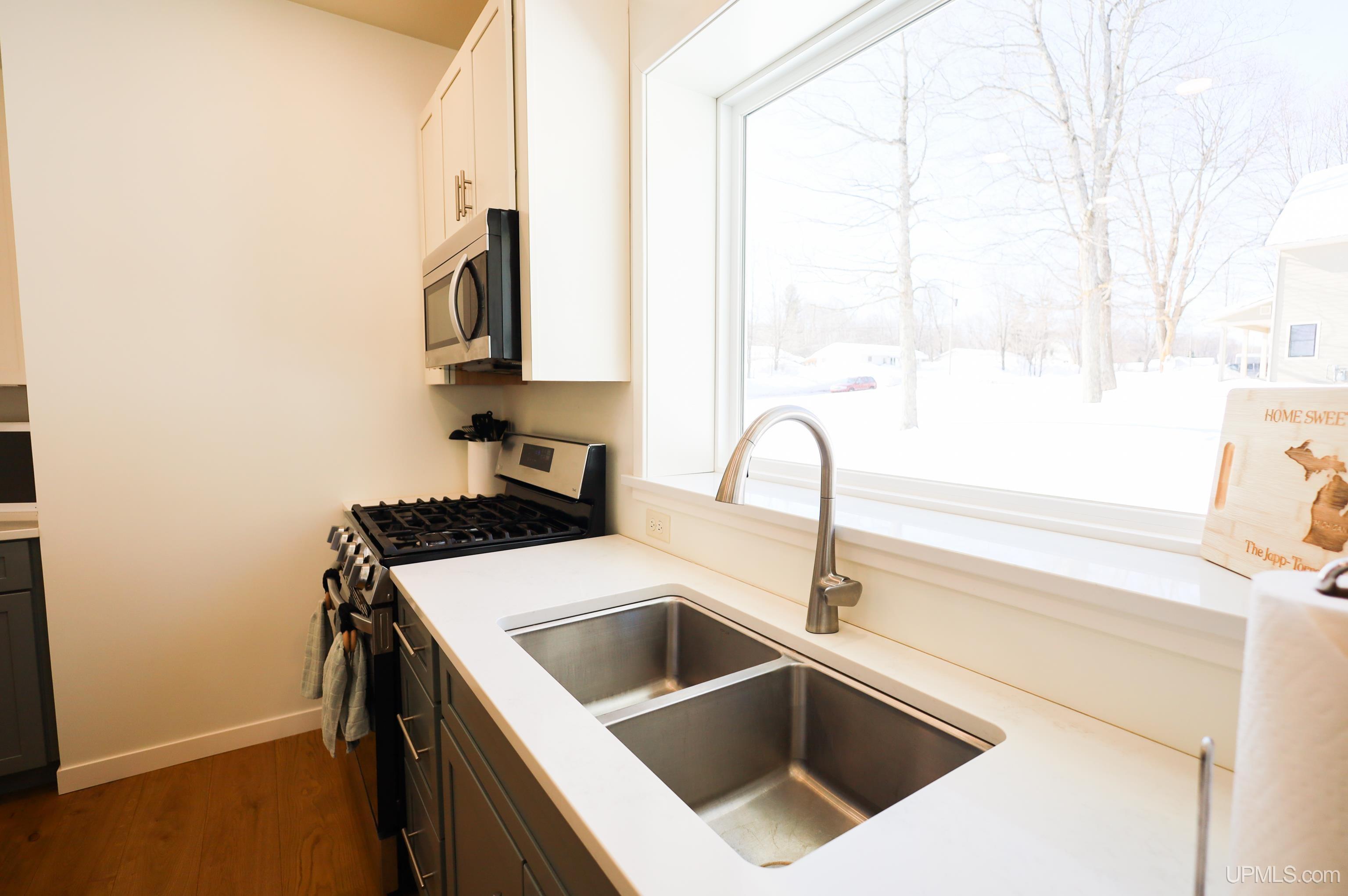 Built in 2024, this 3-bedroom, 3-full bath ranch offers nearly 2,000 finished square feet and a layout that truly makes sense for everyday living. Situated on over half an acre with a spacious yard, this home offers privacy and room to enjoy, all while being just a half mile from downtown Negaunee and only 10 miles from Marquette. The location is incredibly convenient — just 0.7 miles to Negaunee Middle School, 1.7 miles to Lakeview Elementary, and 1.5 miles to Negaunee High School — making daily routines simple and accessible. The main floor features a bright living space with patio doors leading to the back deck, a kitchen with quartz countertops, two-toned cabinetry, and soft-close cabinets throughout, convenient main-floor laundry, and a spacious primary suite with a walk-through closet and private bath. An additional bedroom and full bathroom complete the main level. Downstairs, the fully finished lower level adds even more flexibility with a large family room and wet bar, a third bedroom with an egress window, a full bathroom, and a bonus room that could easily serve as an office, gym, or hobby space. Thoughtful storage continues with a custom closet created under the stairs, maximizing every square foot. Additional highlights include central air, an attached two-car garage, covered front porch, and move-in-ready finishes throughout. Underground power lines enhance the clean streetscape and provide added peace of mind. You’re also close to the Iron Ore Heritage Trail, RAMBA biking trails, an 18 hole disc gold course, and ATV and snowmobile routes, giving you both convenience and outdoor access right nearby. If you’re looking for newer construction with space, functionality, and a location that truly keeps you connected to both Negaunee and Marquette, this one checks the boxes.
